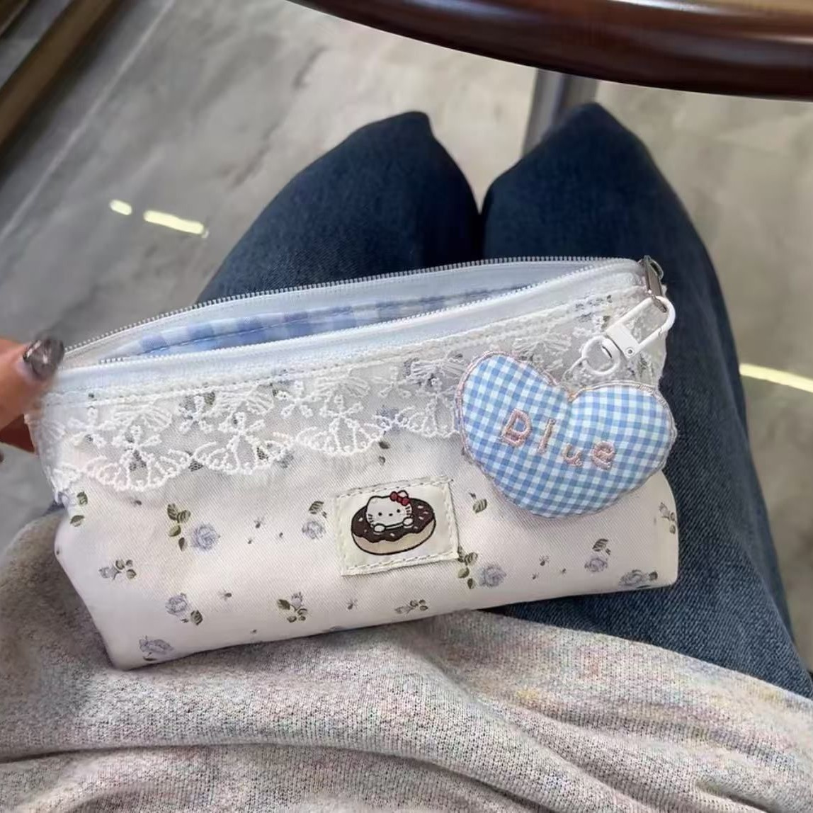 • 블루 레이스 꽃무늬 필통