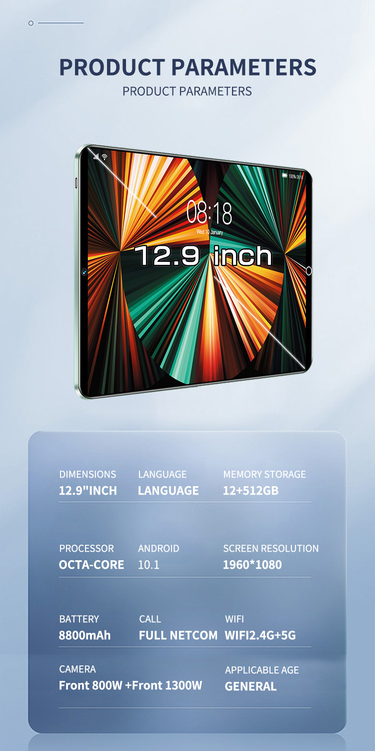 새로운 12 인치 HD 대형 스크린 X02 태블릿 안드로이드 얇은 사무실 국경 아마존 재고 도매스토어 가기