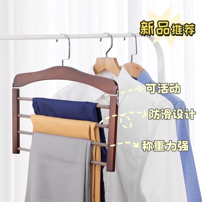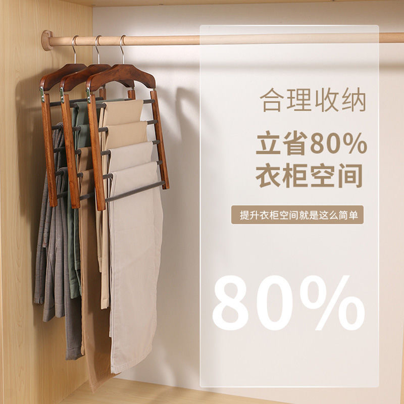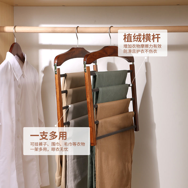 솔리드 우드 다기능 바지 랙 다층 바지 매달려 가정용 매직 나무 저장 유물 스카프 옷장 옷걸이