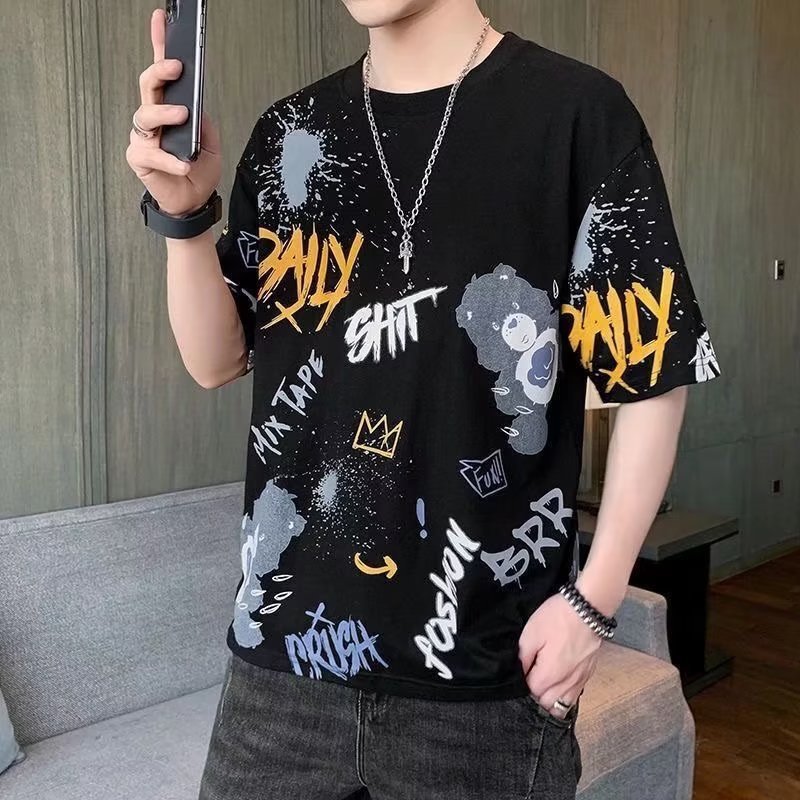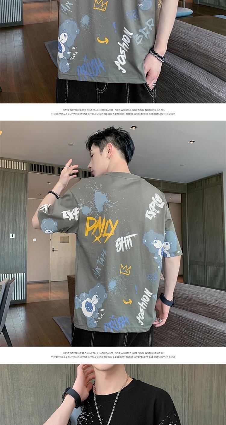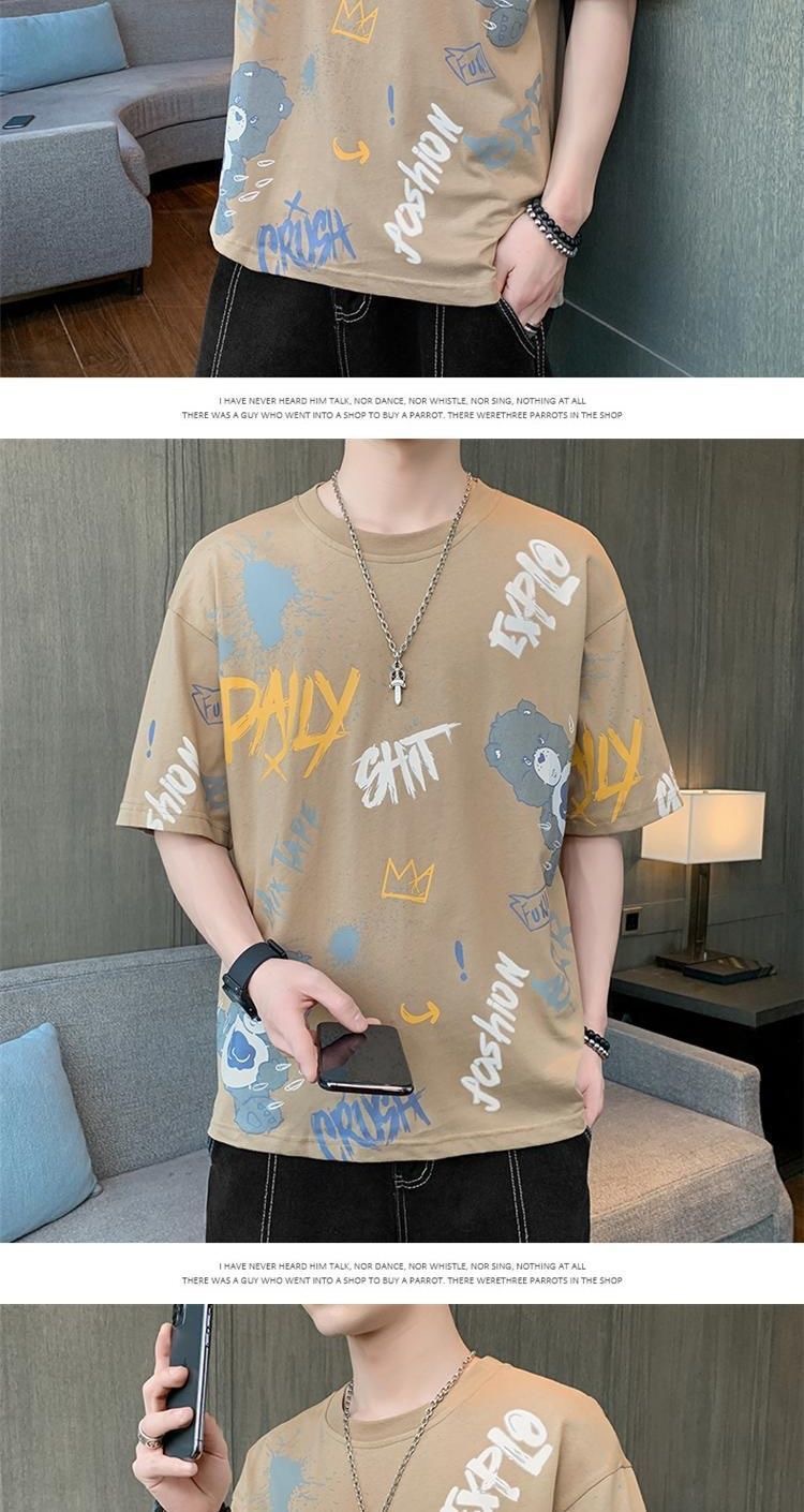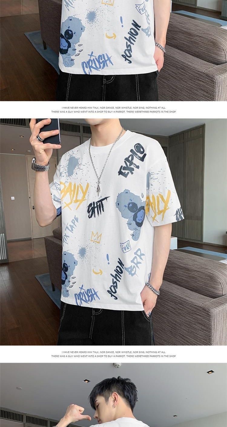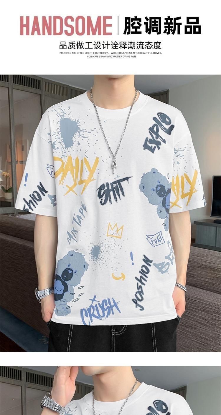 소스 제조 업체 남성 반팔 티셔츠 여름 둥근 목 반소매 티셔츠 유행 느슨한 티셔츠 유행 인쇄 탑 옷스토어 가기