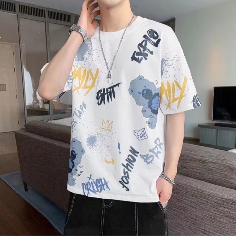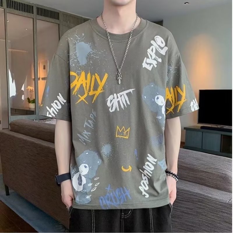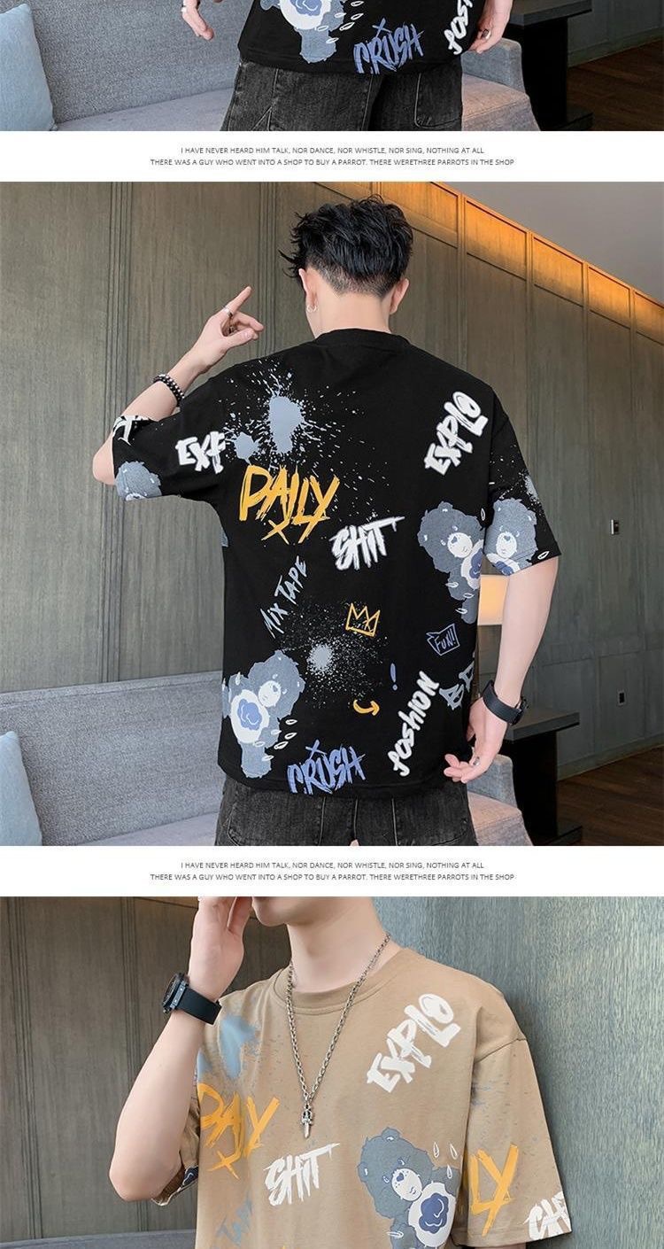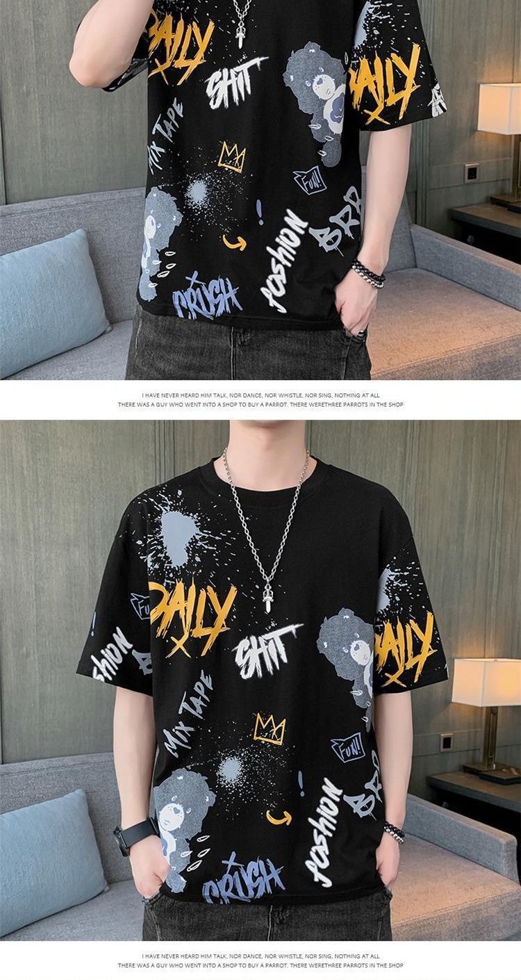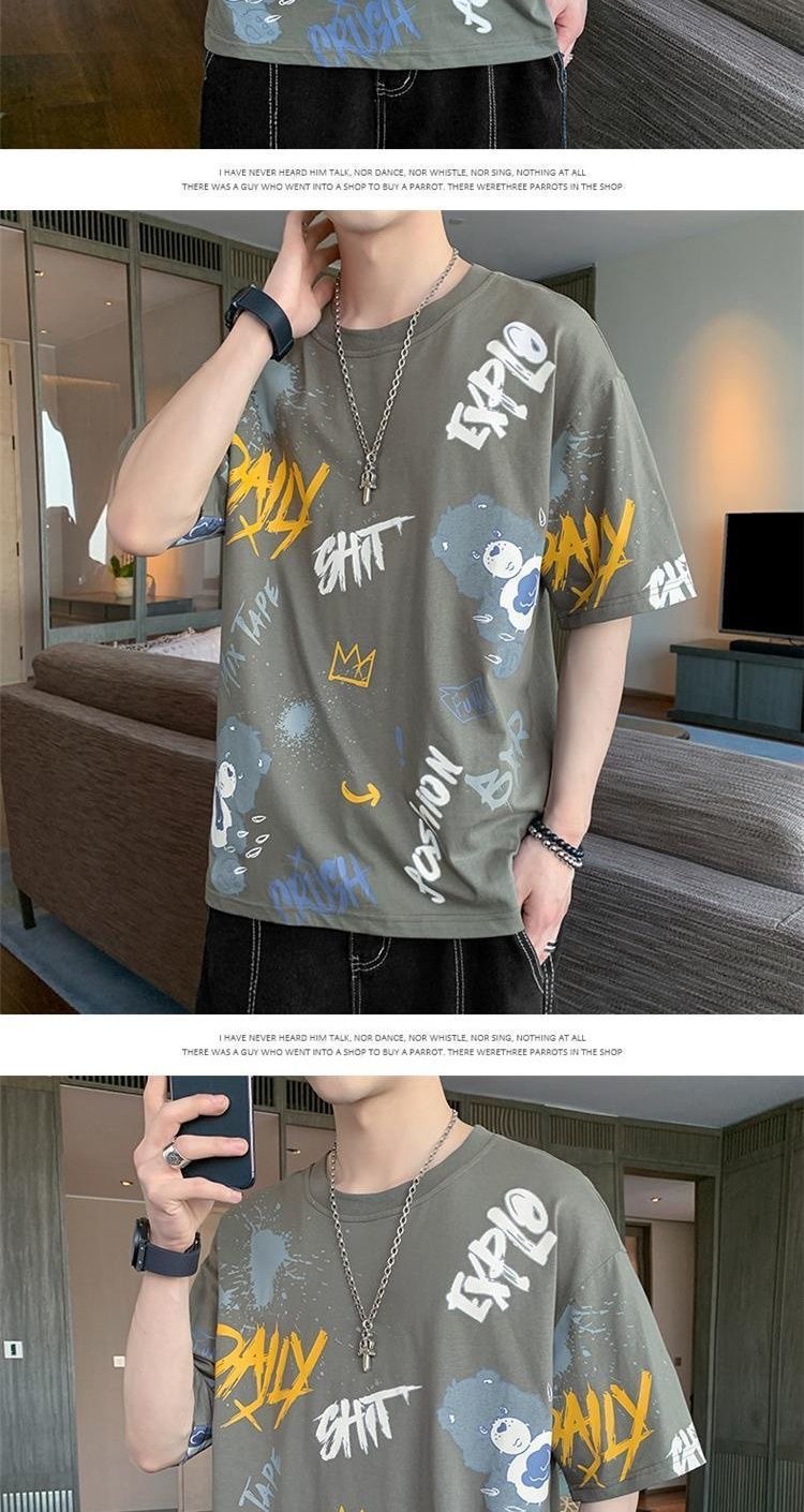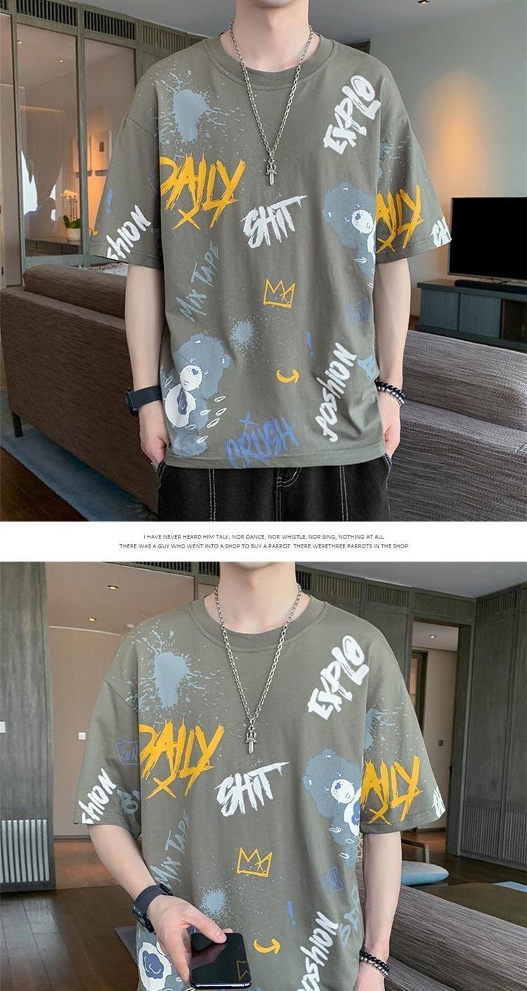 소스 제조 업체 남성 반팔 티셔츠 여름 둥근 목 반소매 티셔츠 유행 느슨한 티셔츠 유행 인쇄 탑 옷스토어 가기