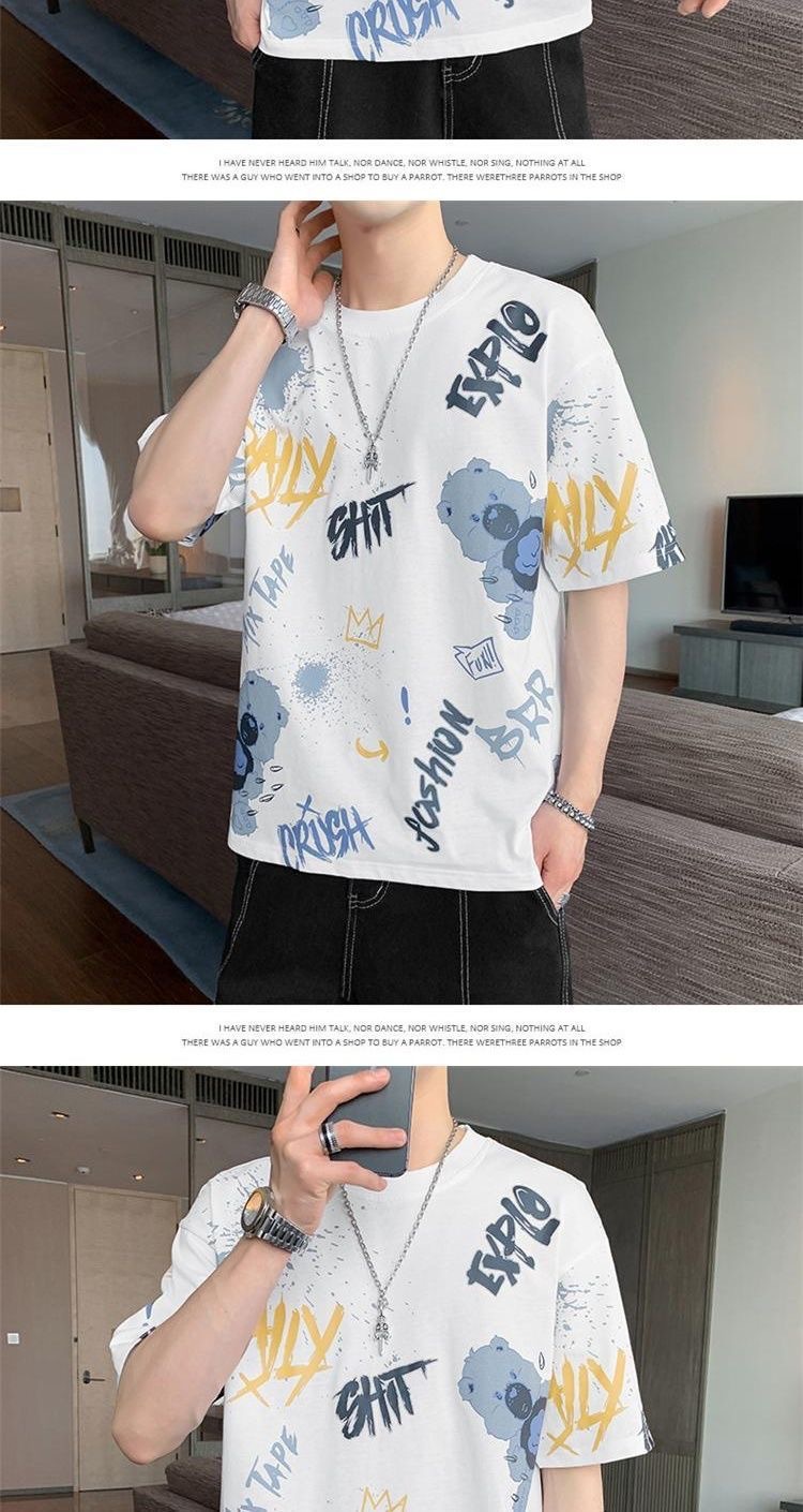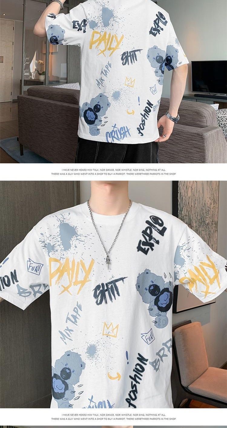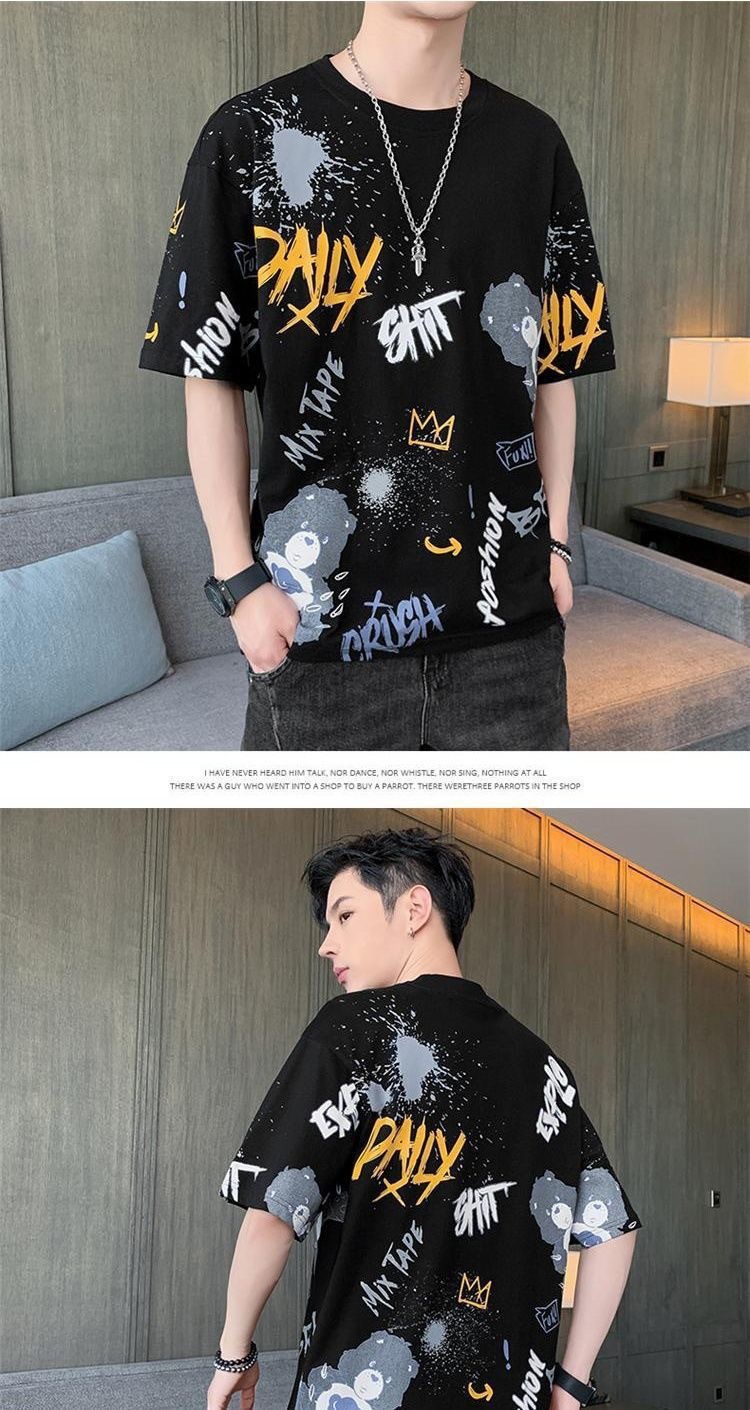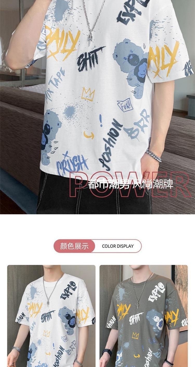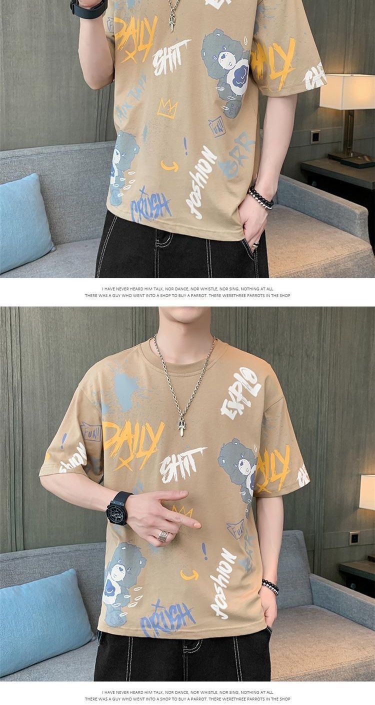 소스 제조 업체 남성 반팔 티셔츠 여름 둥근 목 반소매 티셔츠 유행 느슨한 티셔츠 유행 인쇄 탑 옷스토어 가기