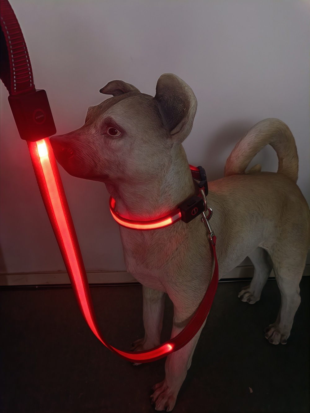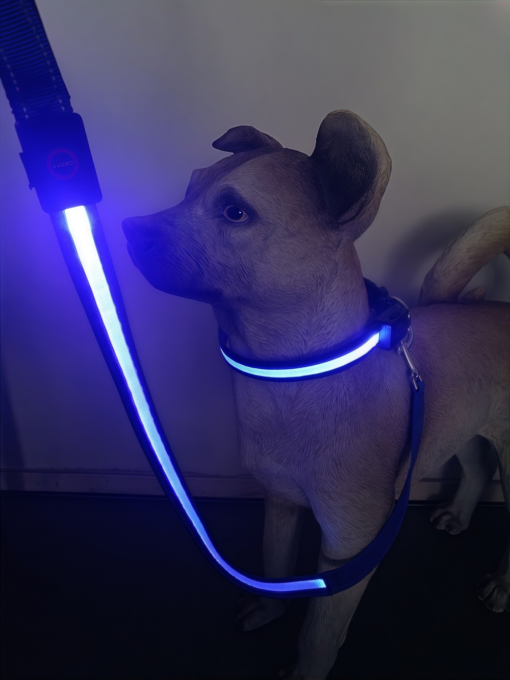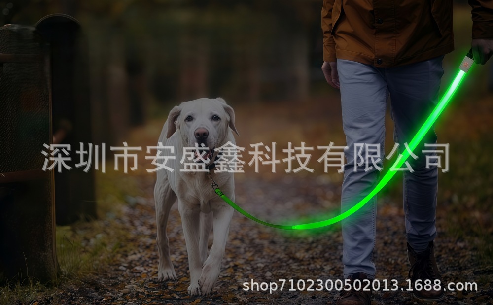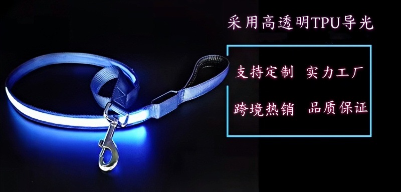 국경 간 직배송 LED 애완동물 발광 목줄 리드줄 USB 충전 휴대용 애완견 용품 도매스토어 가기