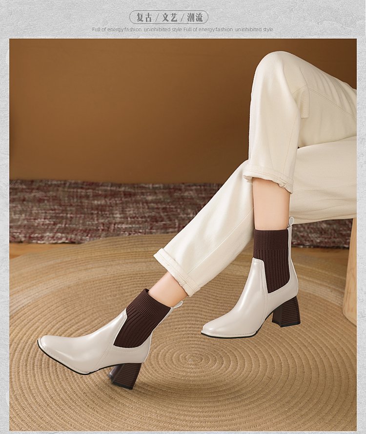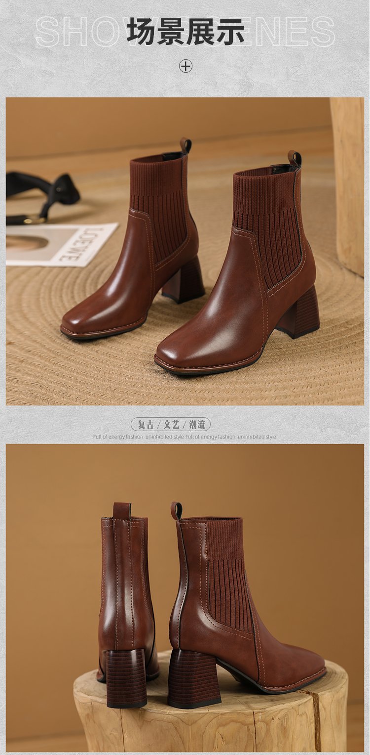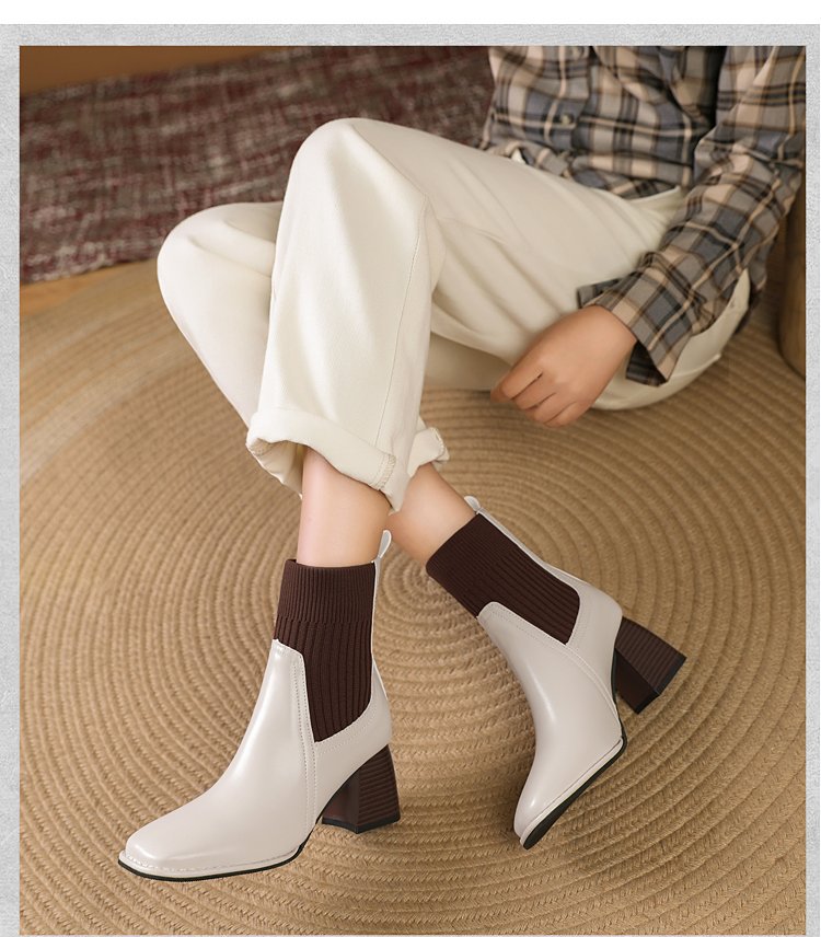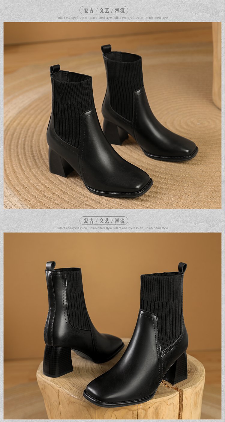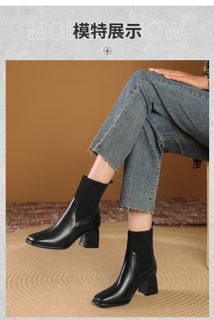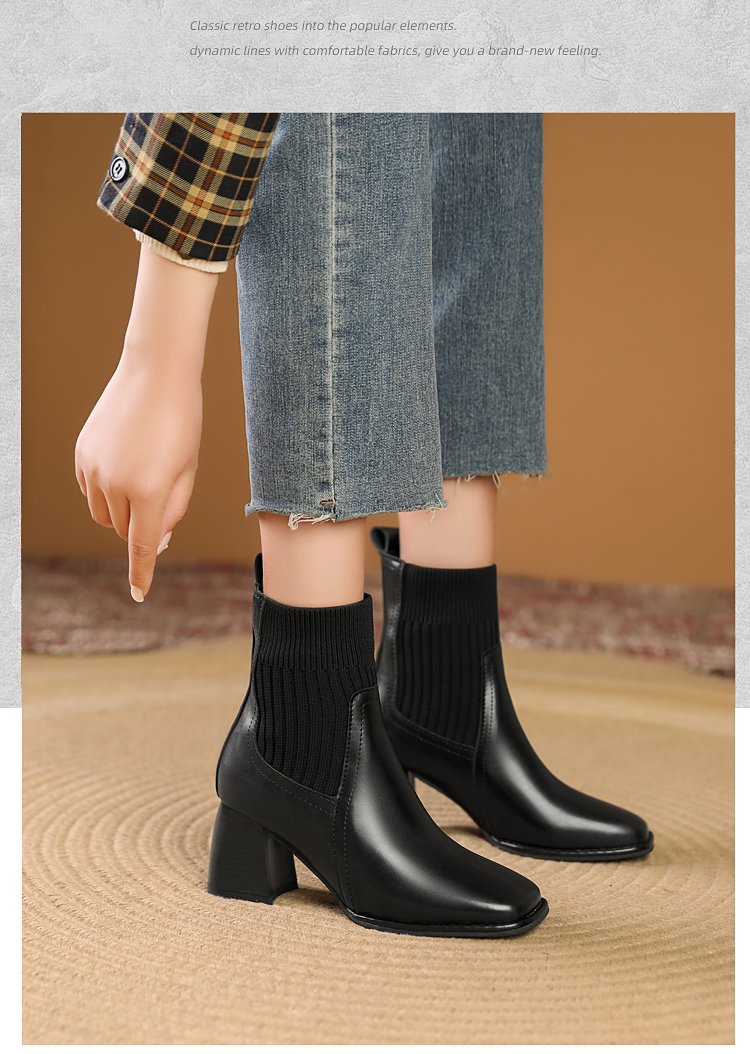 짧은 부츠 어린이 중간 튜브 2024 가을 새로운 스퀘어 헤드 하이힐 플라이 짠 스티칭 탄성 입 부츠 패션스토어 가기