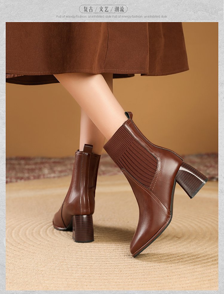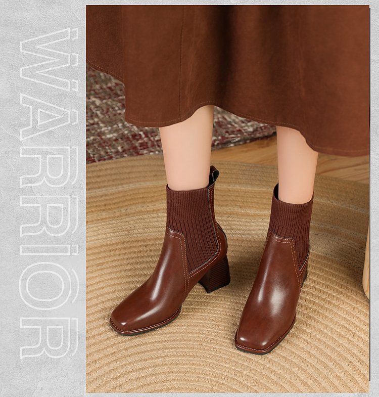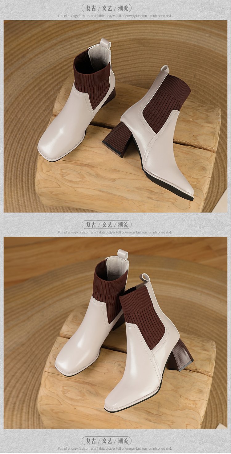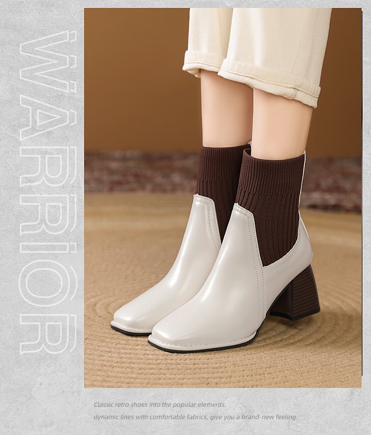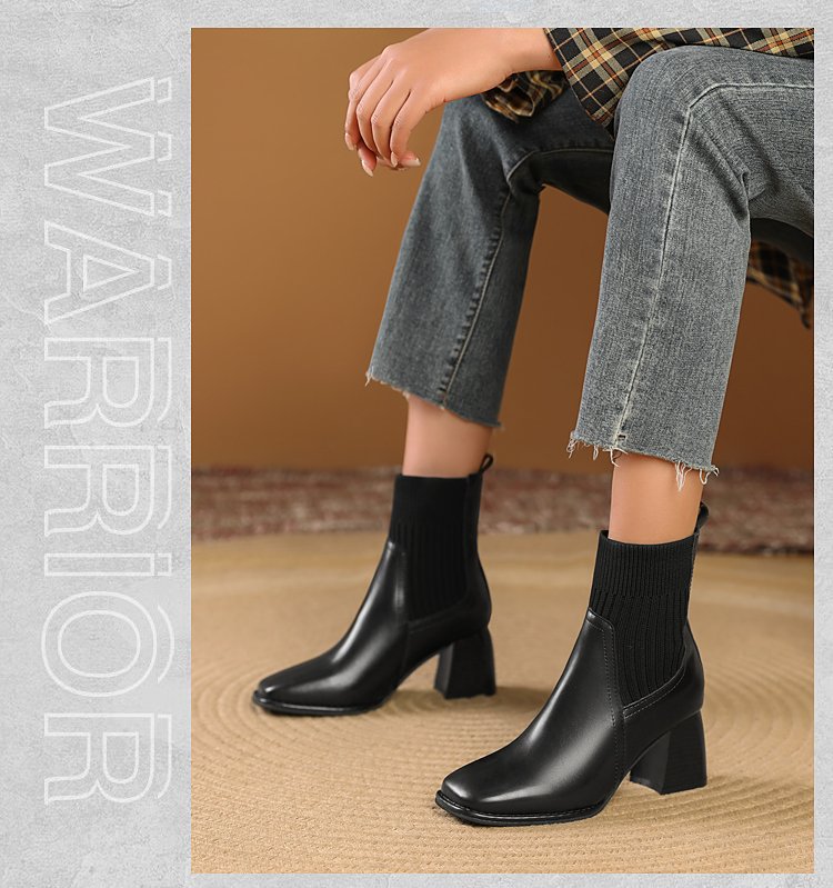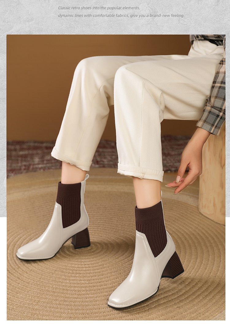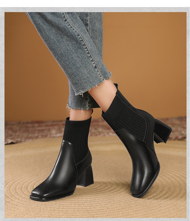 짧은 부츠 어린이 중간 튜브 2024 가을 새로운 스퀘어 헤드 하이힐 플라이 짠 스티칭 탄성 입 부츠 패션스토어 가기