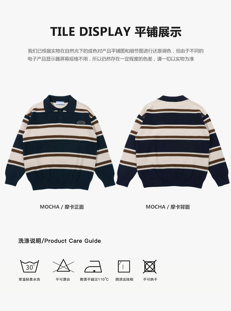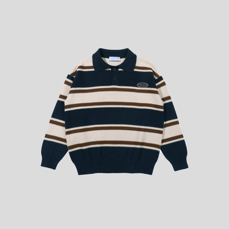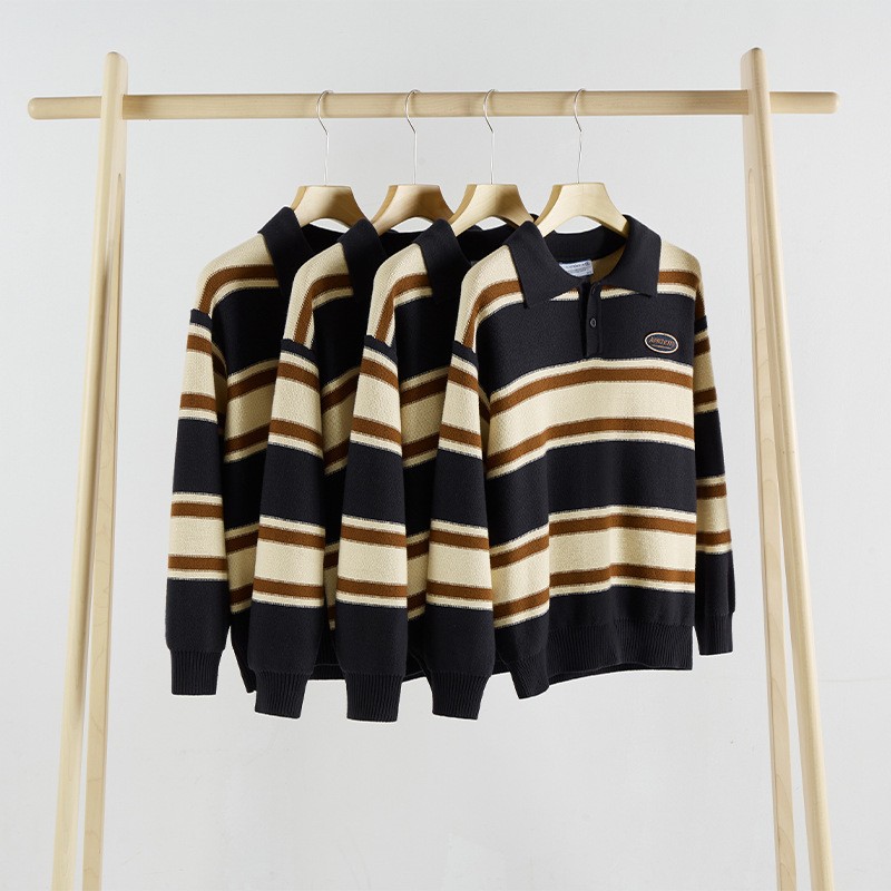 한국 줄무늬 스웨터 POLO 목 느슨한 니트 스웨터 빅 키즈 2024 새로운 어린이 패션 브랜드 긴 소매 탑