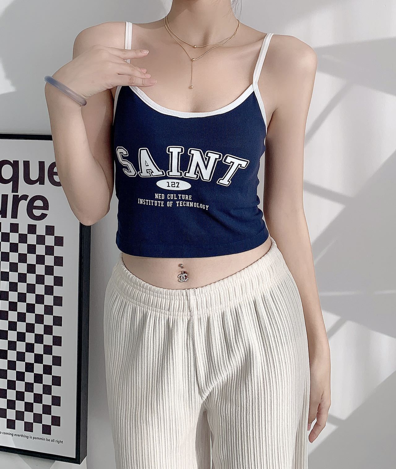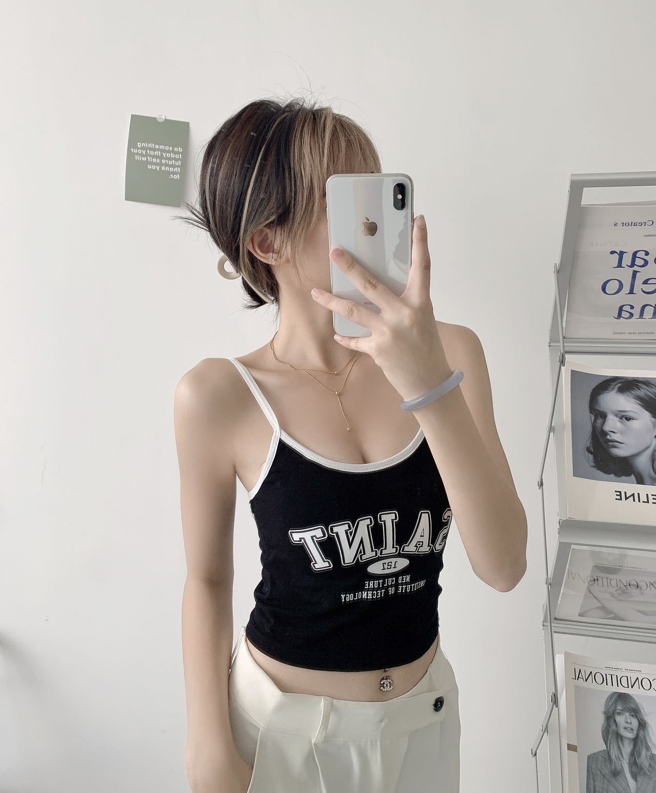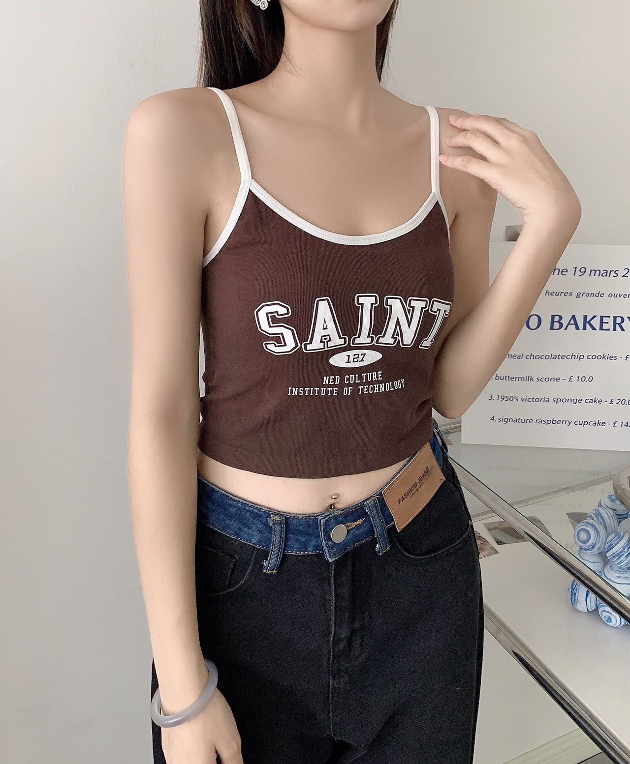 여름 폭발 빈티지 편지 인쇄 슬링 가슴 패드 대비 컬러 랩 가슴베이스 쇼트 탑스토어 가기