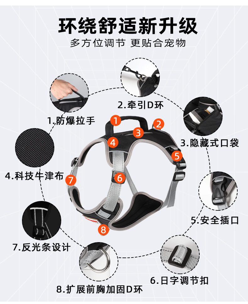 국경을 넘는 강아지 목줄, 폭발 방지 휴대용 애완동물 하네스, 다기능 반사 강아지 하네스 도매스토어 가기