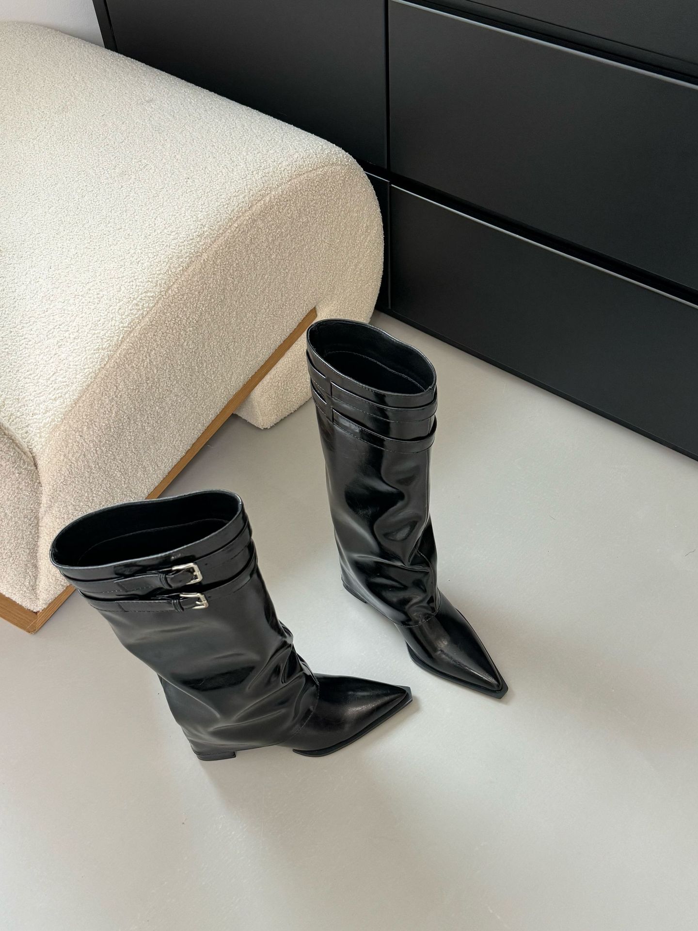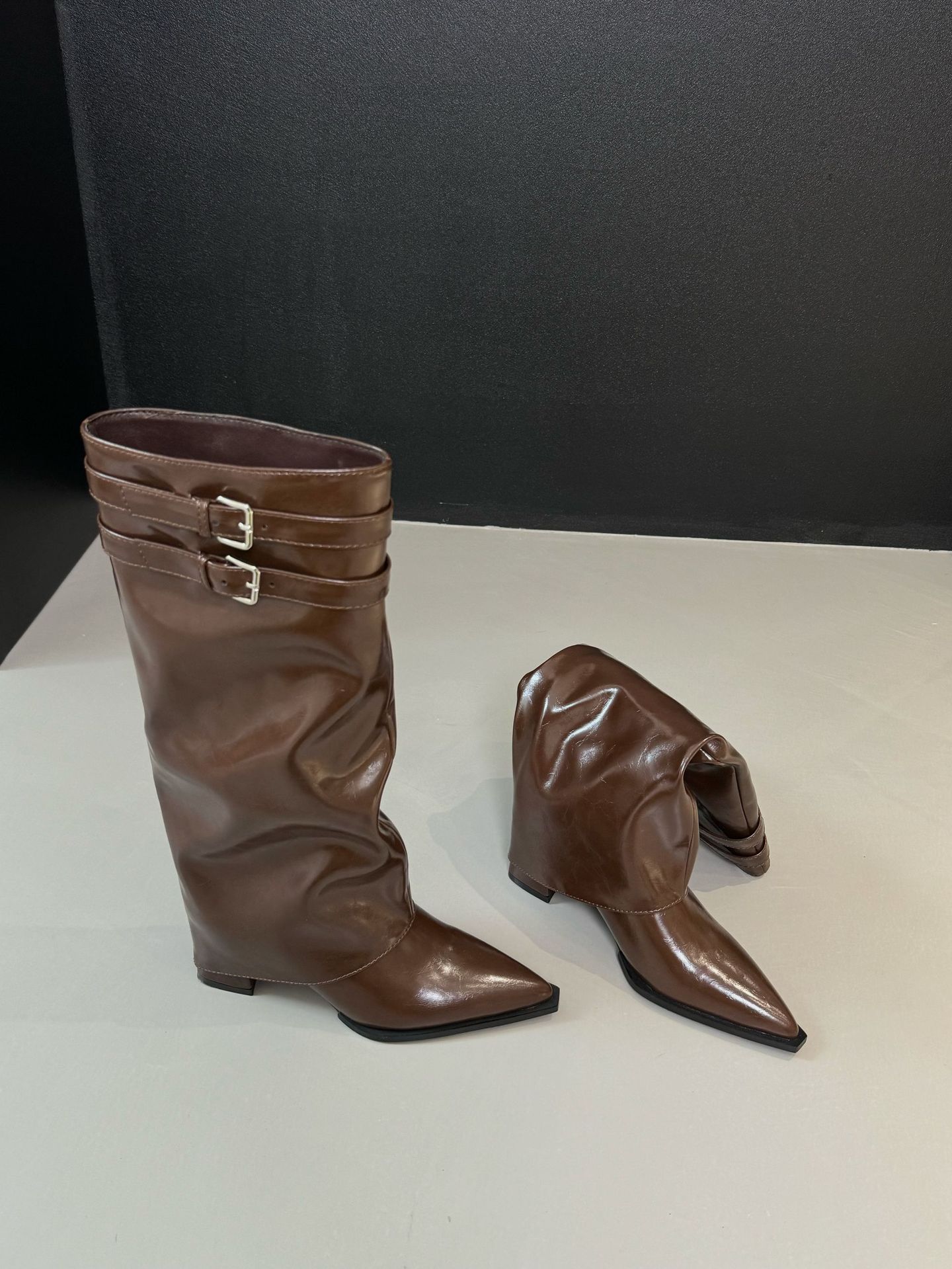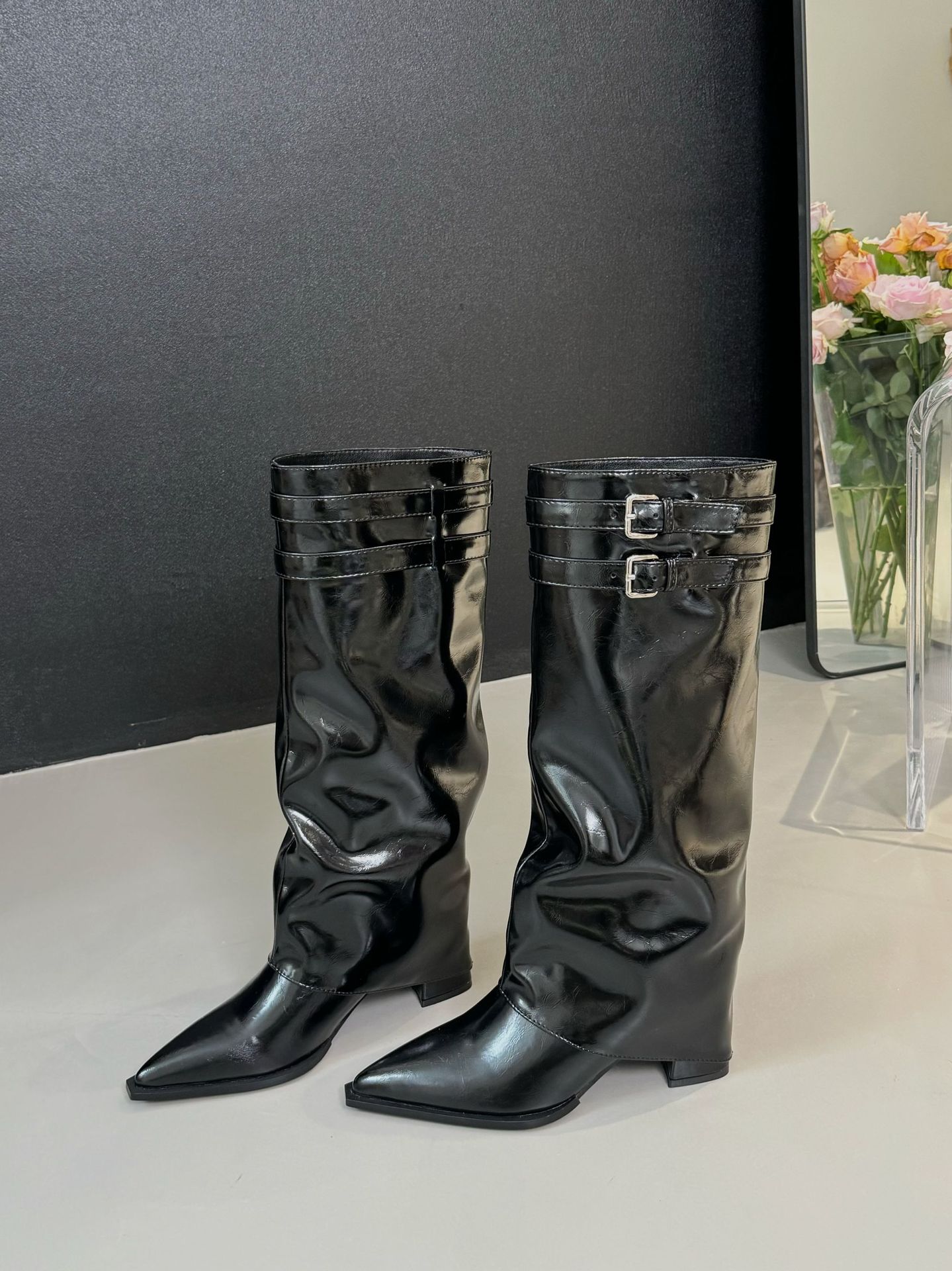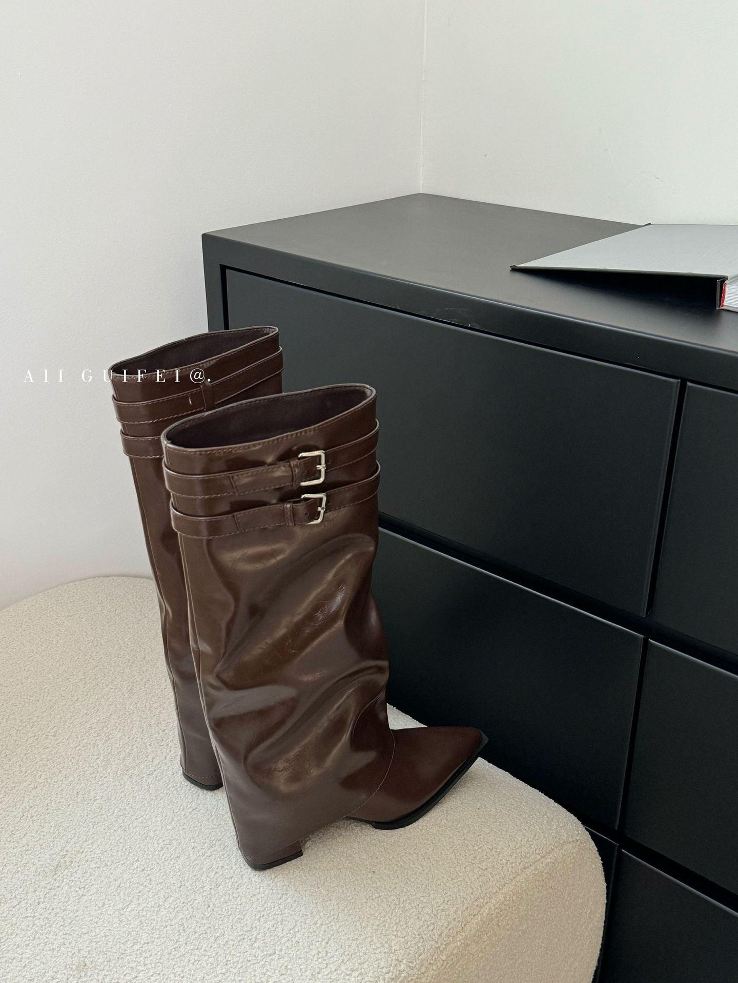 한국 패션 팬츠 부츠 얇은 미드 힐 부츠를 가리키고 있지만 무릎 기질 올 매치 벨트 버클 슬리브 패션 부츠스토어 가기