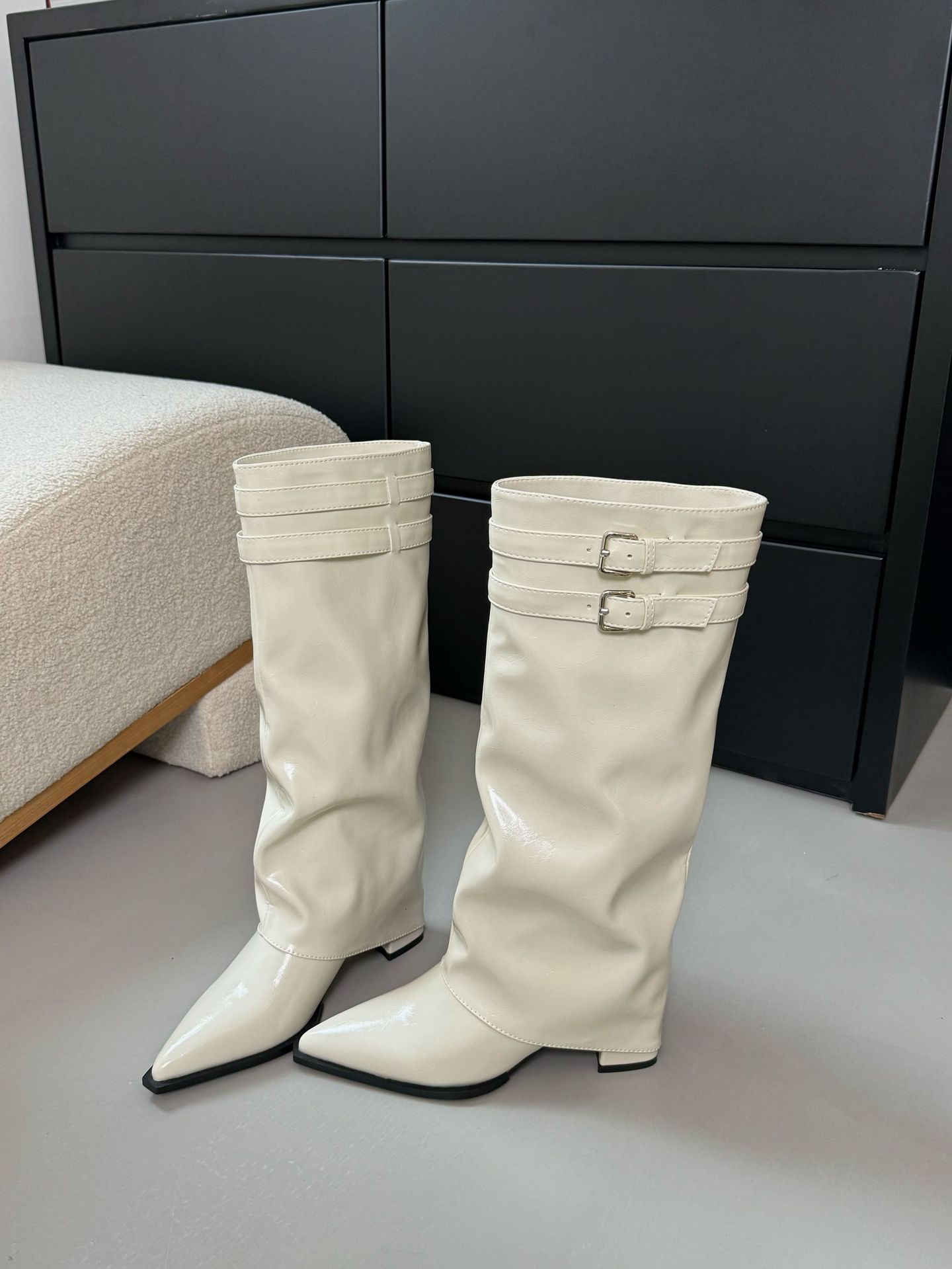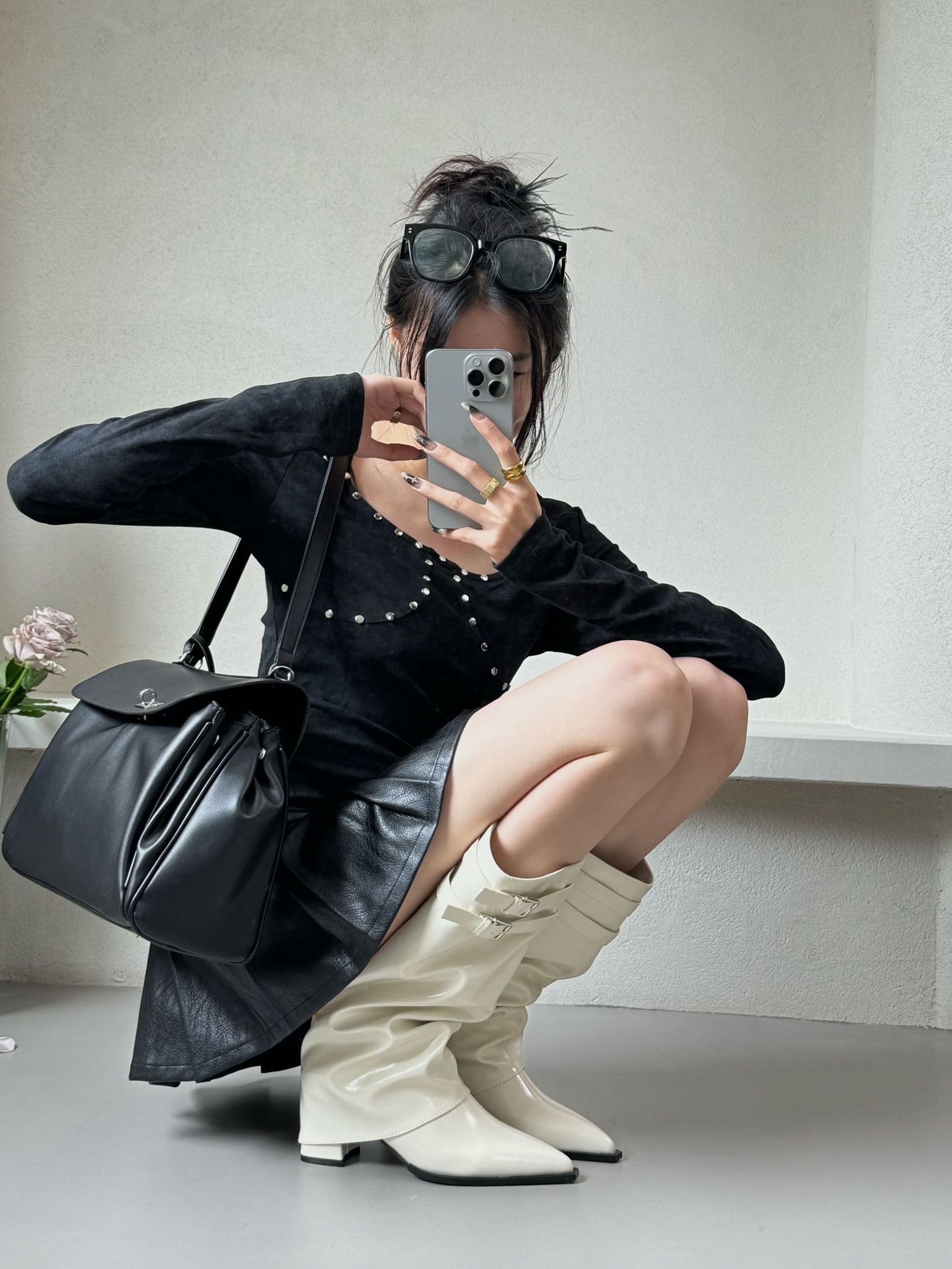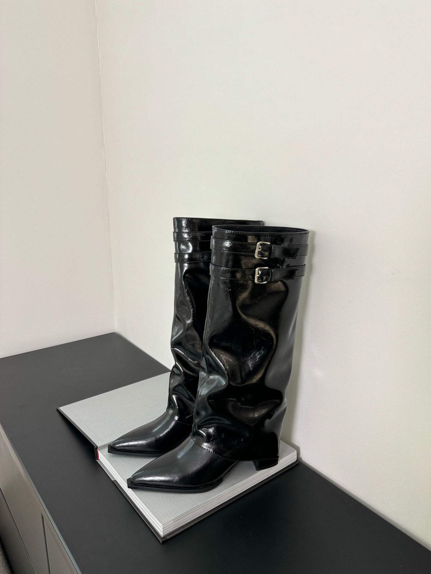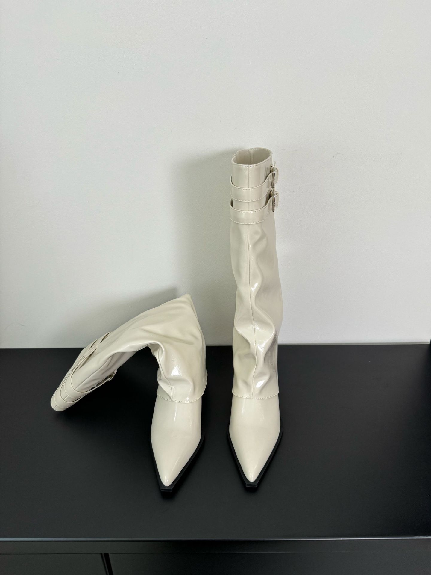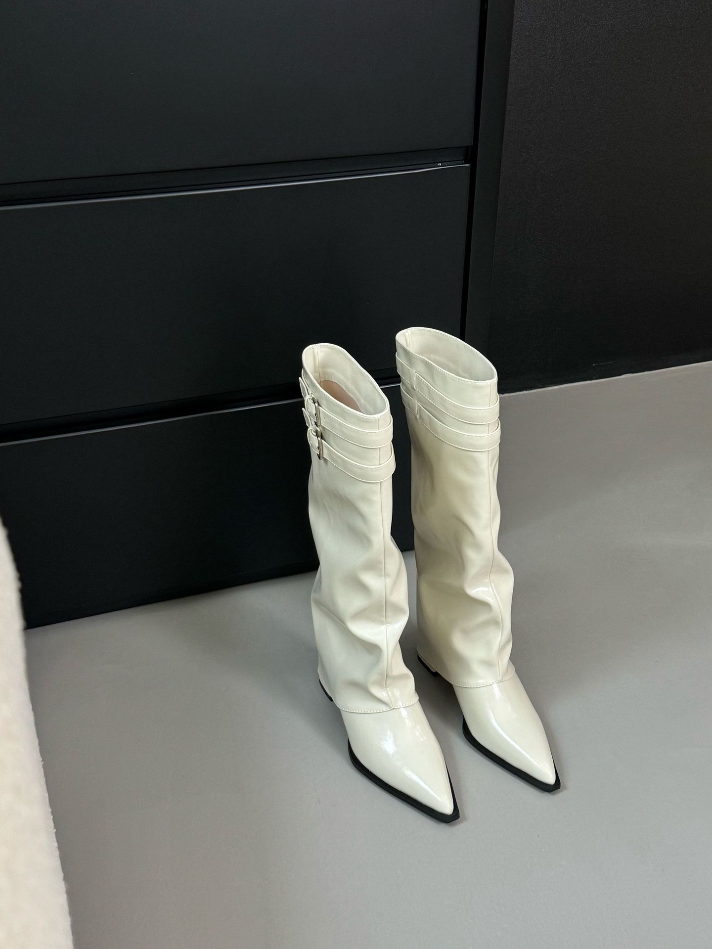 한국 패션 팬츠 부츠 얇은 미드 힐 부츠를 가리키고 있지만 무릎 기질 올 매치 벨트 버클 슬리브 패션 부츠스토어 가기