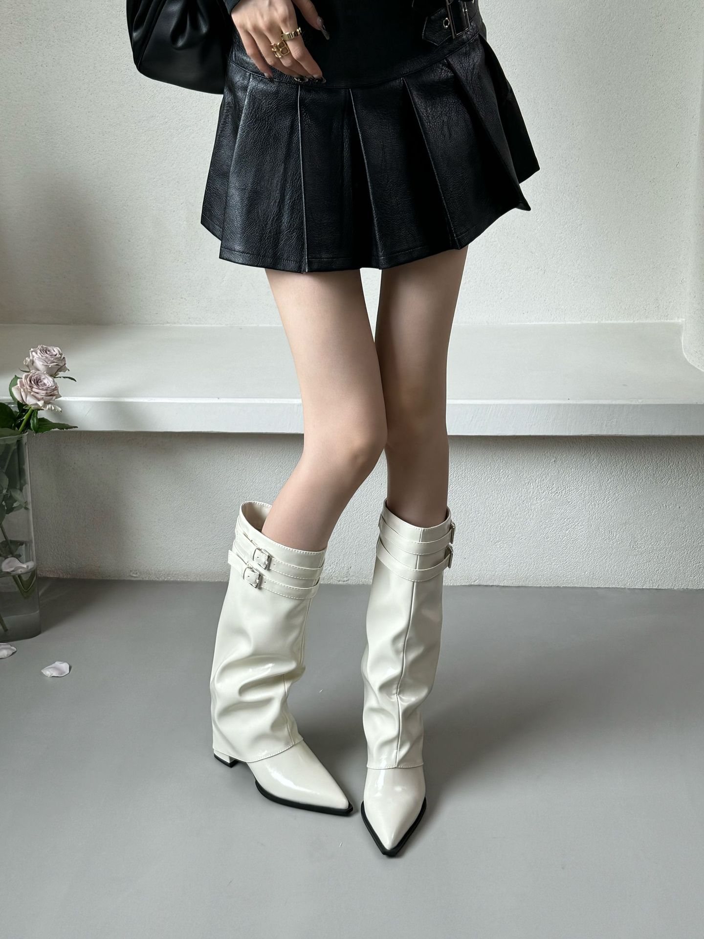 한국 패션 팬츠 부츠 얇은 미드 힐 부츠를 가리키고 있지만 무릎 기질 올 매치 벨트 버클 슬리브 패션 부츠