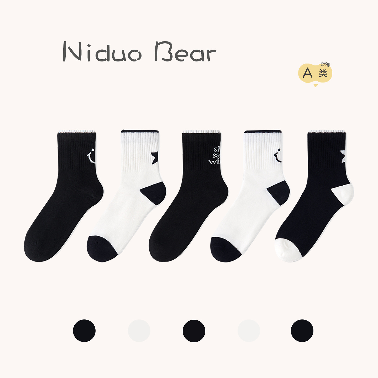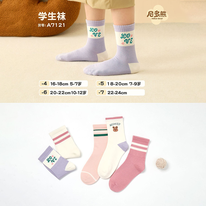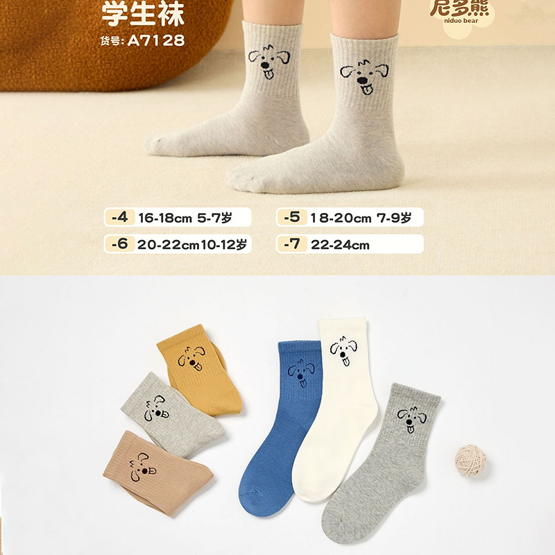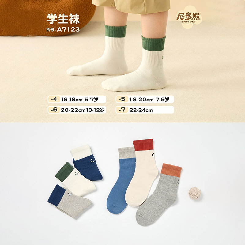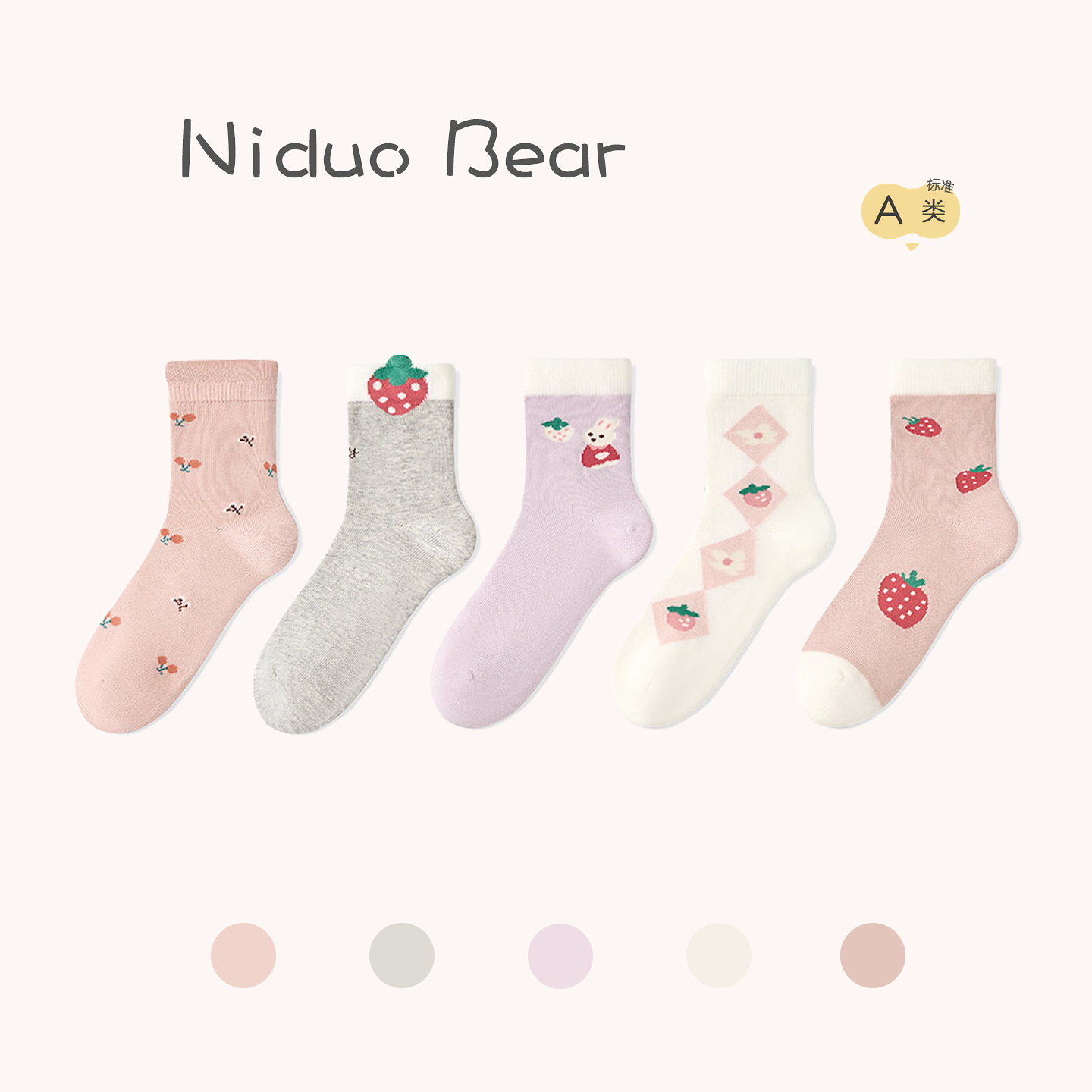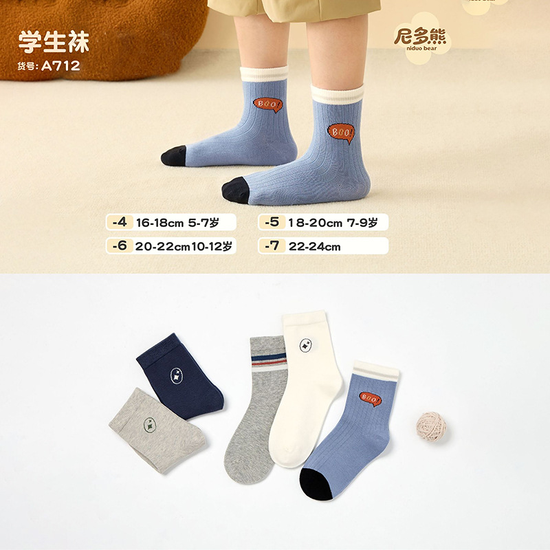 니도베어 어린이 양말 가을 겨울 A급 면 무봉제 만화 중목 양말 남녀 공용 양말 봄 가을 학생 양말