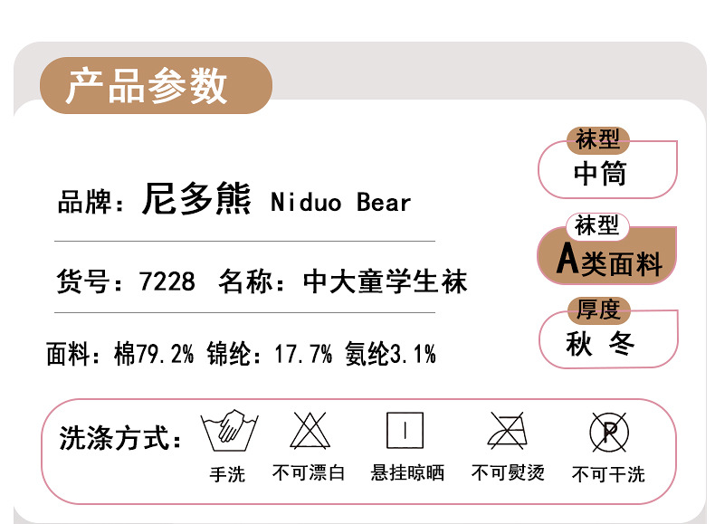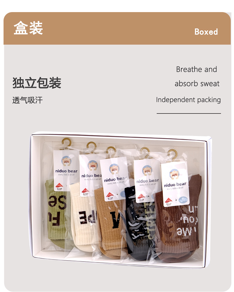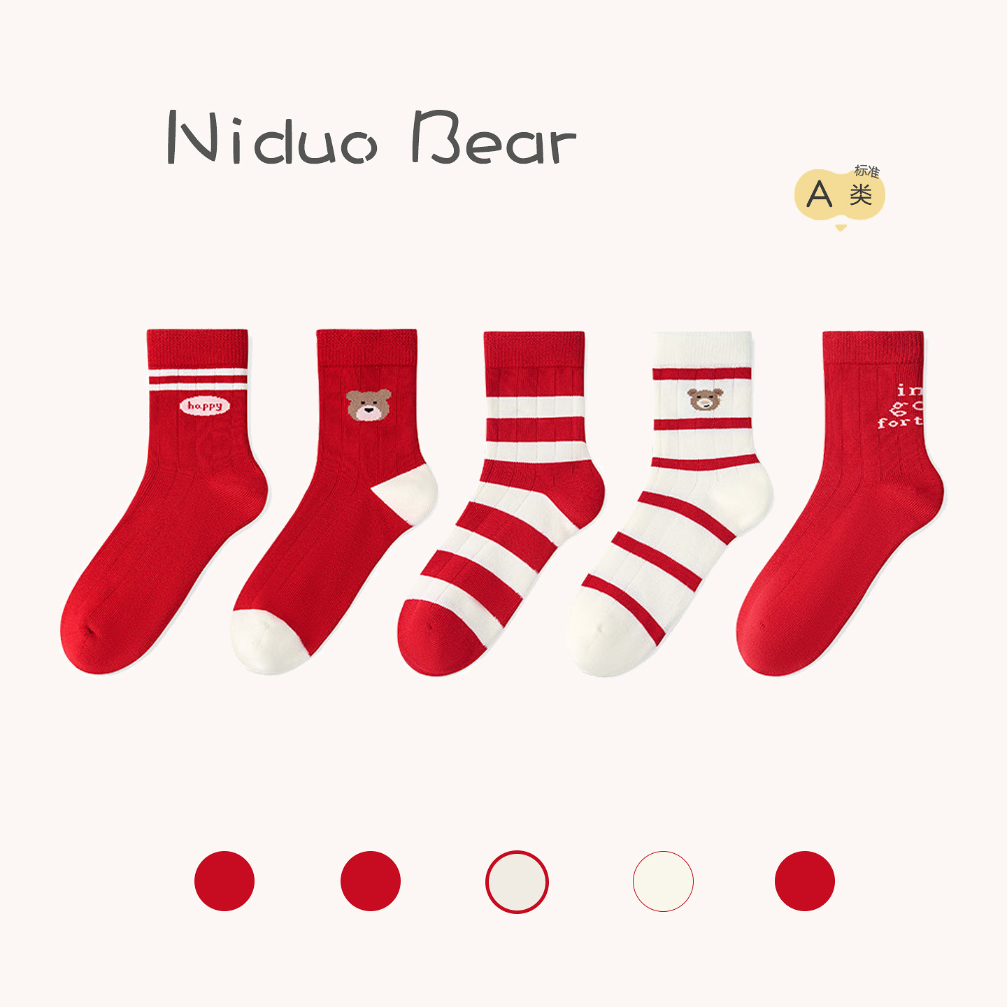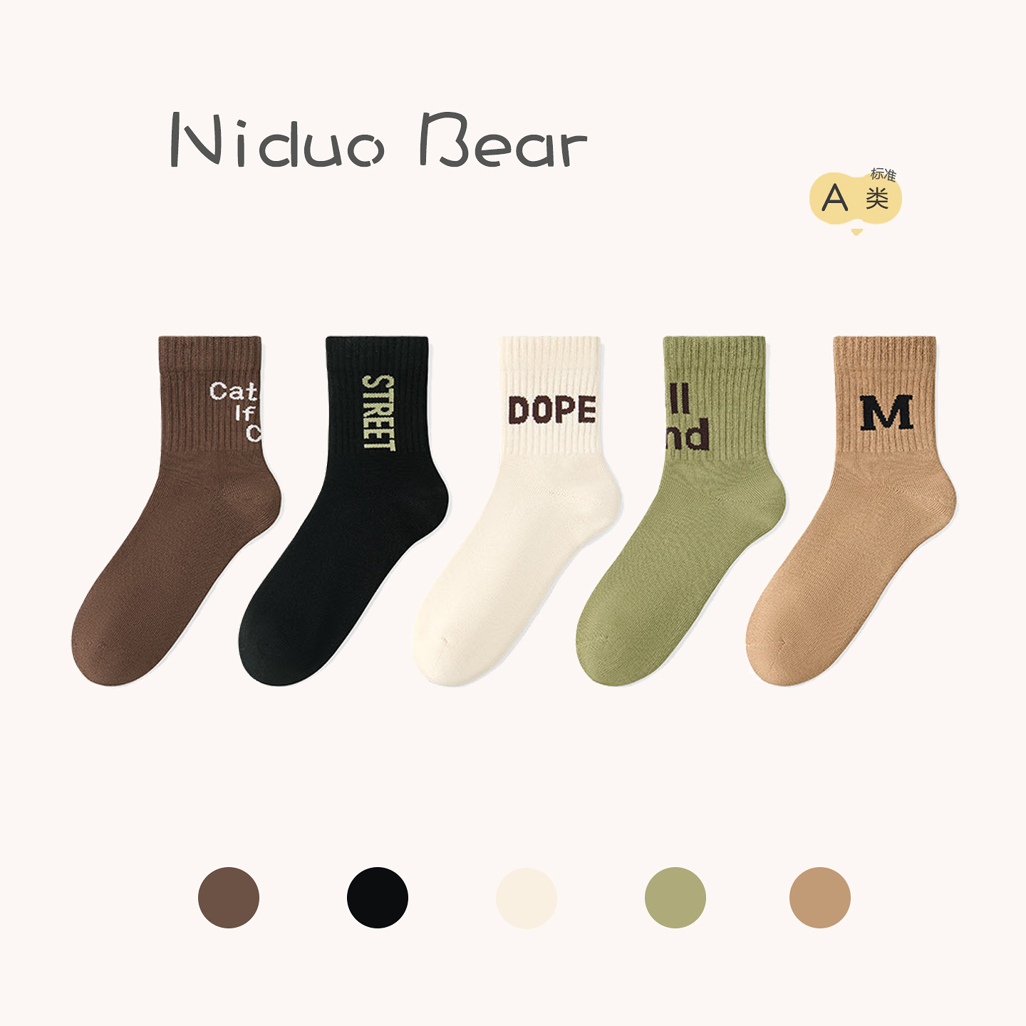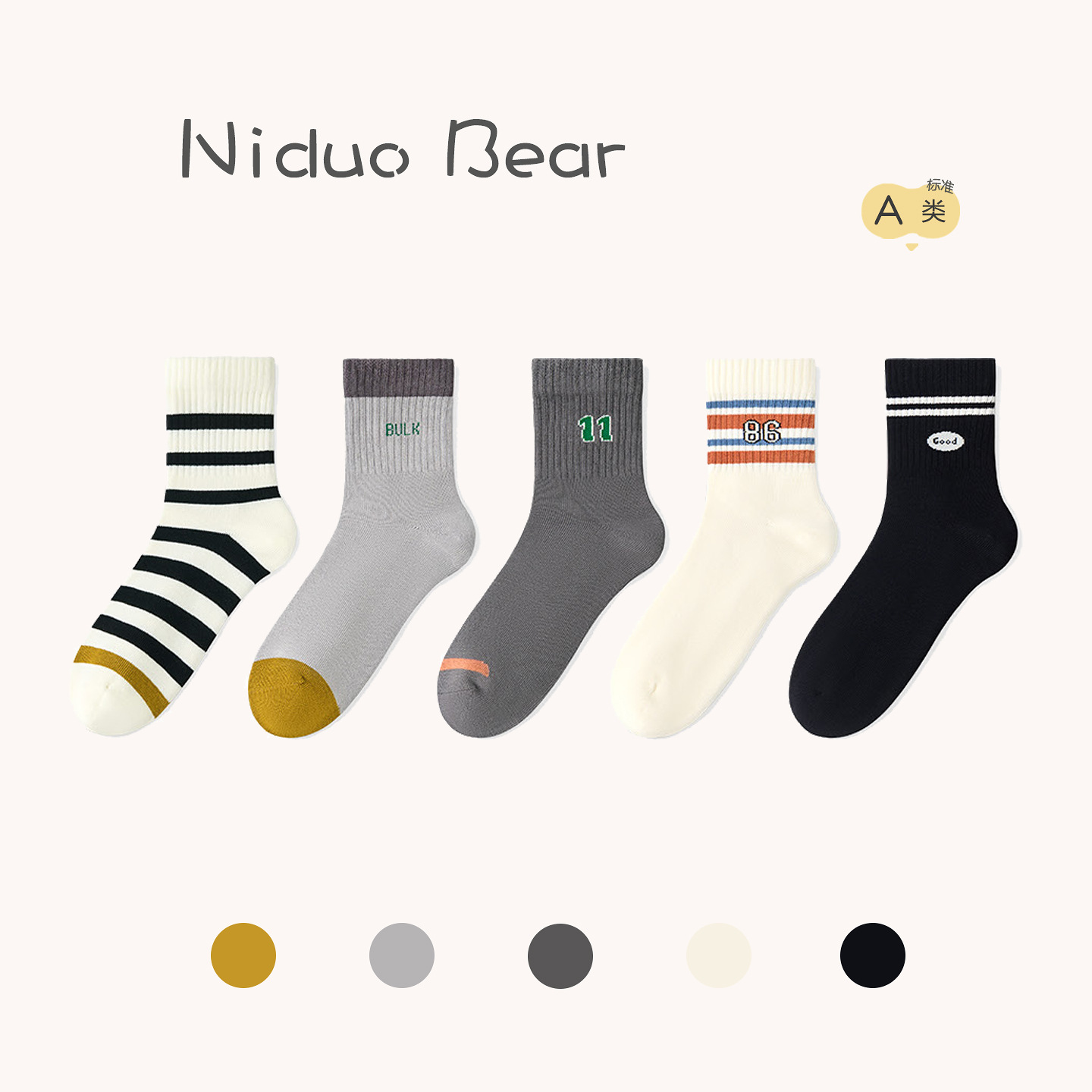 니도베어 어린이 양말 가을 겨울 A급 면 무봉제 만화 중목 양말 남녀 공용 양말 봄 가을 학생 양말