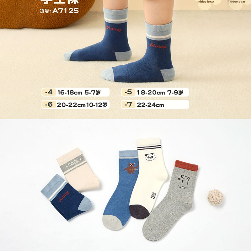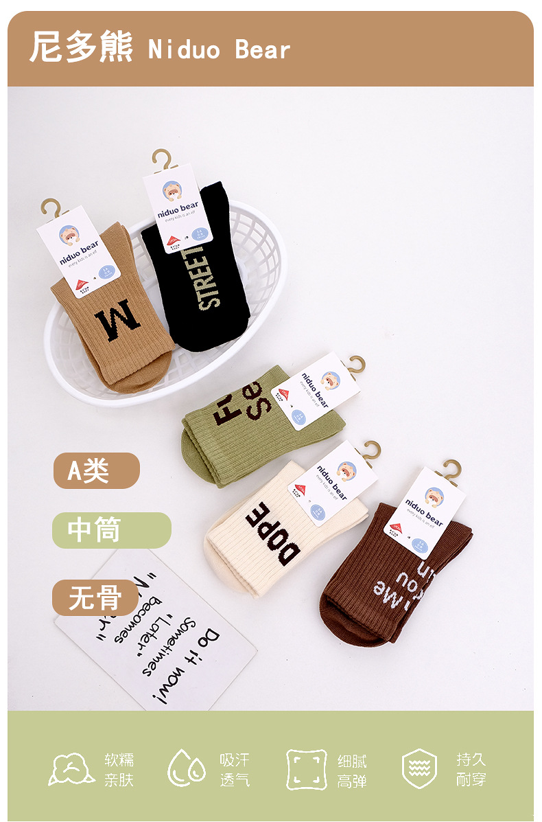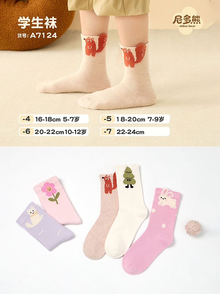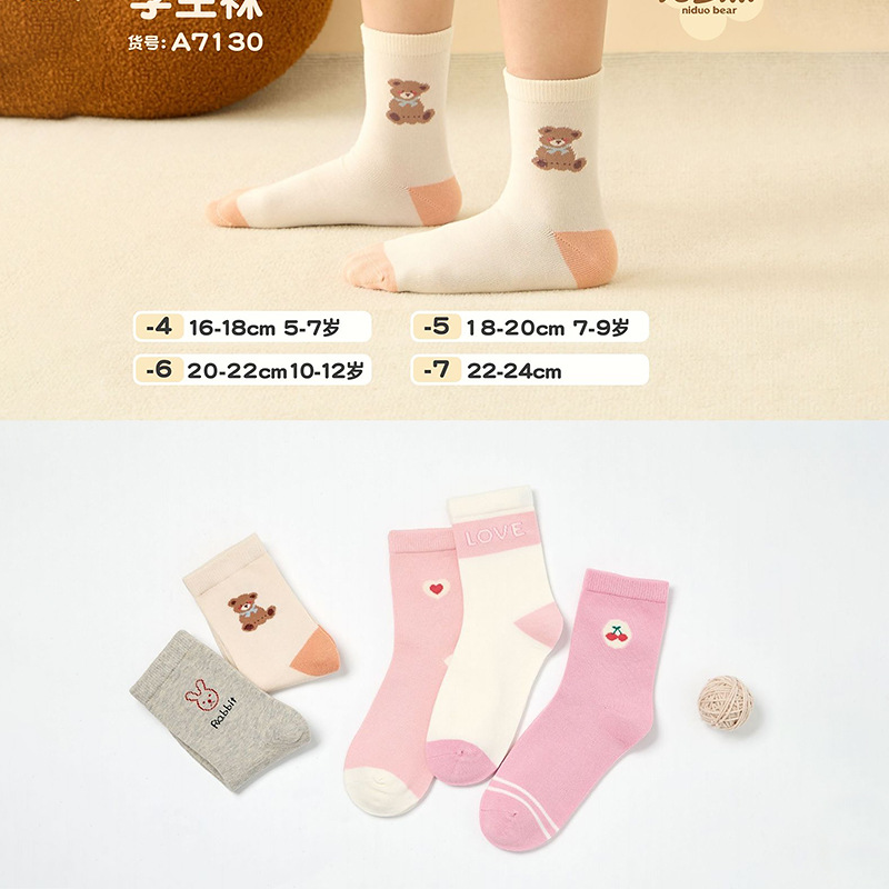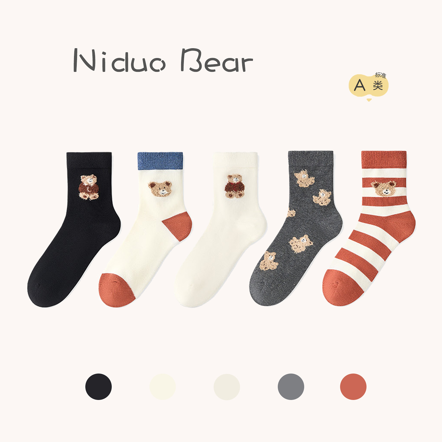 니도베어 어린이 양말 가을 겨울 A급 면 무봉제 만화 중목 양말 남녀 공용 양말 봄 가을 학생 양말스토어 가기