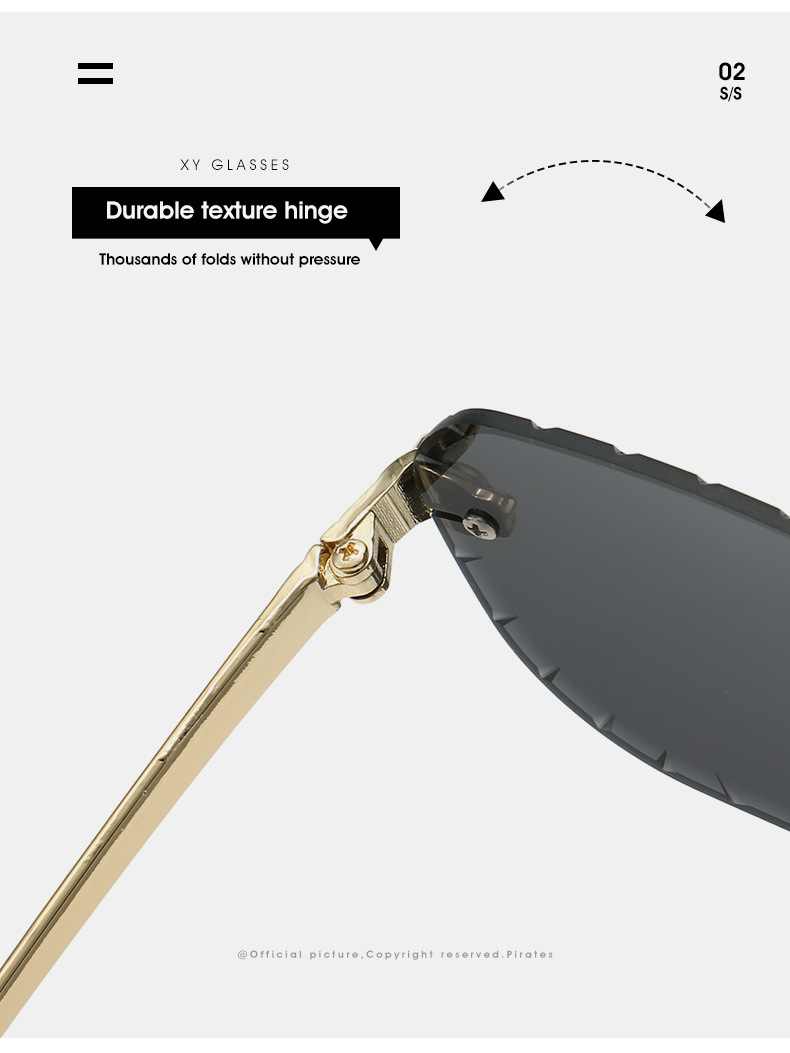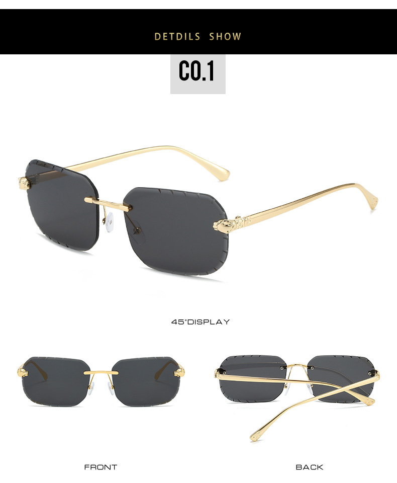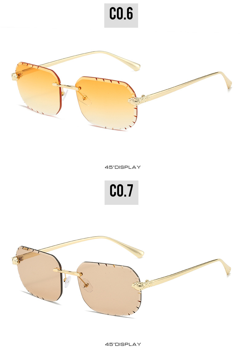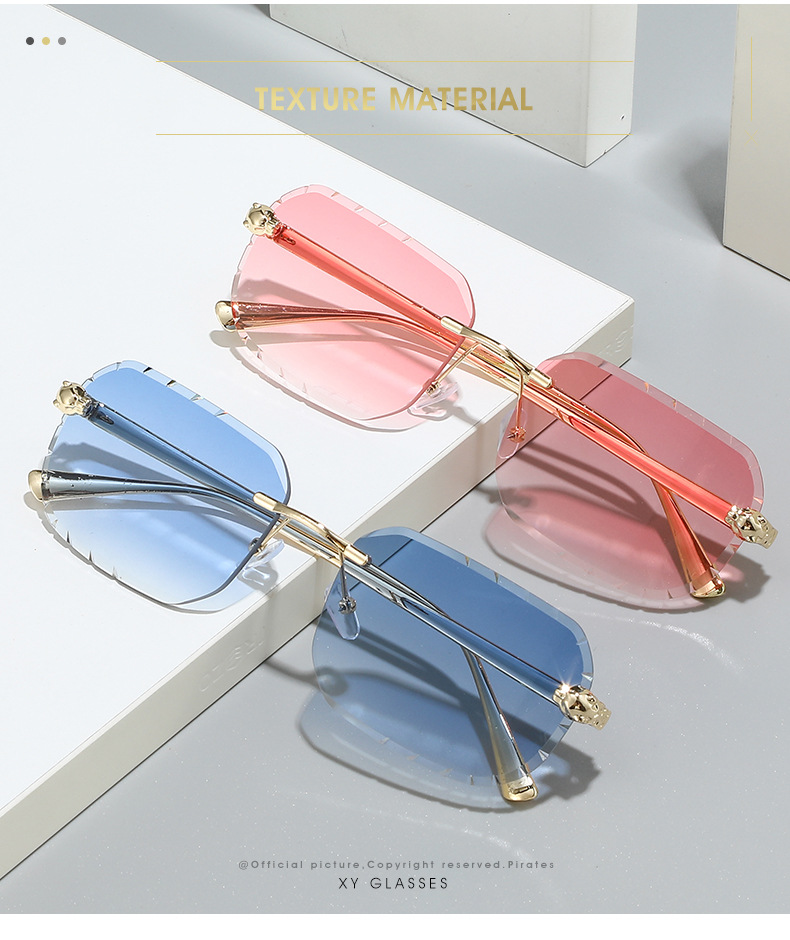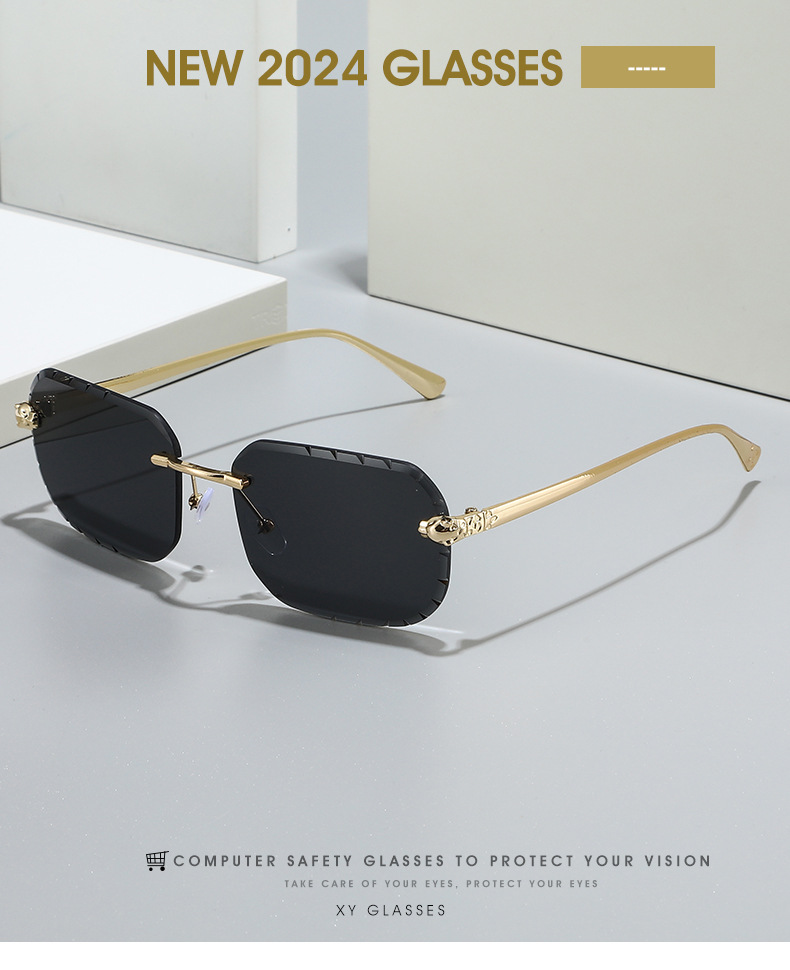 2024 국경을 넘는 새로운 무테 선글라스 남성 유럽과 미국 패션 스퀘어 컷 엣지 올 매치 선글라스 여성용 선글라스스토어 가기