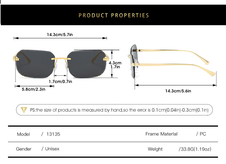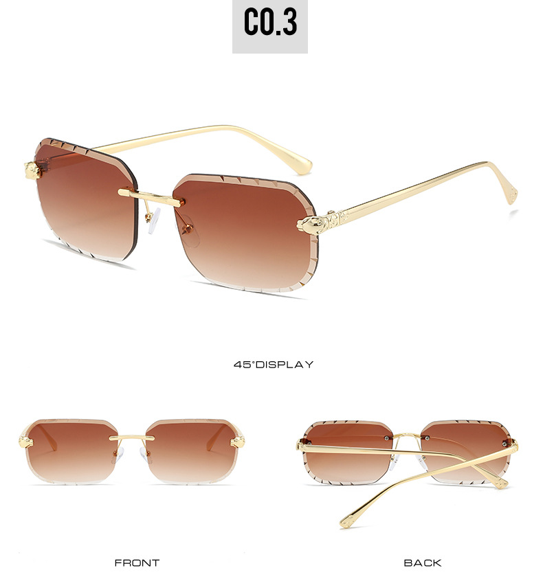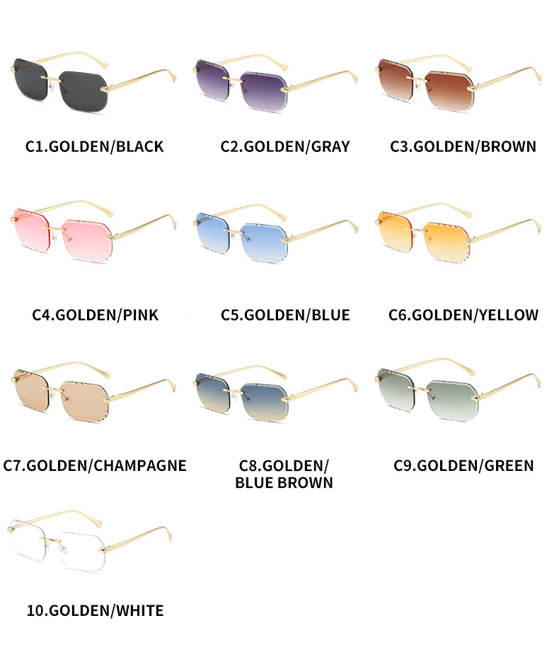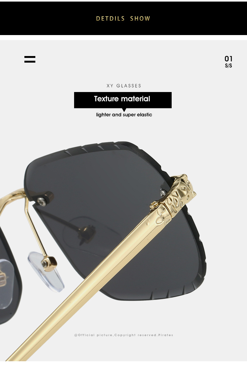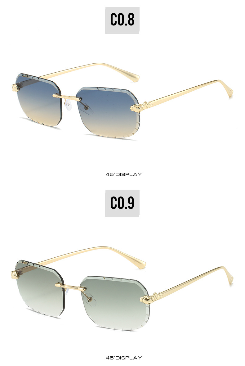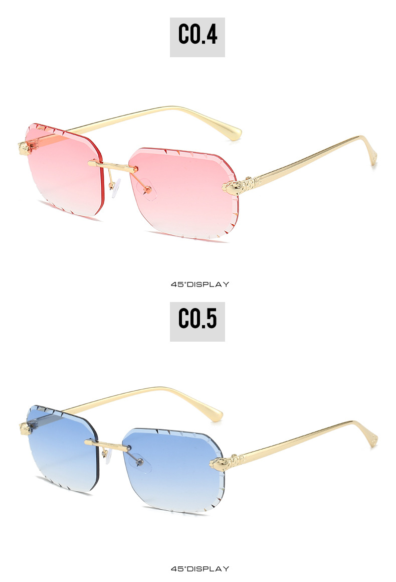 2024 국경을 넘는 새로운 무테 선글라스 남성 유럽과 미국 패션 스퀘어 컷 엣지 올 매치 선글라스 여성용 선글라스스토어 가기