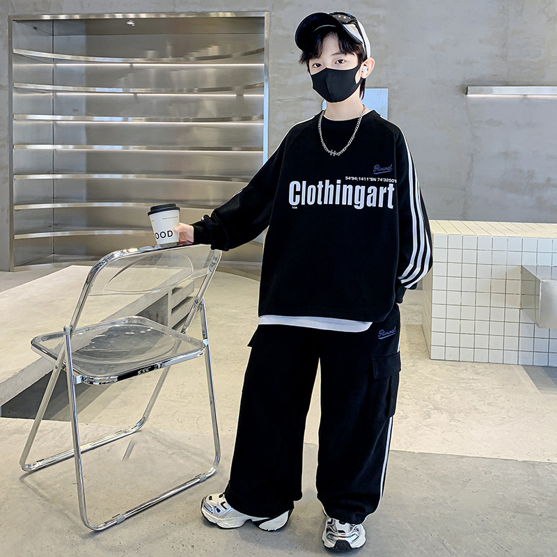 소년 스포츠 세트 봄과 가을 옷 큰 어린이 땀 바지 투피스 세트 2025 새로운 소년 캐주얼 의류 트렌디스토어 가기