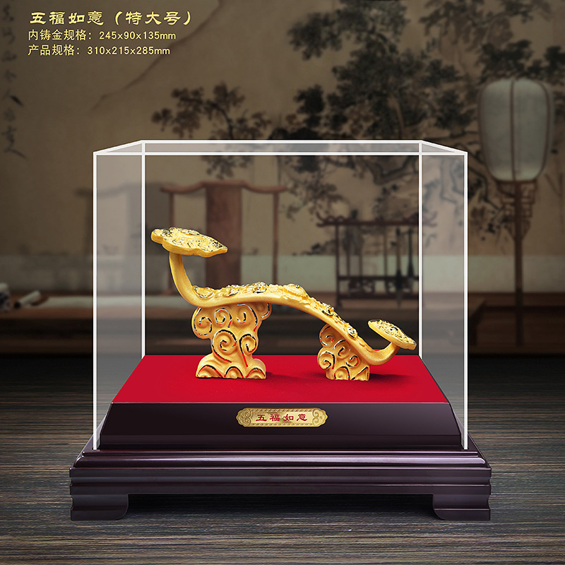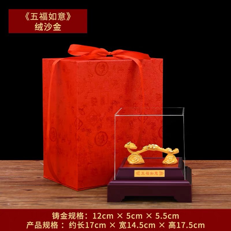 벨벳 샌드 골드 오복(五福) 장식품, 거실 현관 사무실 행운 장식, 개업 및 집들이 선물