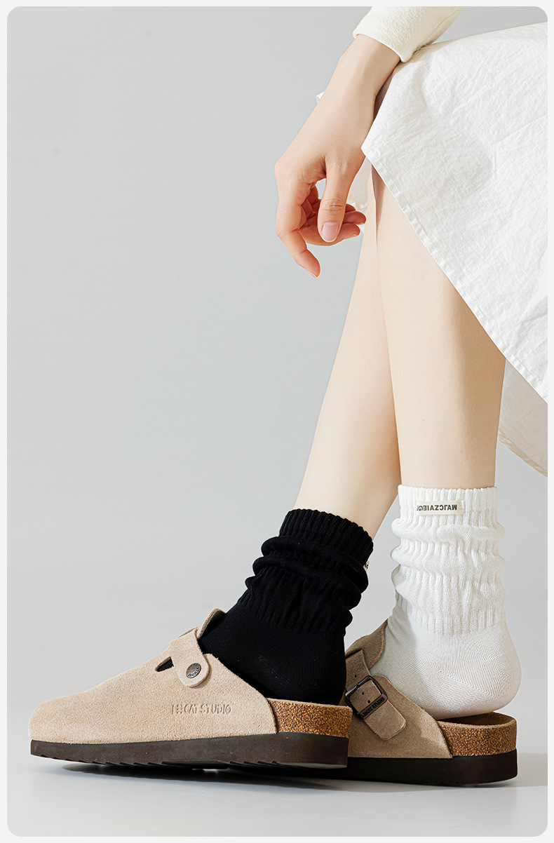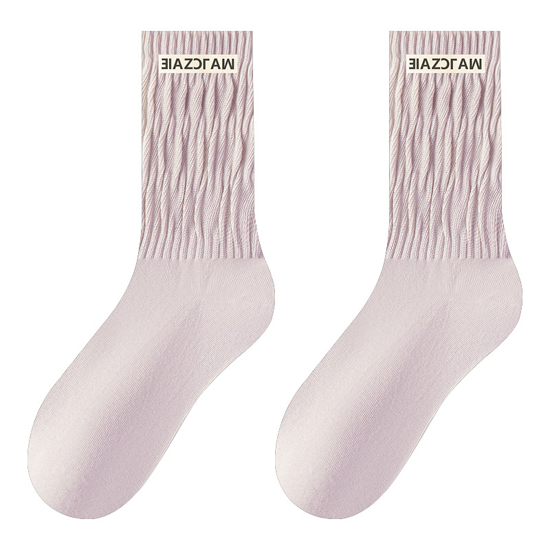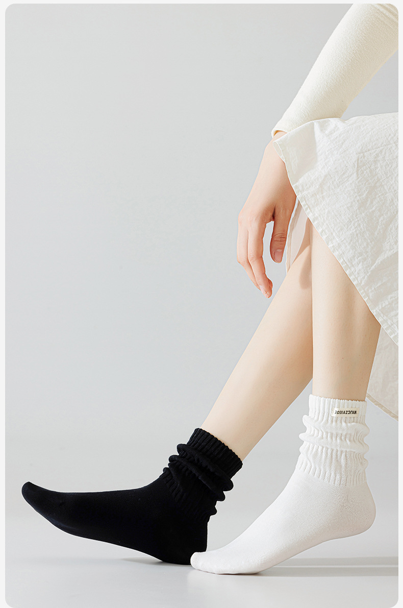 Zhuji 양말 공장 가을 및 겨울 새로운 천 라벨 여성 양말 포장 중간 길이 양말 어린이 순면 간단한 올 매치 대학 스타일 스타킹