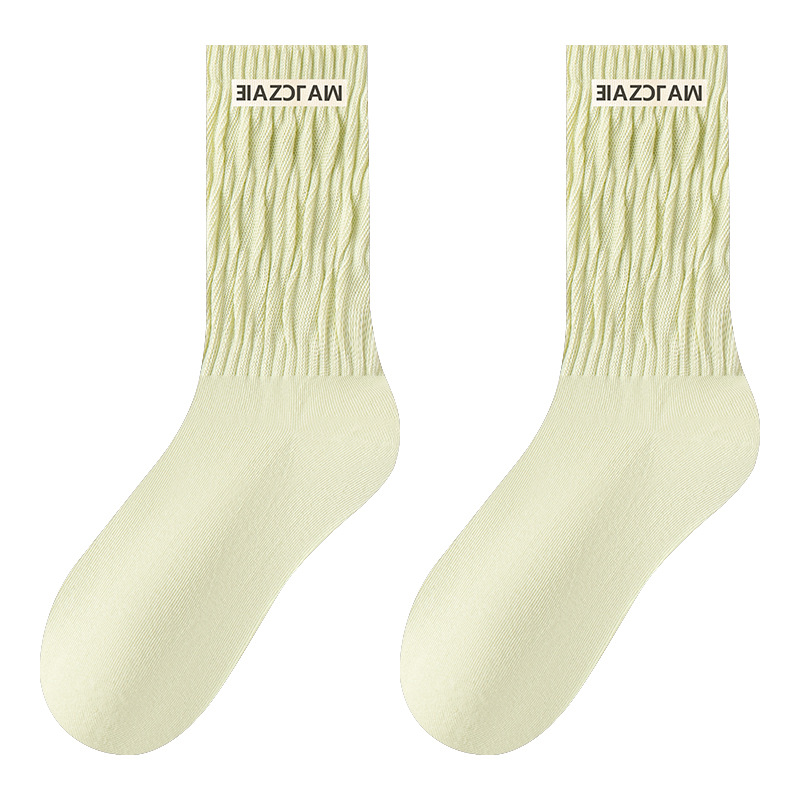 Zhuji 양말 공장 가을 및 겨울 새로운 천 라벨 여성 양말 포장 중간 길이 양말 어린이 순면 간단한 올 매치 대학 스타일 스타킹스토어 가기