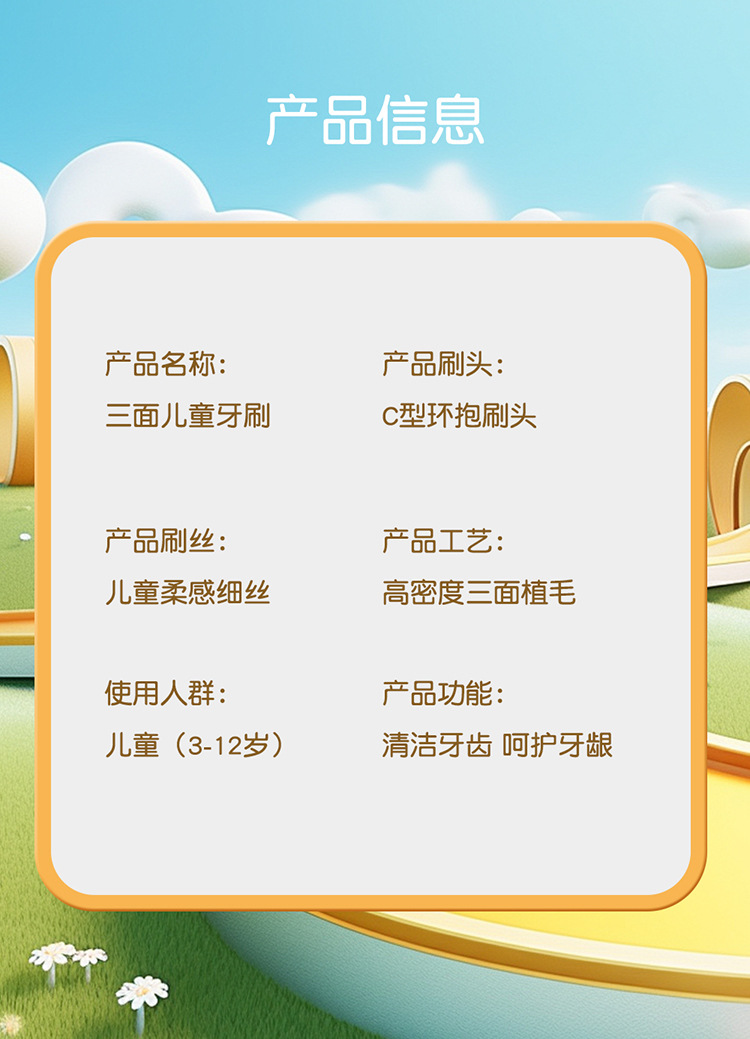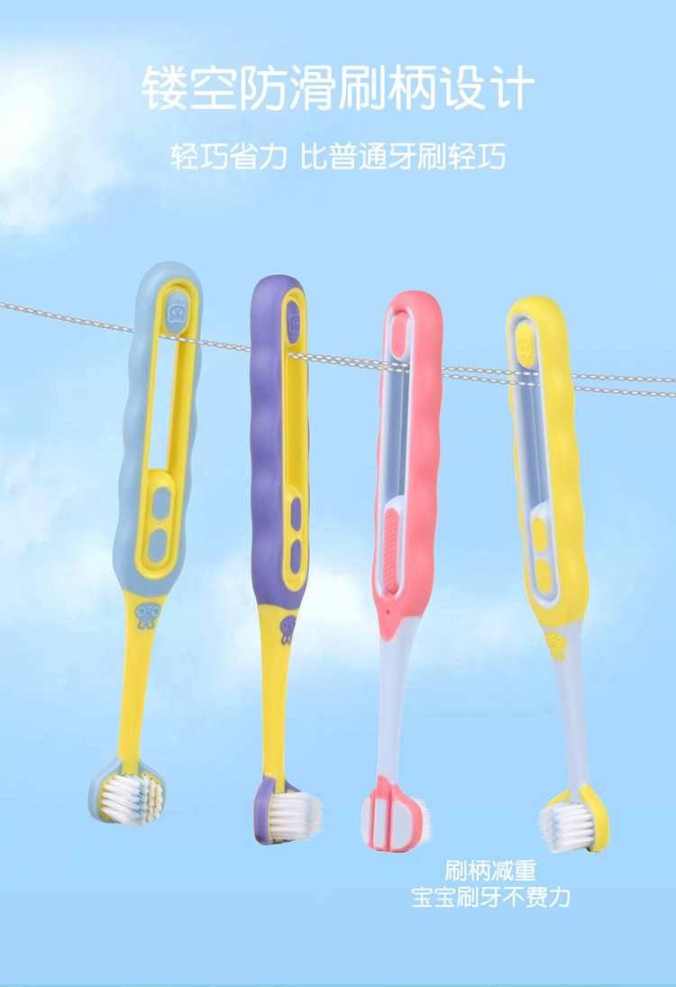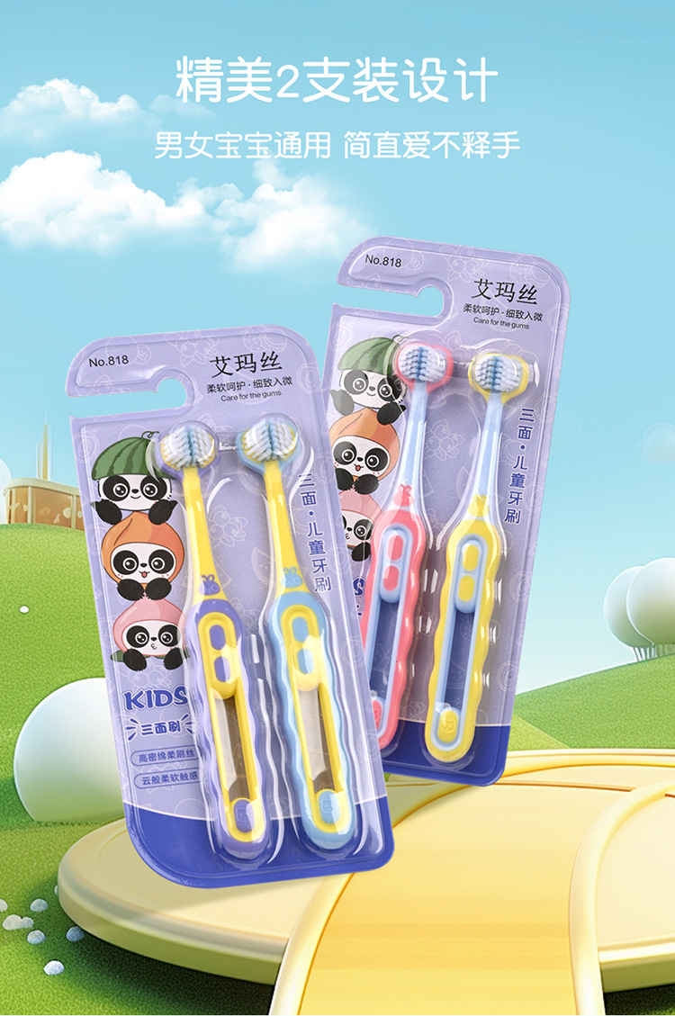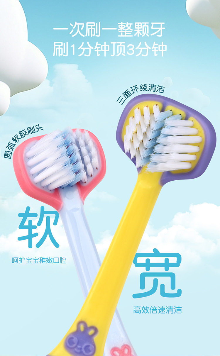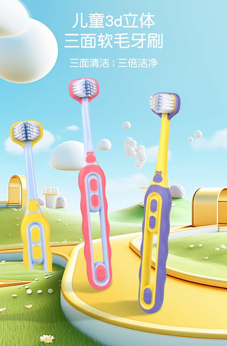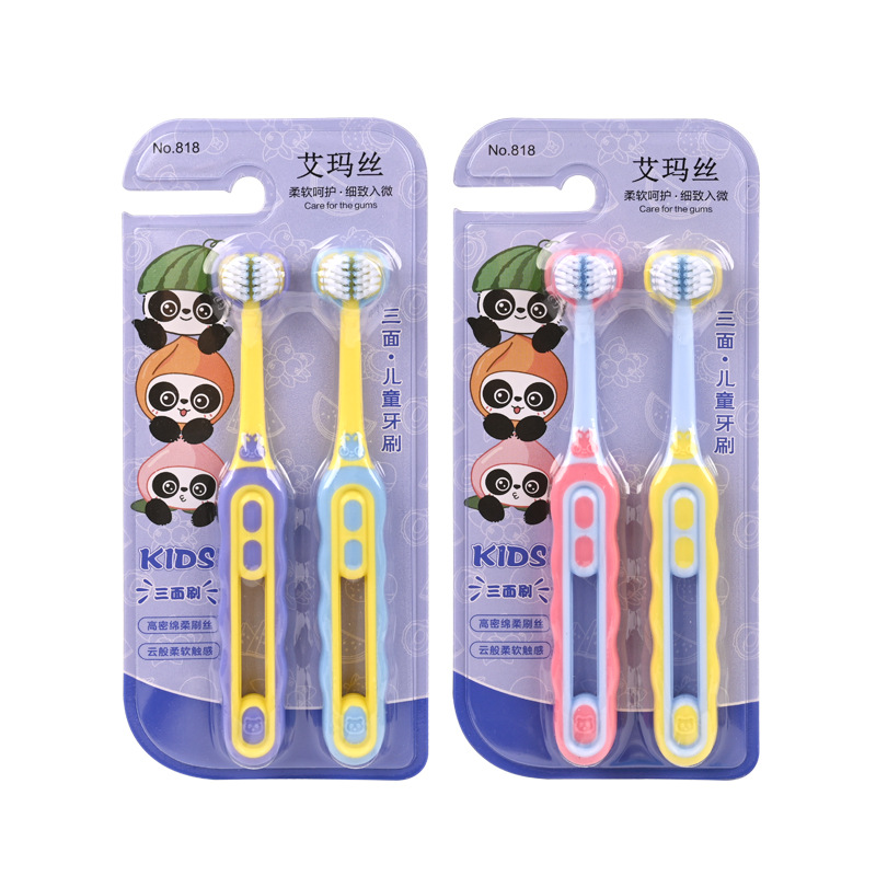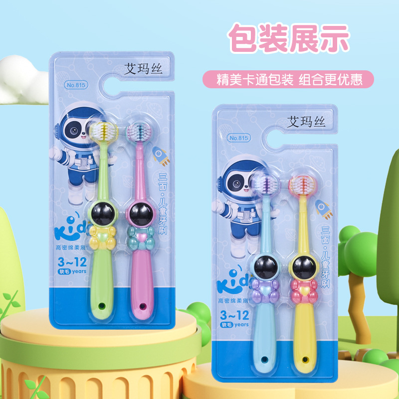 엠마 어린이 3 면 칫솔 3D 입체 3 면 포장 3 ~ 12 세 구강 청소 어린이 부드러운 칫솔