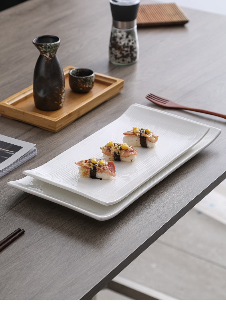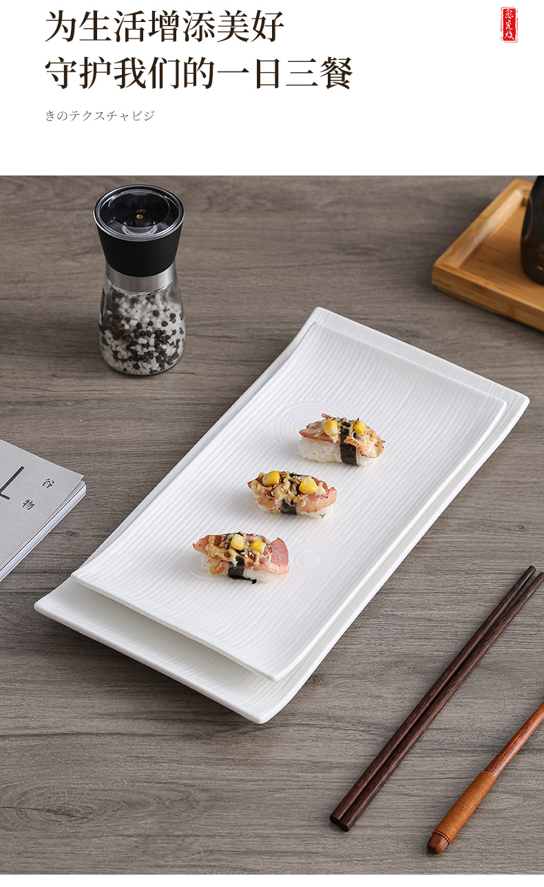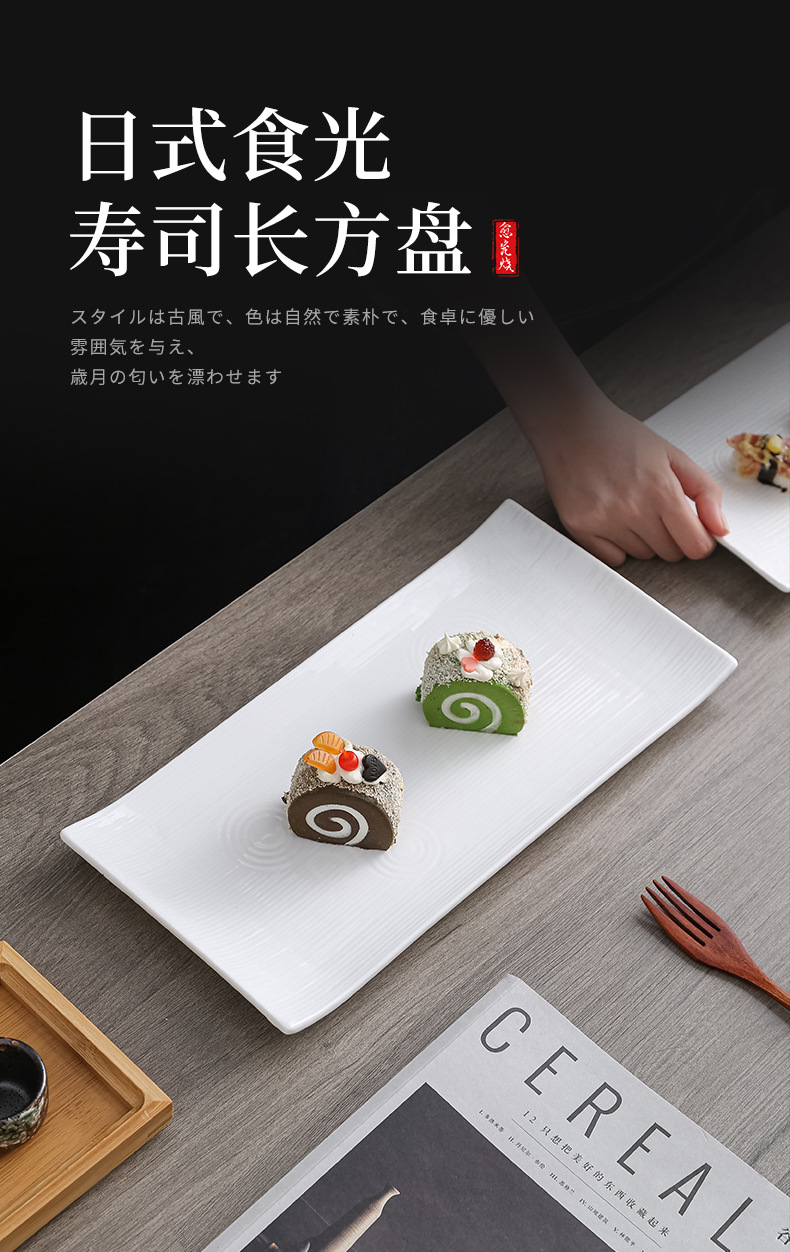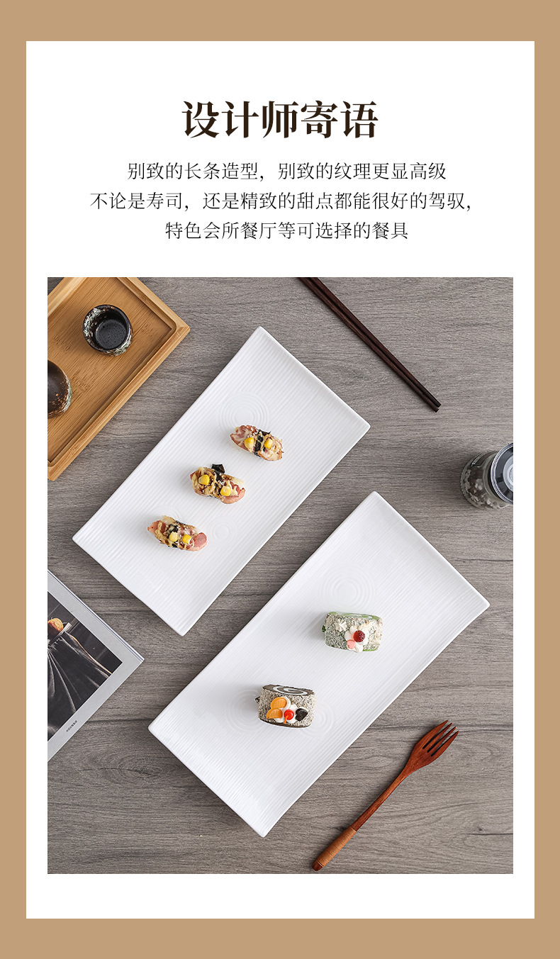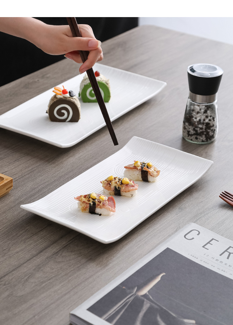 화이트 세라믹 플레이트 직사각형 사시미 플레이트 상업 호텔 웨스턴 푸드 플레이트 가정용 만두 플레이트 대외 무역 국경스토어 가기