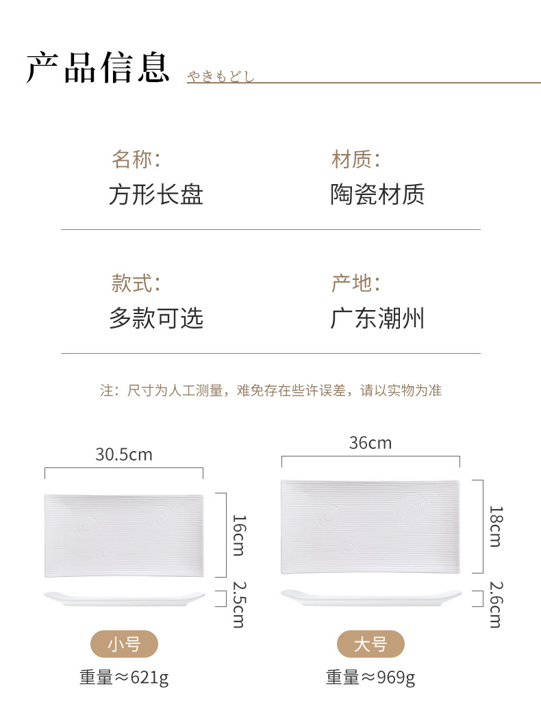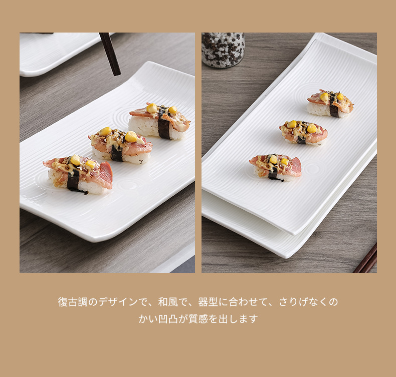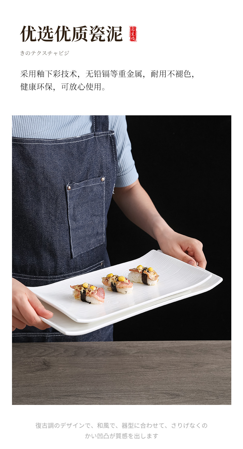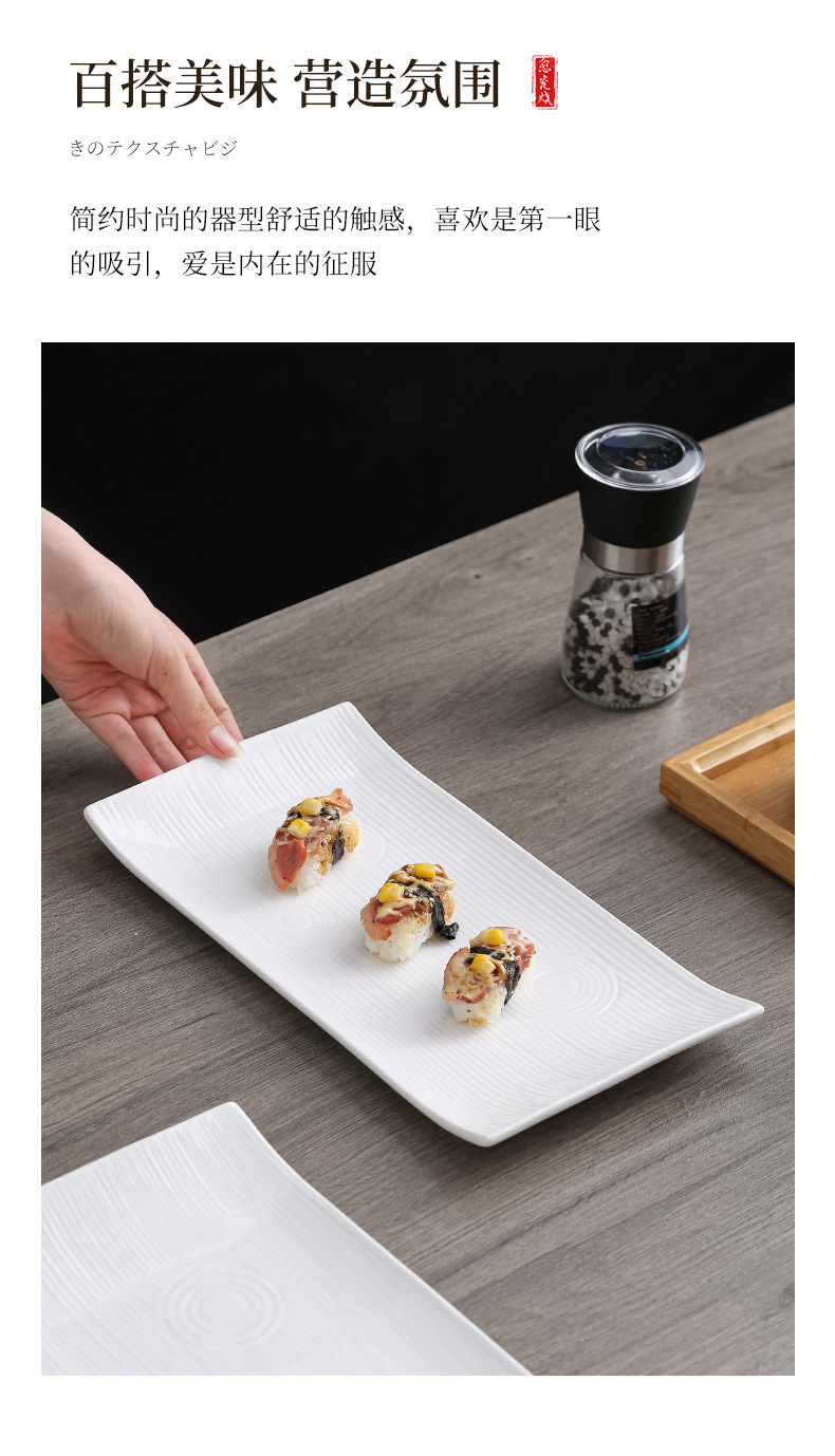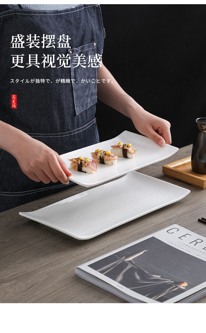 화이트 세라믹 플레이트 직사각형 사시미 플레이트 상업 호텔 웨스턴 푸드 플레이트 가정용 만두 플레이트 대외 무역 국경스토어 가기