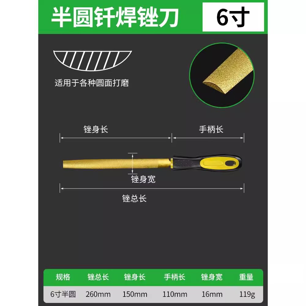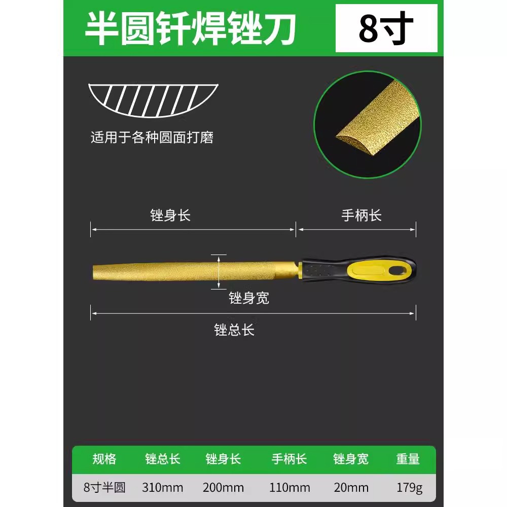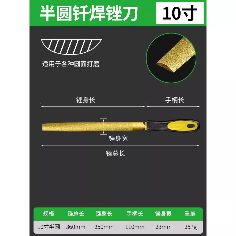 Baolian 브레이징 다이아몬드 파일 평면 반원형 6 인치 10 인치 12 옥 금속 녹 돌 연삭 8 인치스토어 가기