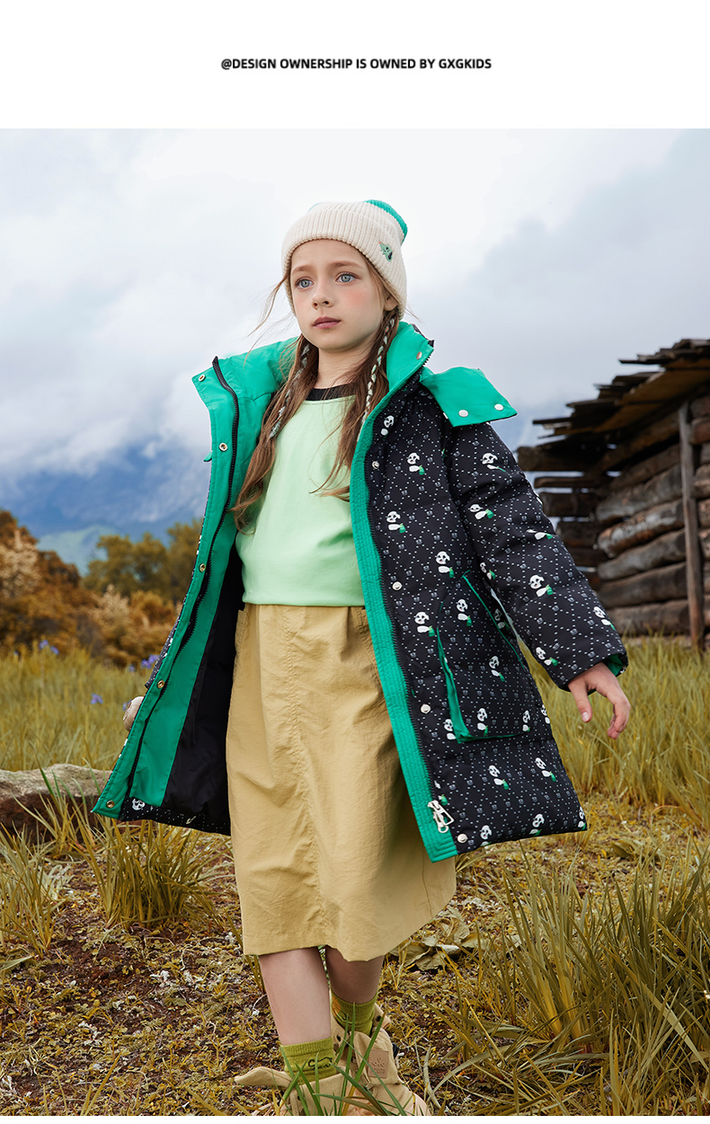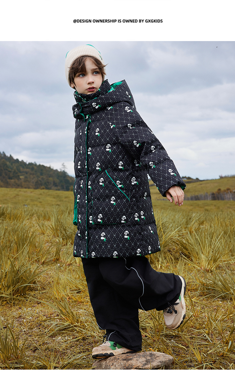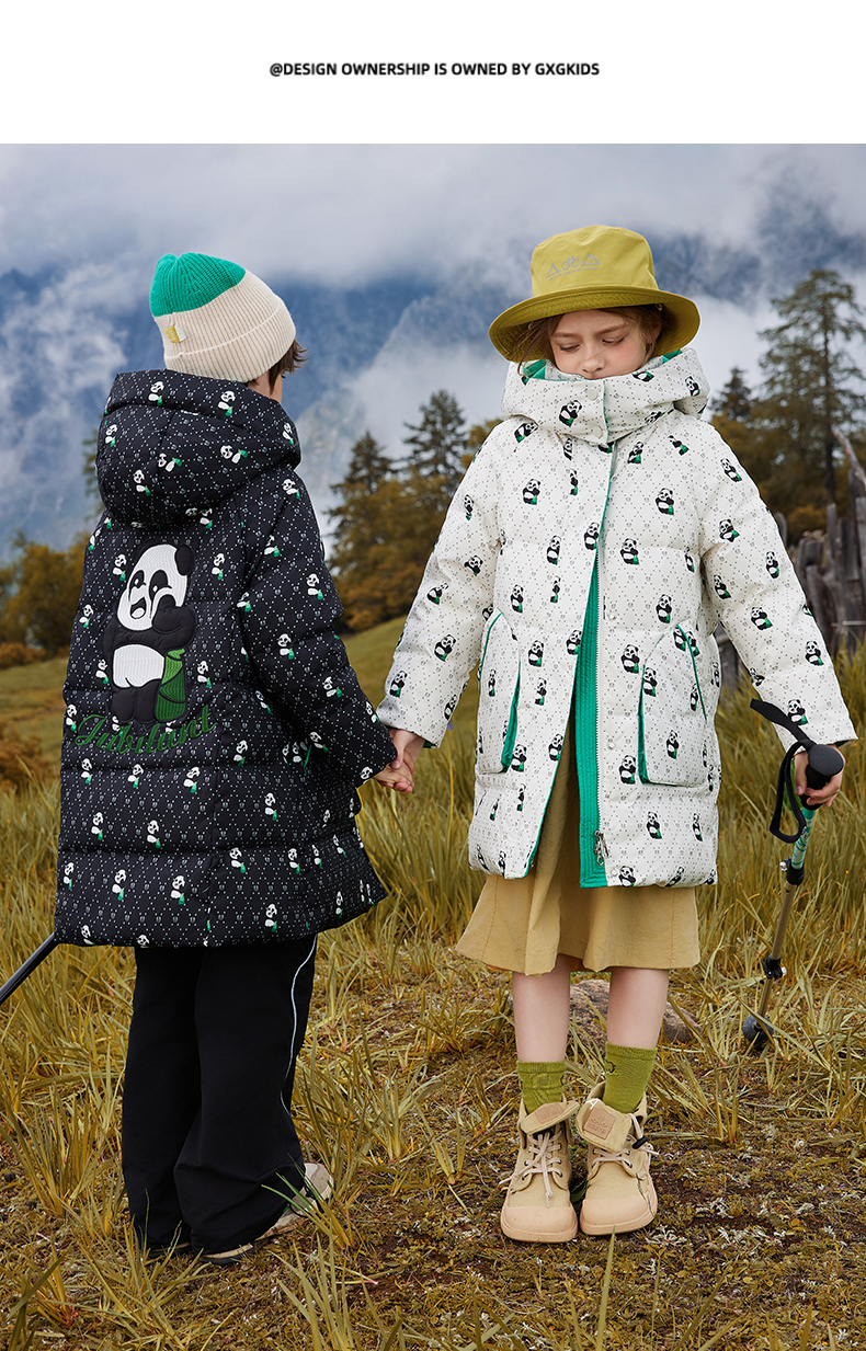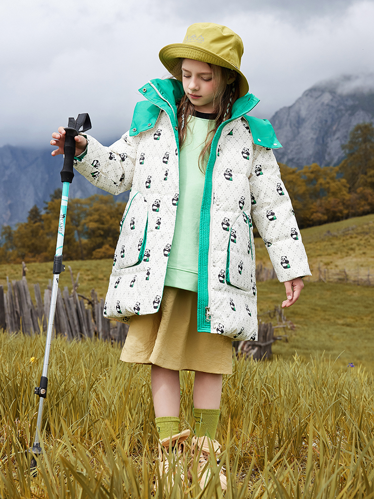 오리 어린이 착용 다운 재킷 2024 남학생과 여학생 중간 길이의 패셔너블 후드 한국식 따뜻한 재킷스토어 가기