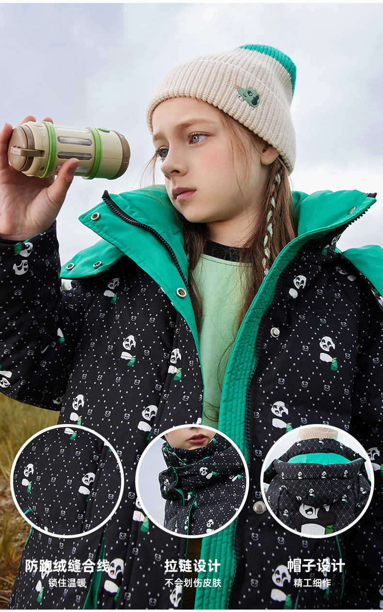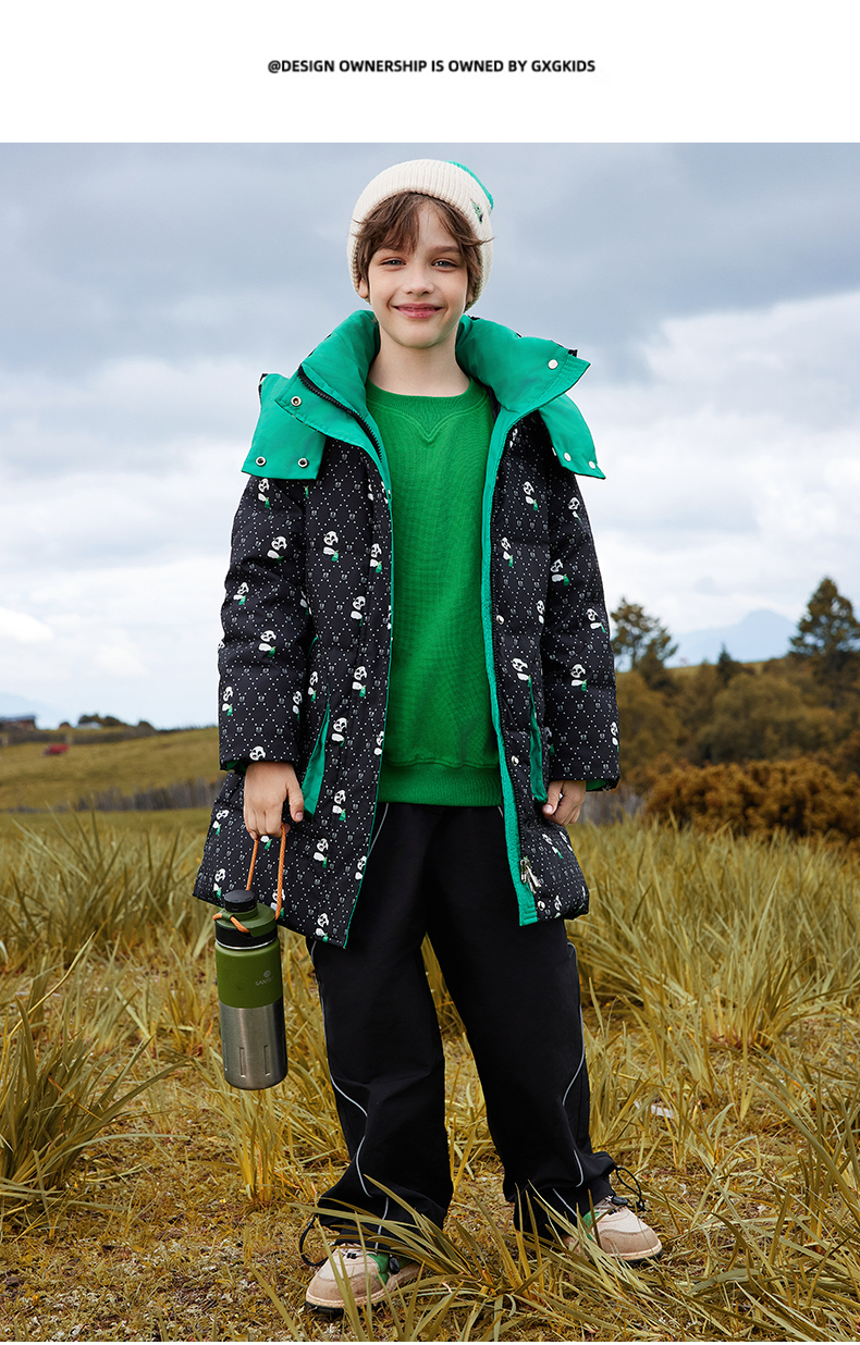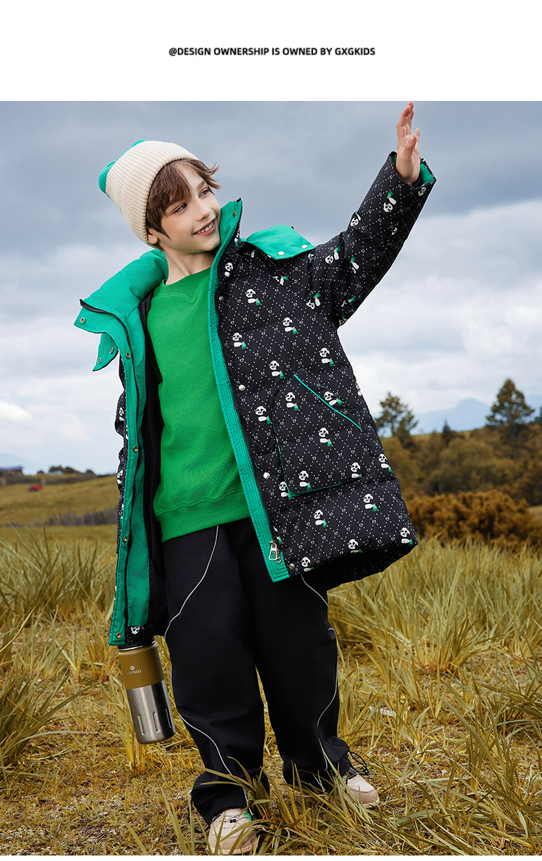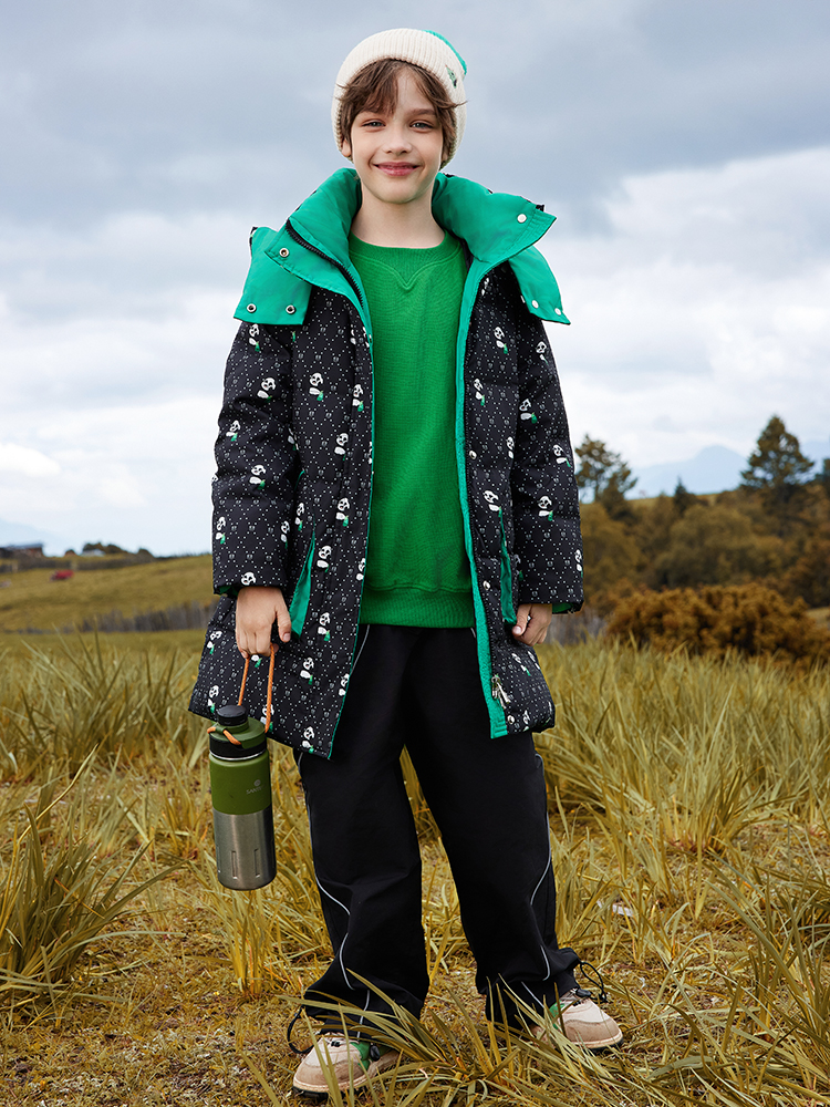 오리 어린이 착용 다운 재킷 2024 남학생과 여학생 중간 길이의 패셔너블 후드 한국식 따뜻한 재킷스토어 가기