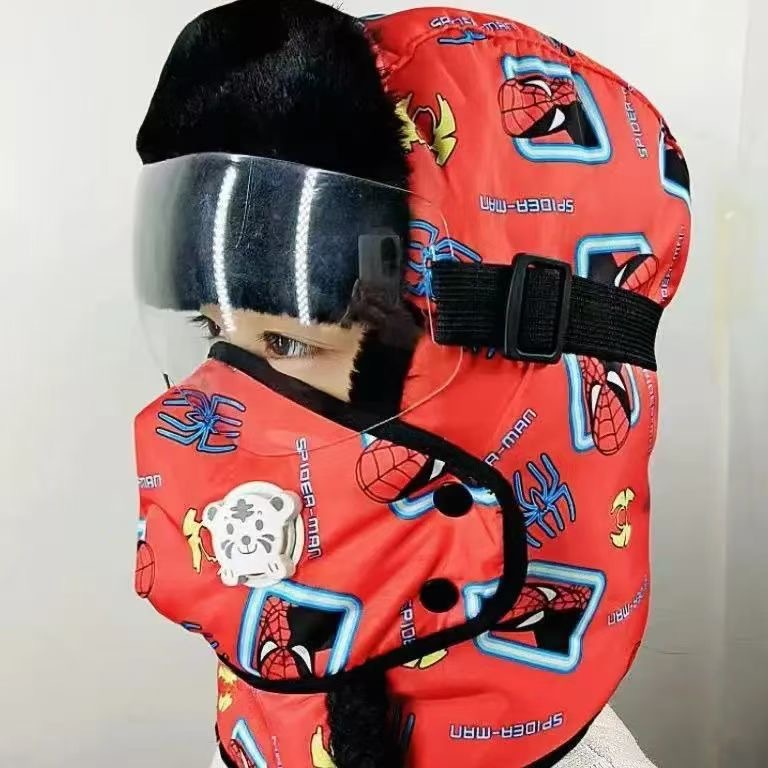 남아 및 여아용 동북 겨울용 어린이 모자, 벨벳으로 두껍게, 따뜻함, 방풍 및 방한, 사이클링 귀 보호 및 얼굴 보호 레이펑 모자