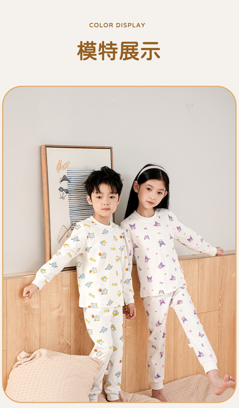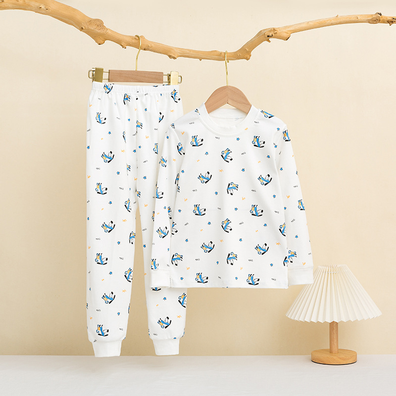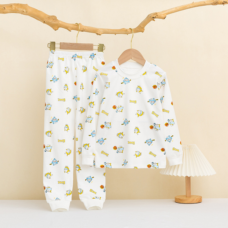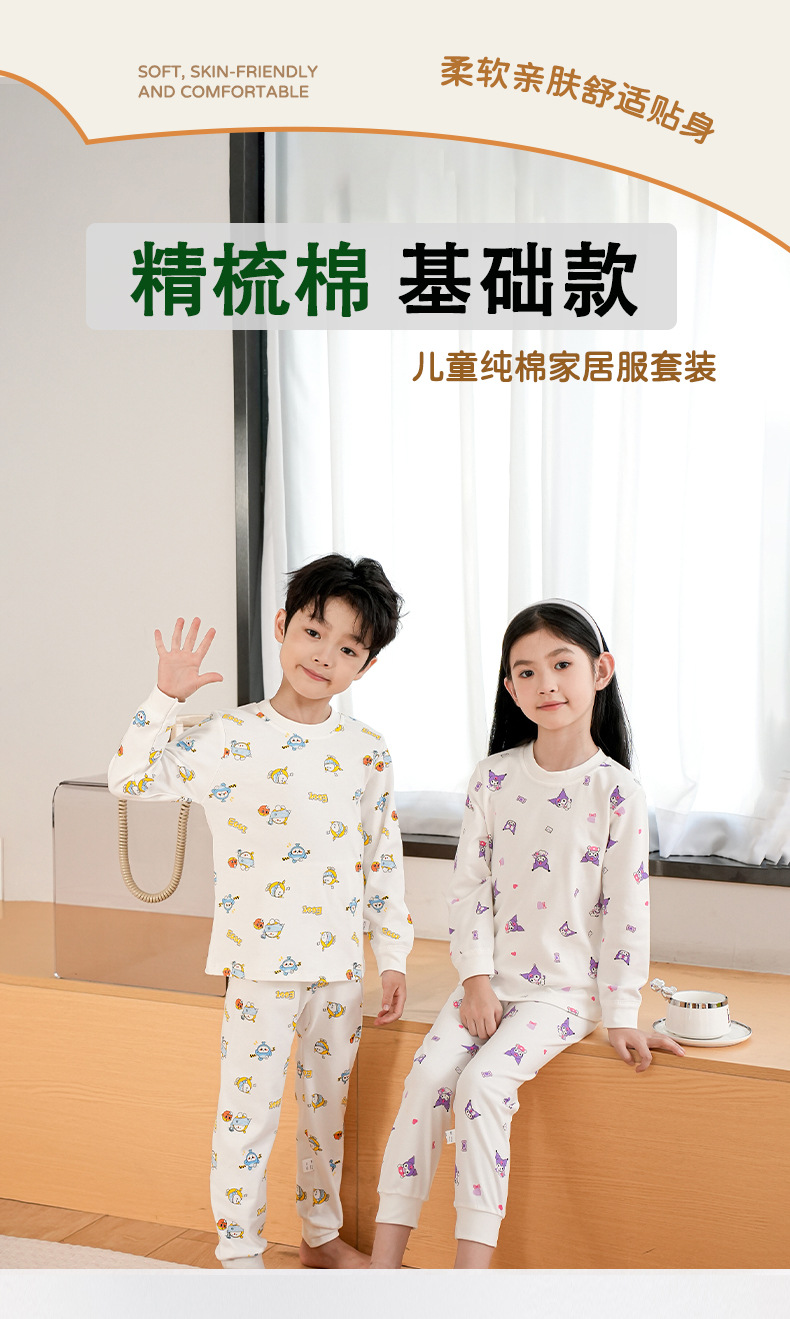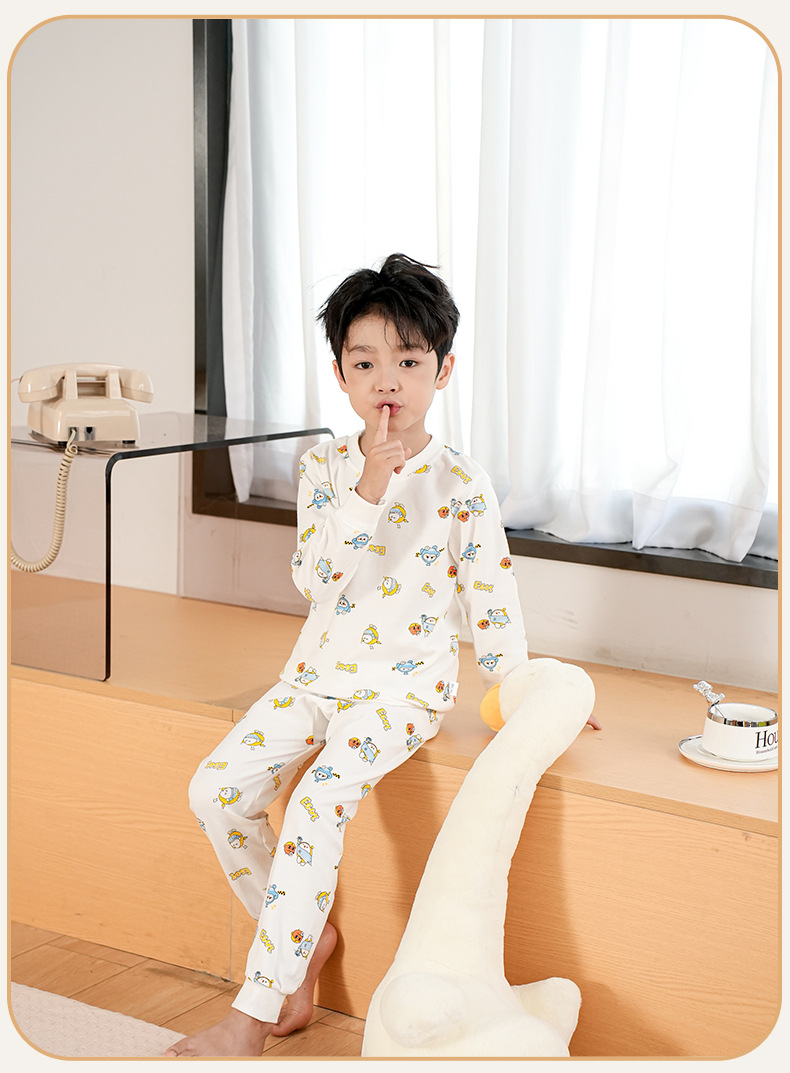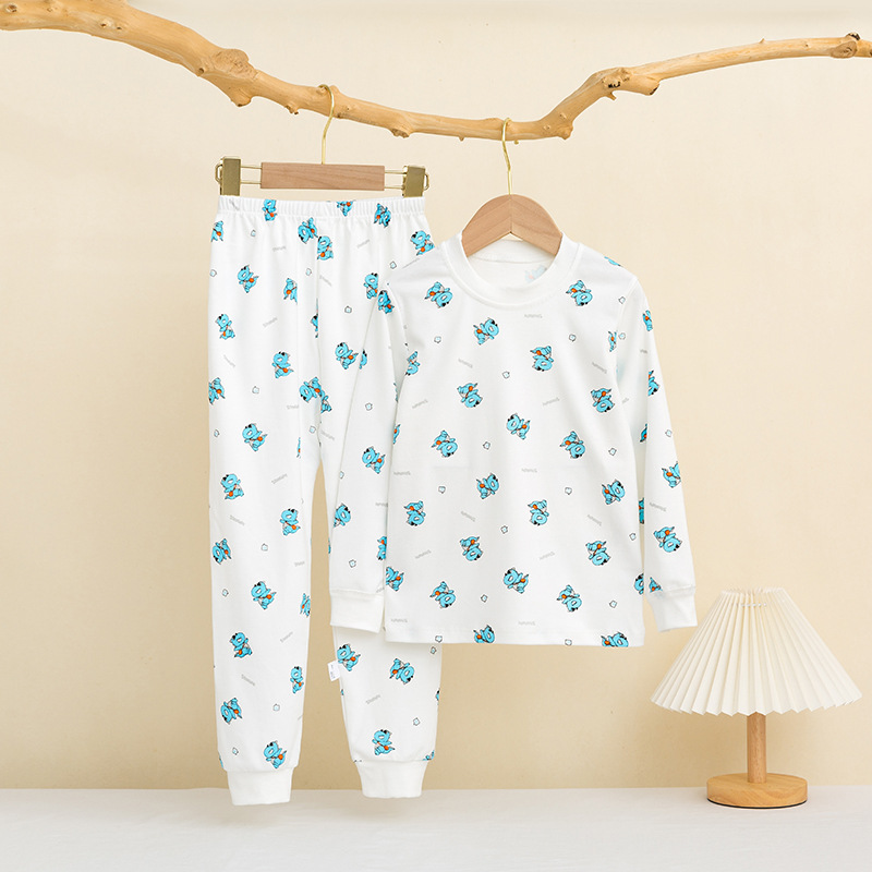 어린이 면 가을 바지 큰 어린이 가을 겨울 새 긴 소매 면 양모 홈 옷 파자마 따뜻한 세트 소년 소녀를위한스토어 가기