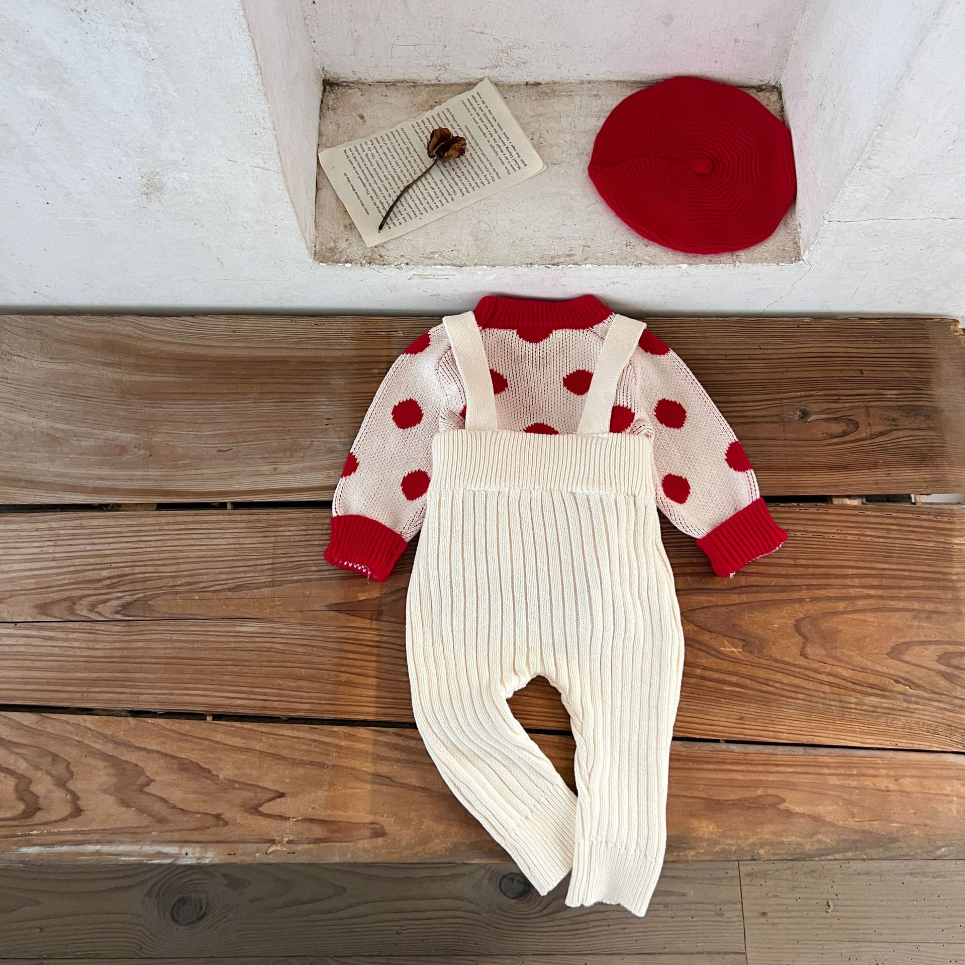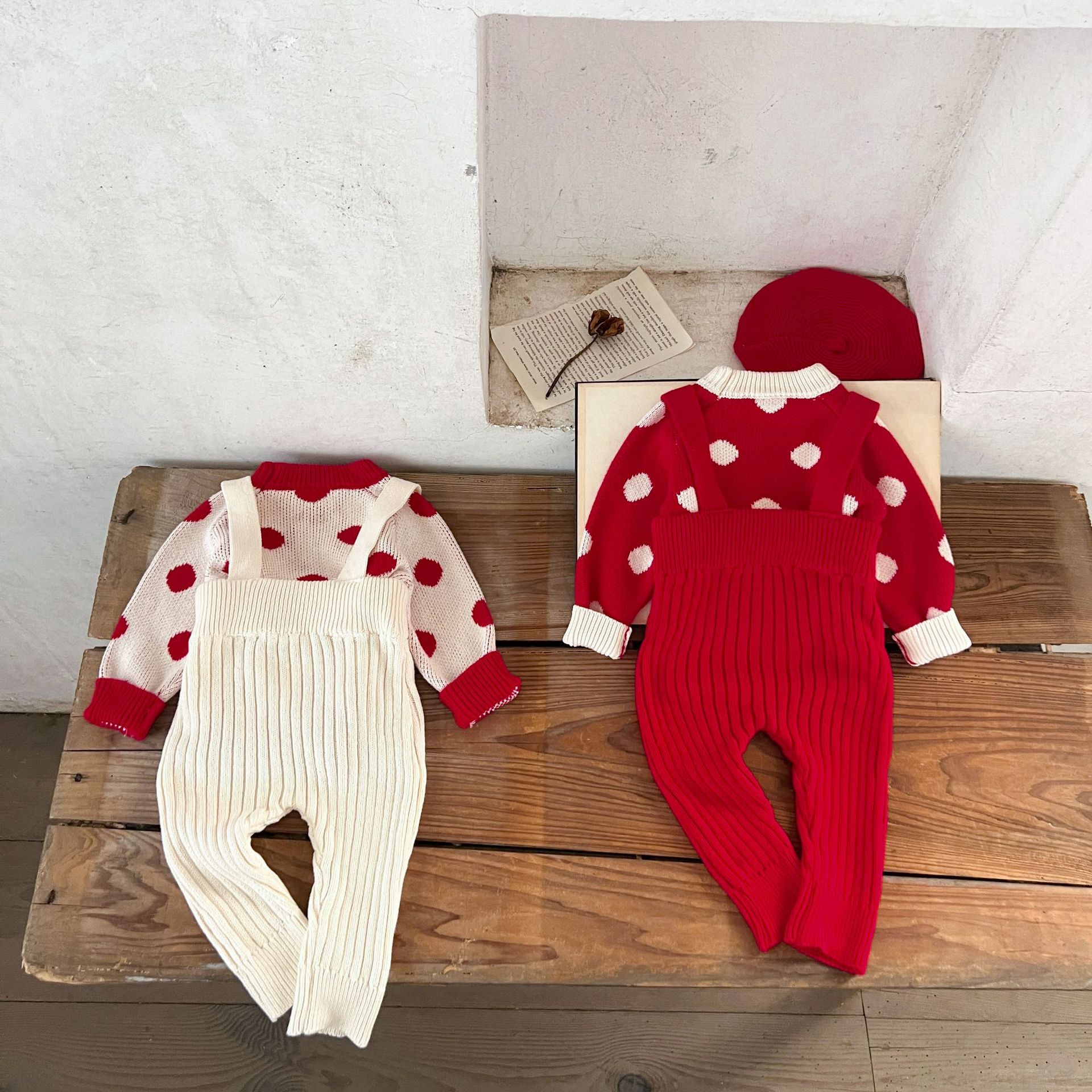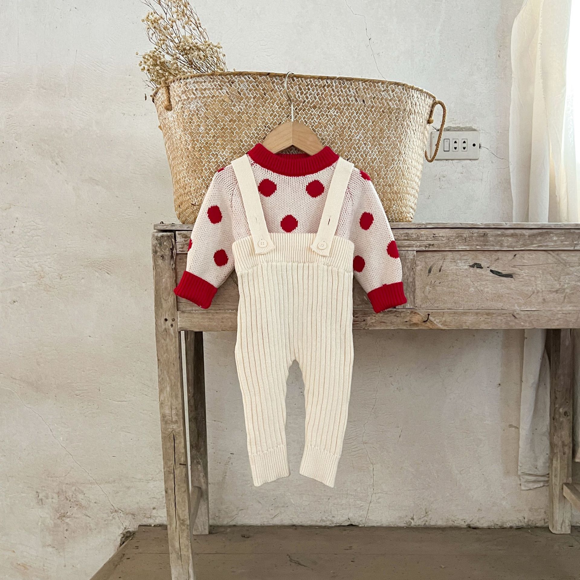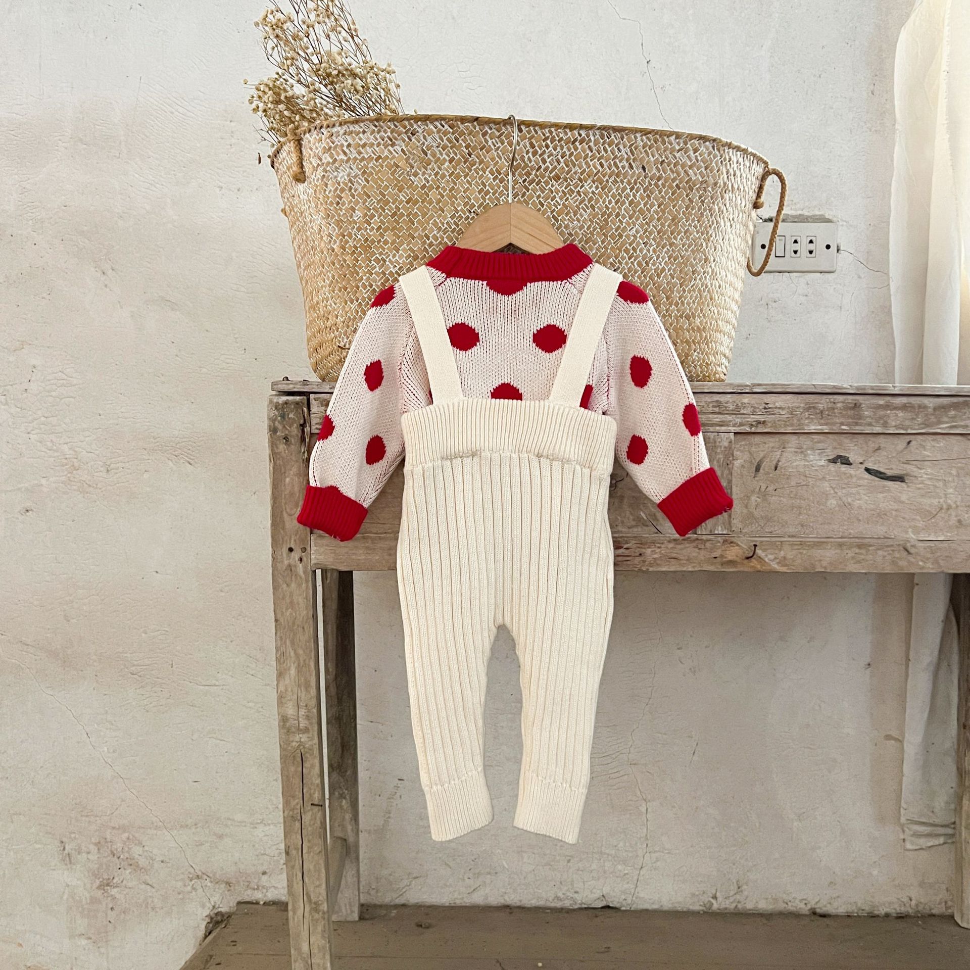Ins Baby 세트 2024 봄과 가을 아기 점 풀오버 스웨터 서스펜더 바지 서양식 2 피스 세트