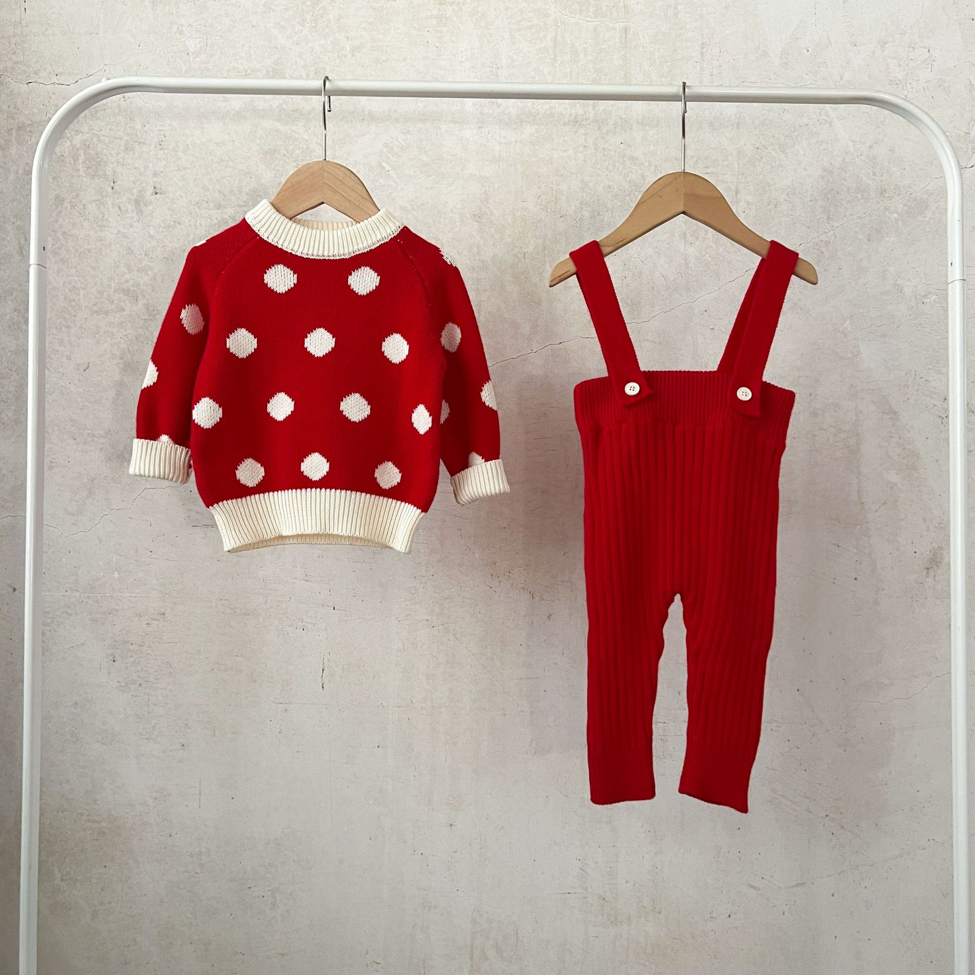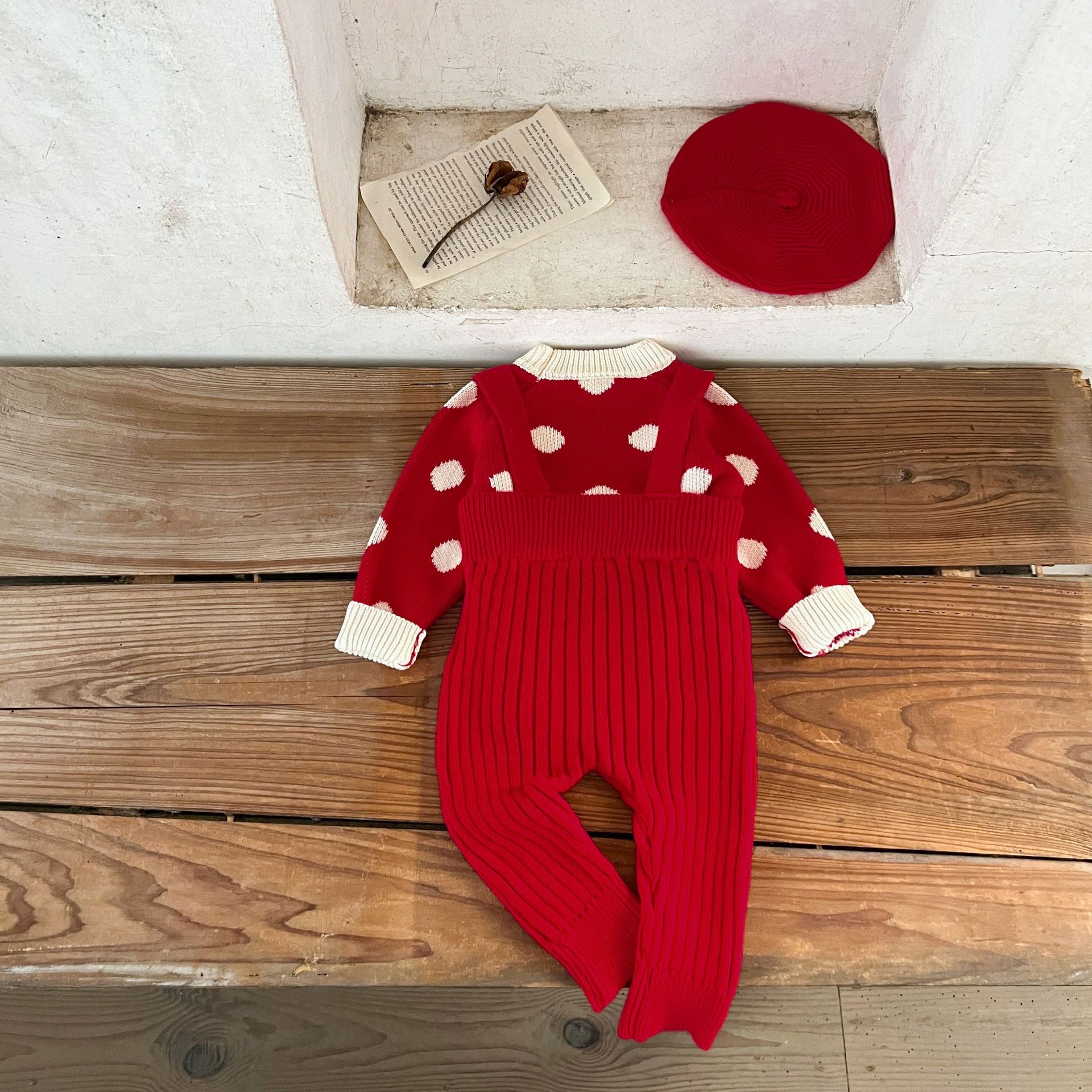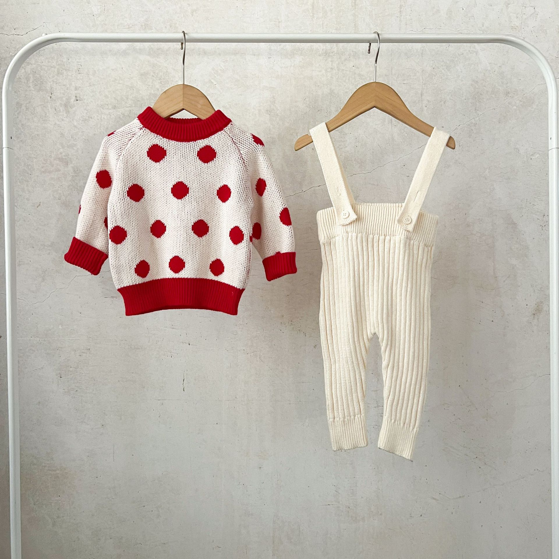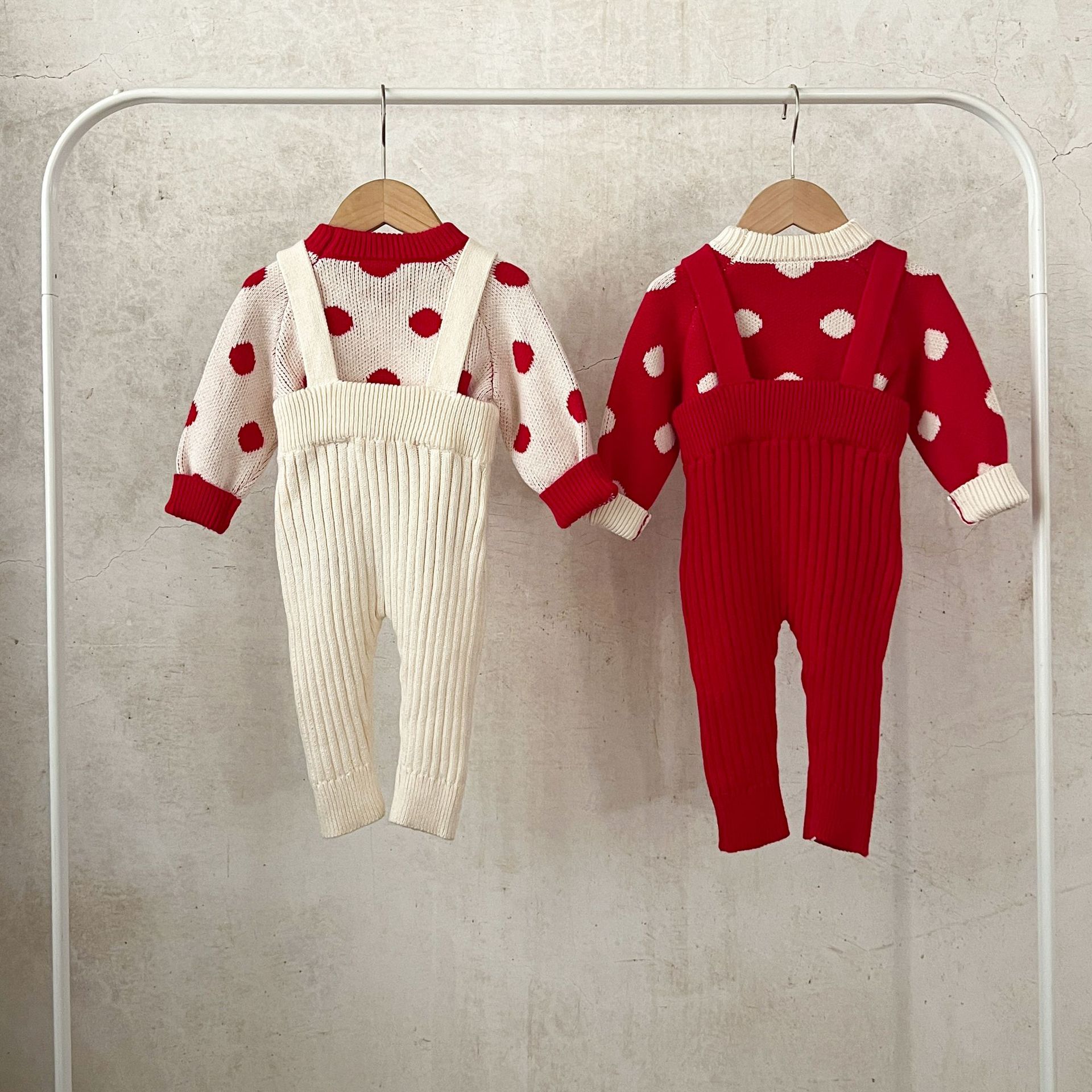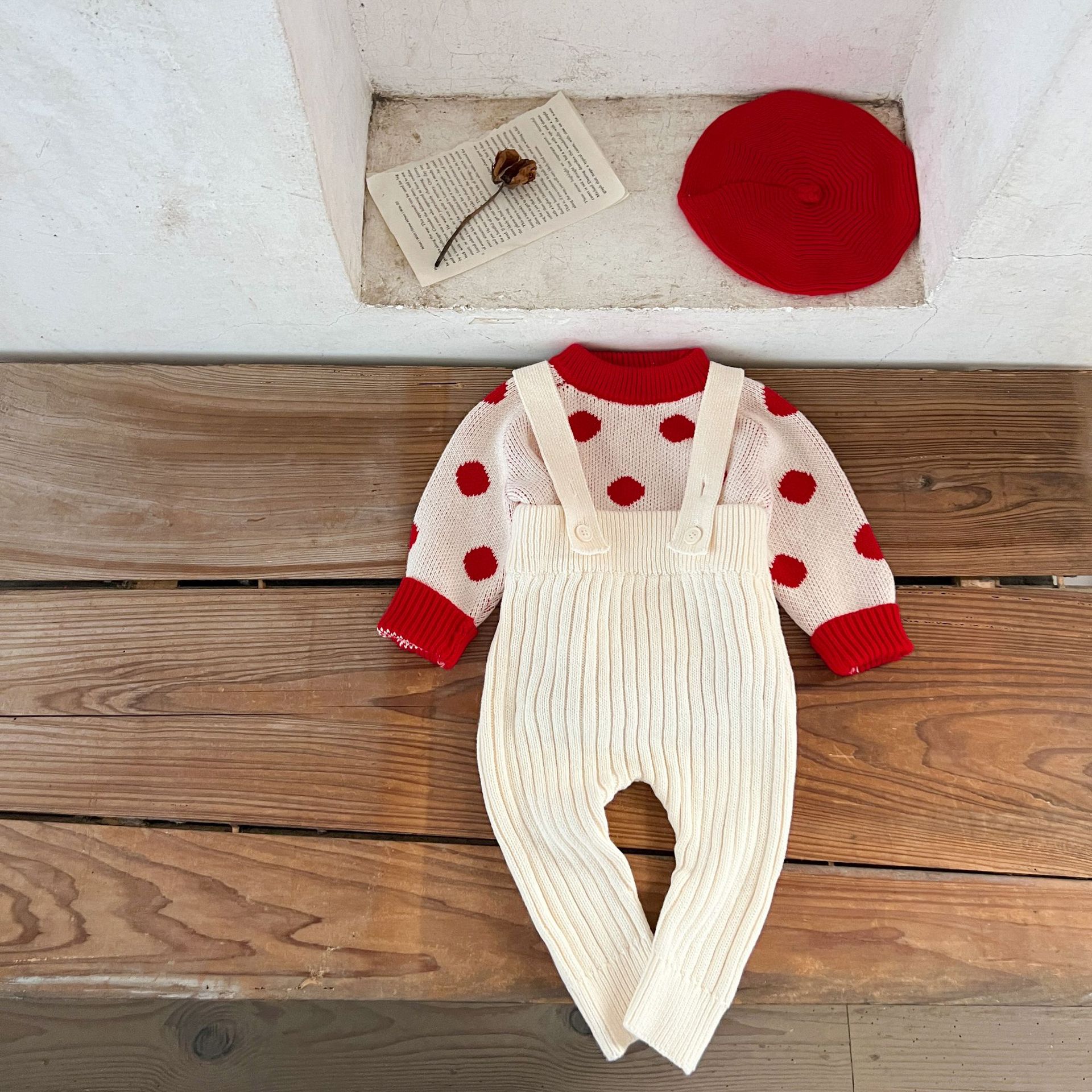 Ins Baby 세트 2024 봄과 가을 아기 점 풀오버 스웨터 서스펜더 바지 서양식 2 피스 세트