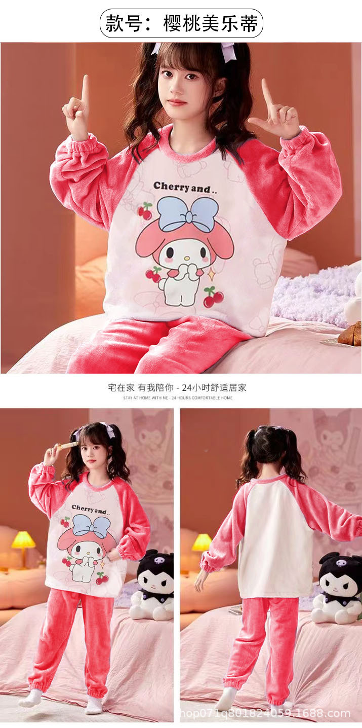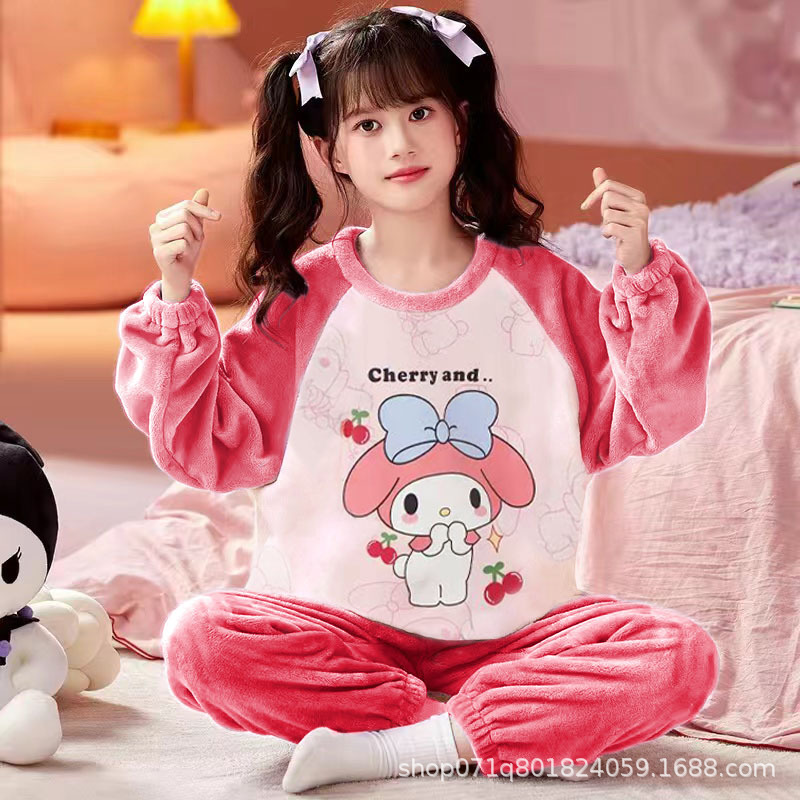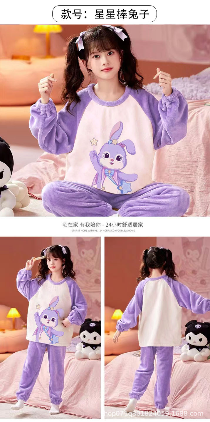가을 겨울 어린이 플란넬 잠옷 세트 만화 중 큰 어린이 소녀 학생 아기 소녀의 플란넬 잠옷스토어 가기