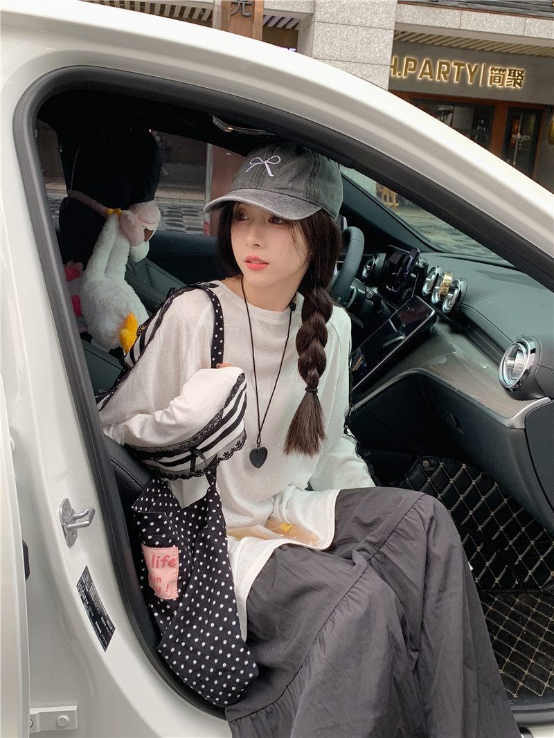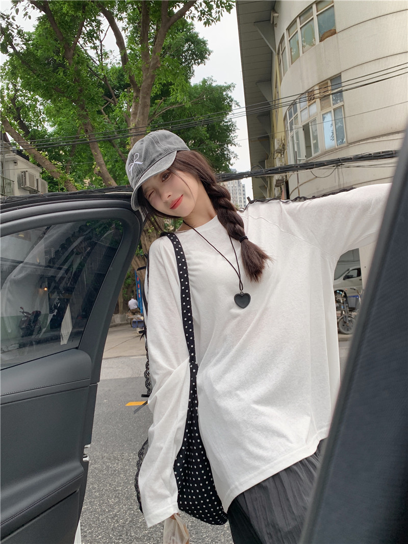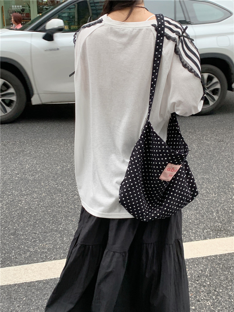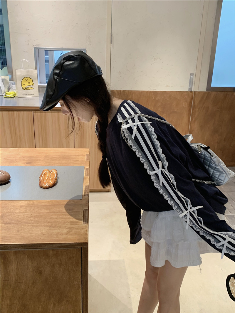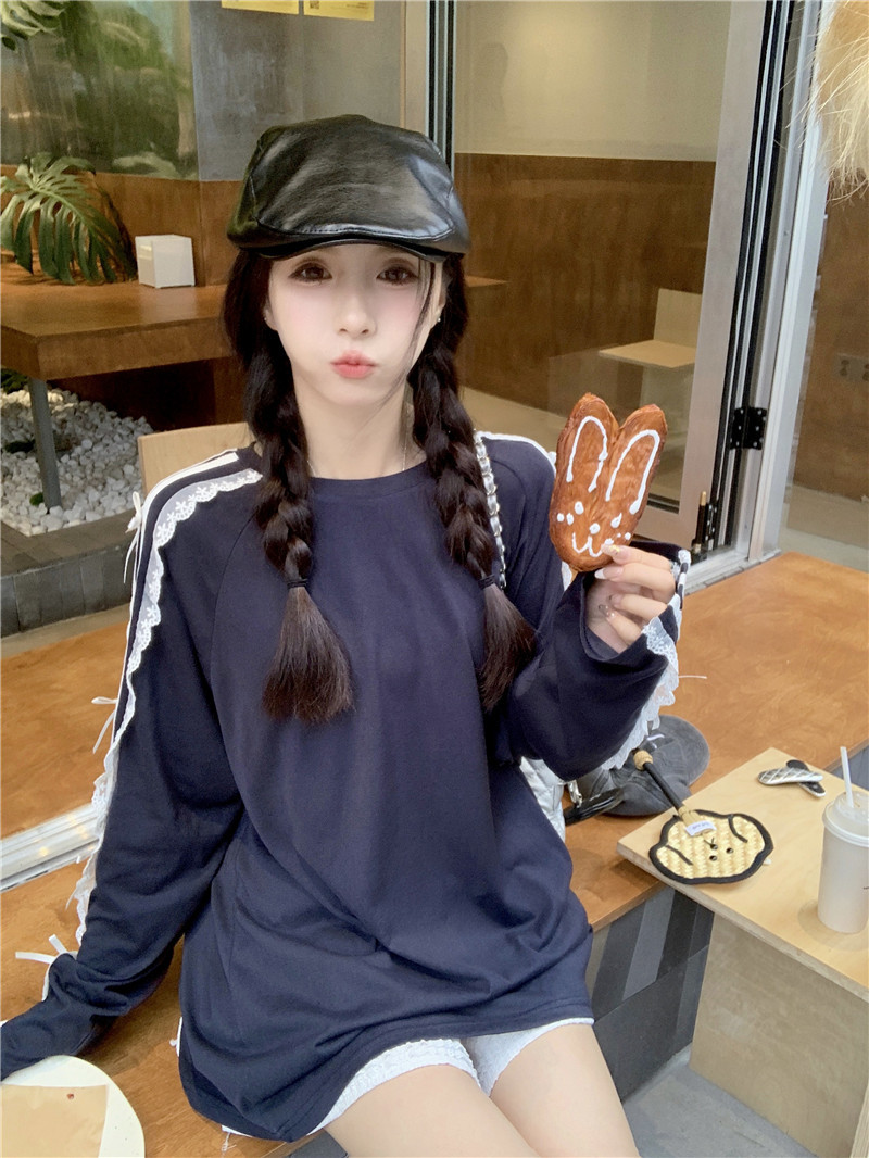 레이스 스트라이프 활 긴팔 티셔츠 여성 여름 한국 스타일 캐주얼 루즈 중간 길이 디자인 센스 탑스토어 가기