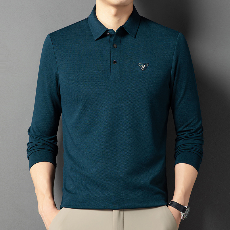 남성 봄과 가을 새로운 한국 스타일 간단한 핫 스탬핑 긴 소매 티셔츠 캐주얼 패션 tracless 레버리지 긴 소매 폴로 셔츠