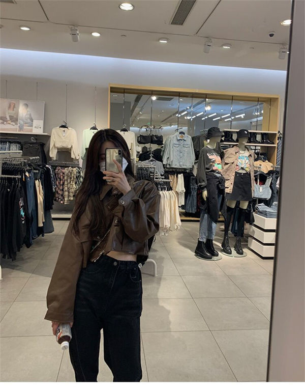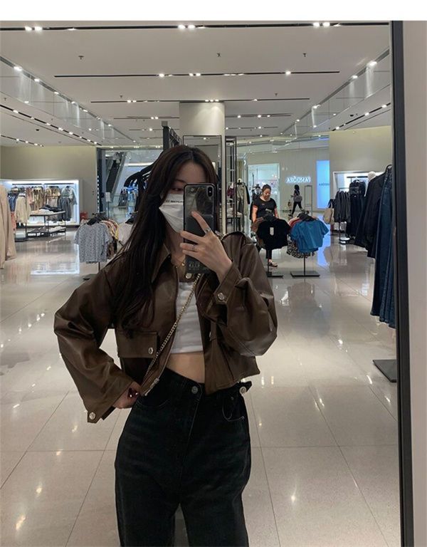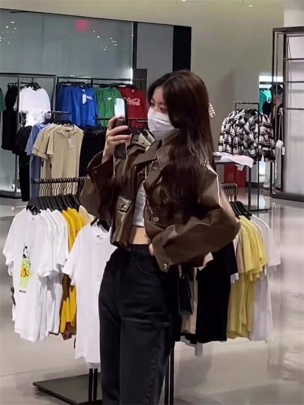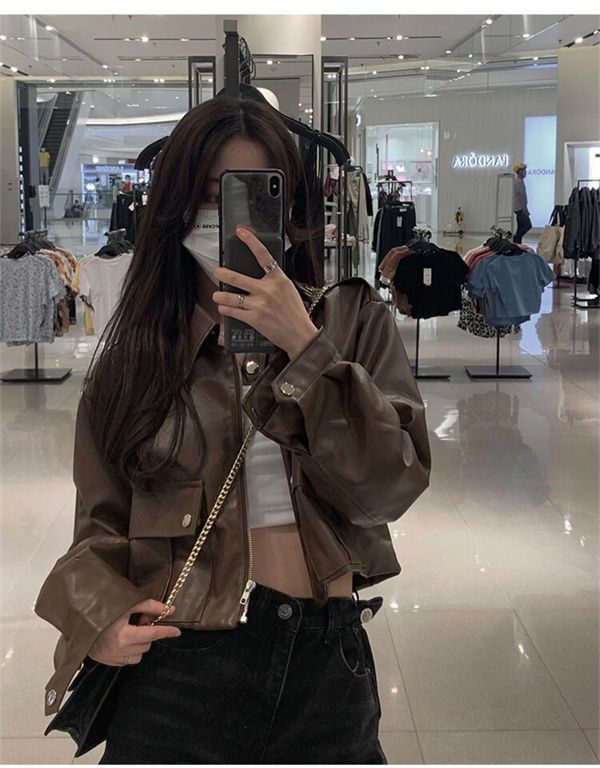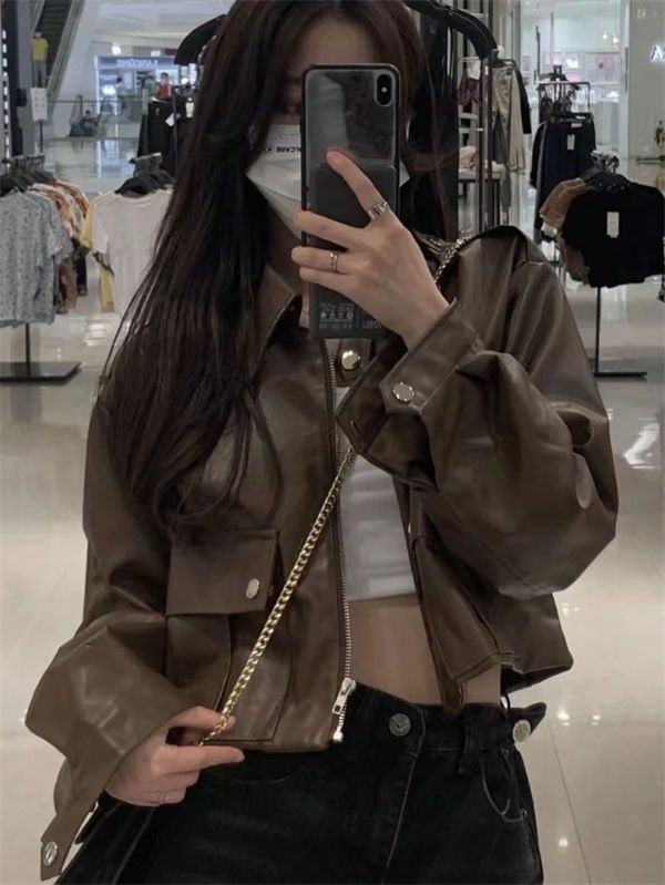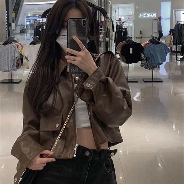 2024 Maillard 작은 가죽 자켓 여성의 봄 가을과 겨울 인기있는 모토 스타일 홍콩 스타일 PU 가죽 자켓 작은스토어 가기