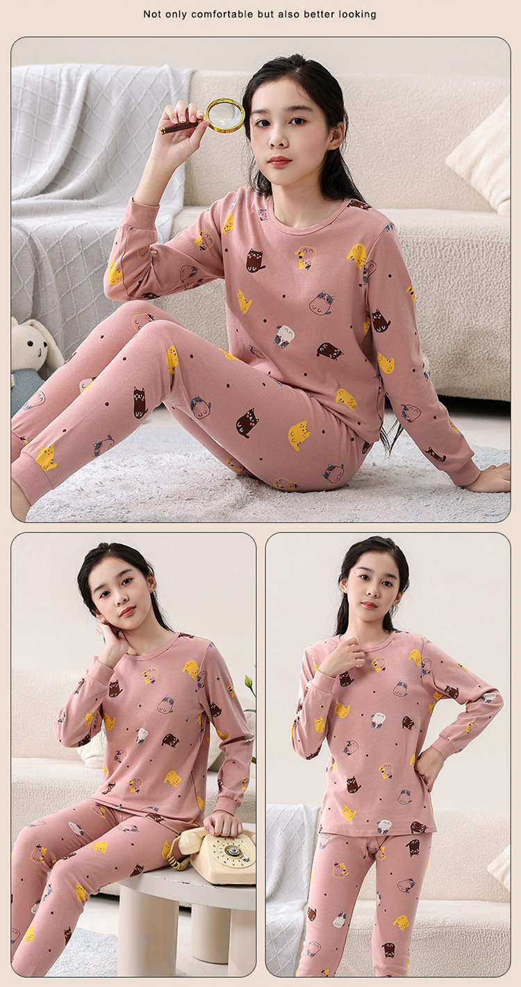 소녀 면 가을 옷과 바지 중 큰 어린이 홈 옷 여학생 세트 클래스 A 청소년을위한 가을 및 겨울 열 속옷