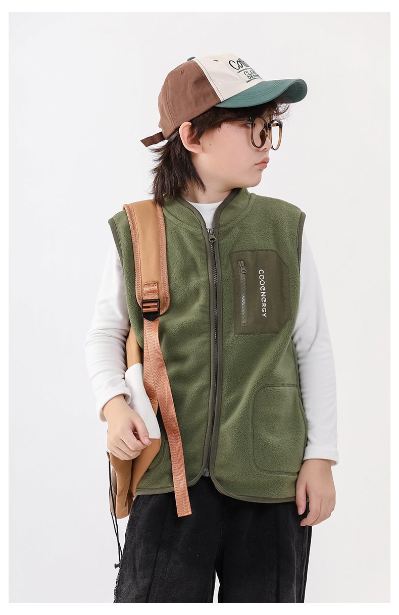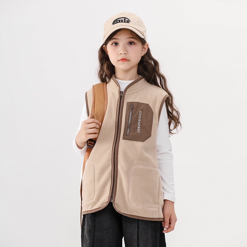 어린이용 보온 조끼, 가을 겨울용 폴라 플리스 남아 조끼, 아동용 안팎 착용 가능한 여아용 지퍼 조끼