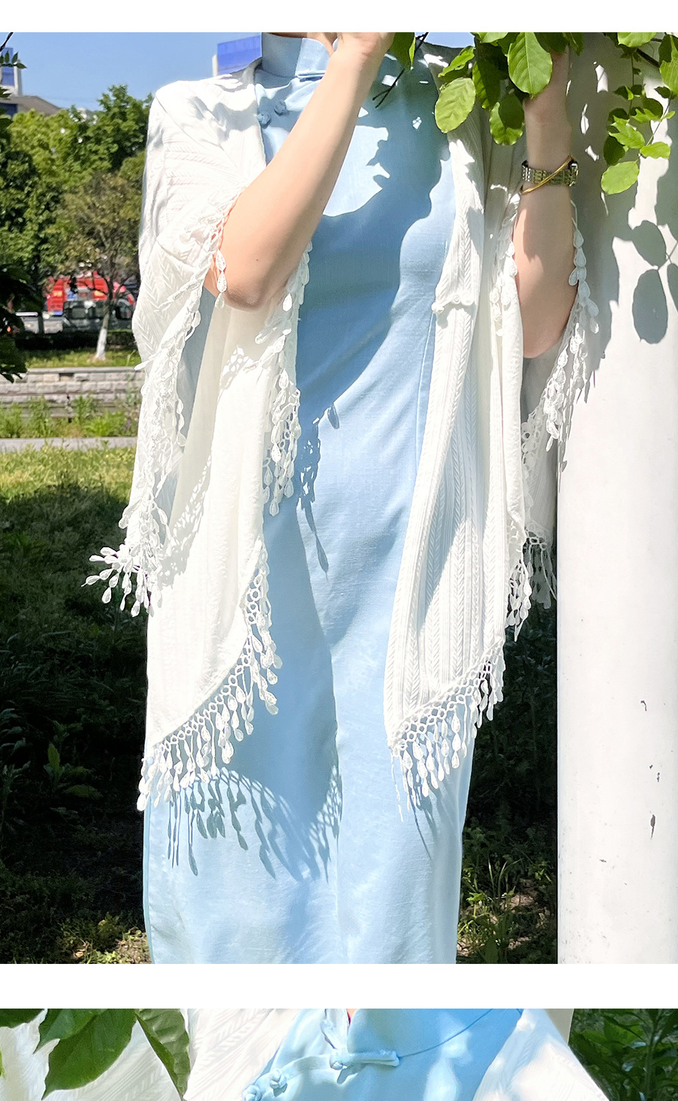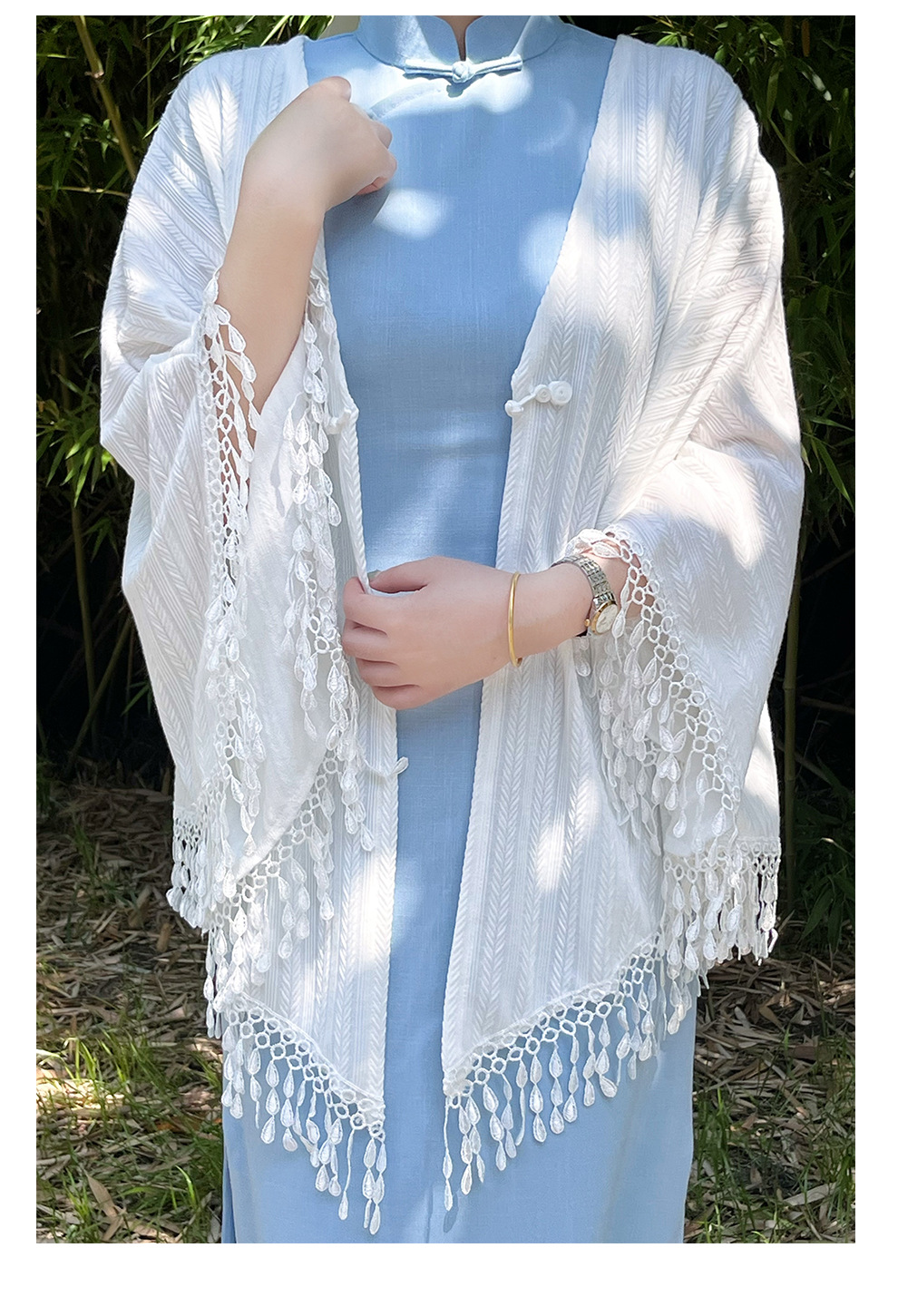 모든 경기 딸 금 바람 봄과 여름 복고풍 스타일의 매일 젊은 도매를 다루는 새로운 육체 외부 Tassel shawl cheongsam스토어 가기