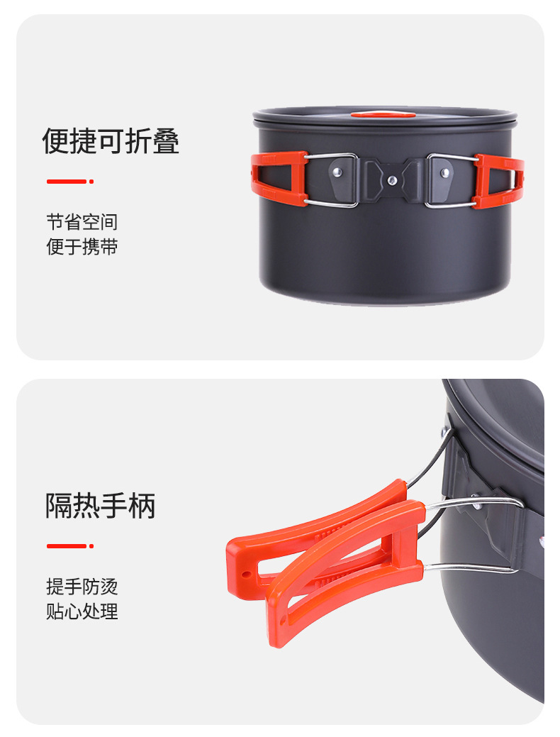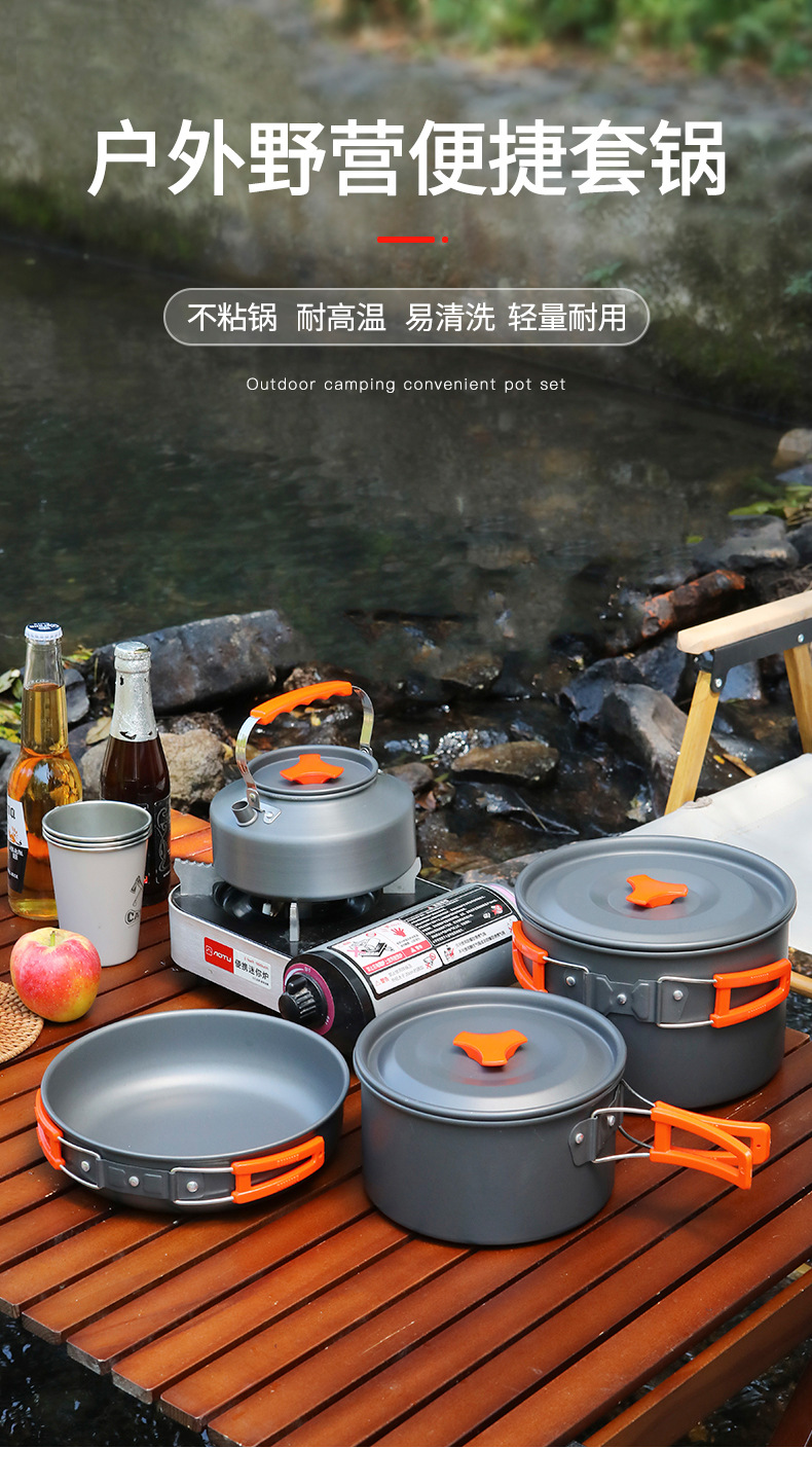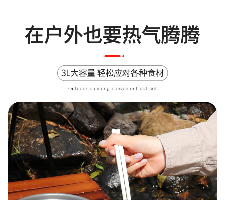 야외 조리기구 캠핑 캠핑 조리기구 작고 큰 단일 냄비 세트 요리 세트 전체 세트 장비 휴대용 3.5L스토어 가기