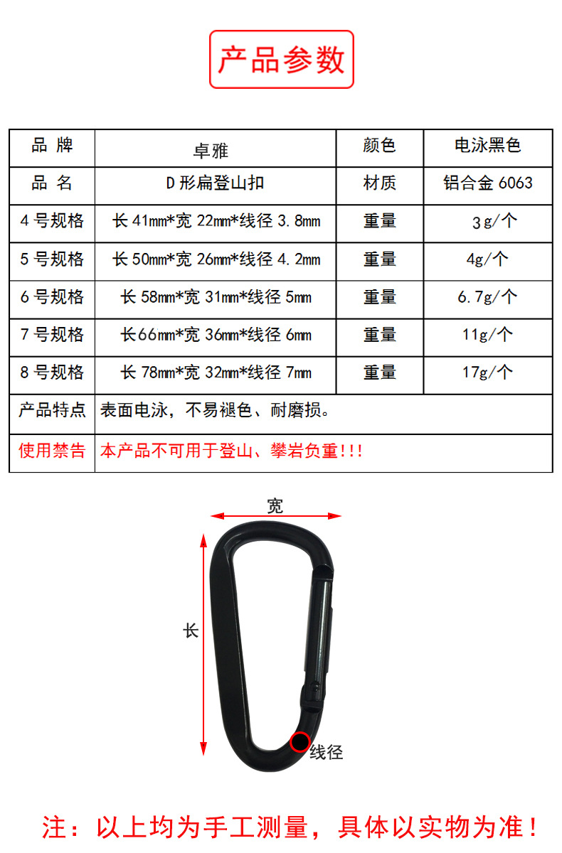 알루미늄 합금 45678 등산 버클 D 자형 플랫 자물쇠 블루투스 헤드셋 버클 야외 주전자 걸이 링스토어 가기