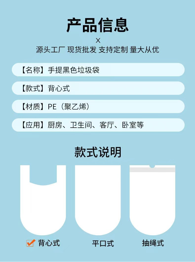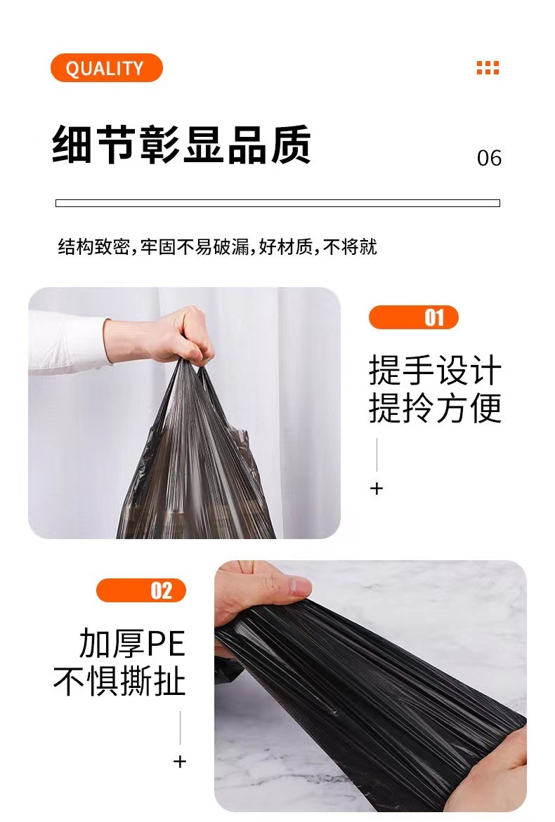 공장 재고 스트레이트 블랙 조끼 휴대용 쓰레기 봉투 일회용 PE 가정용 50 주방 조끼 가방