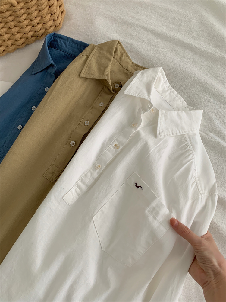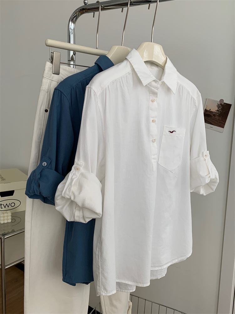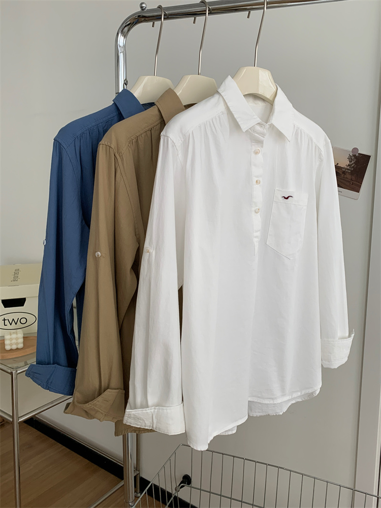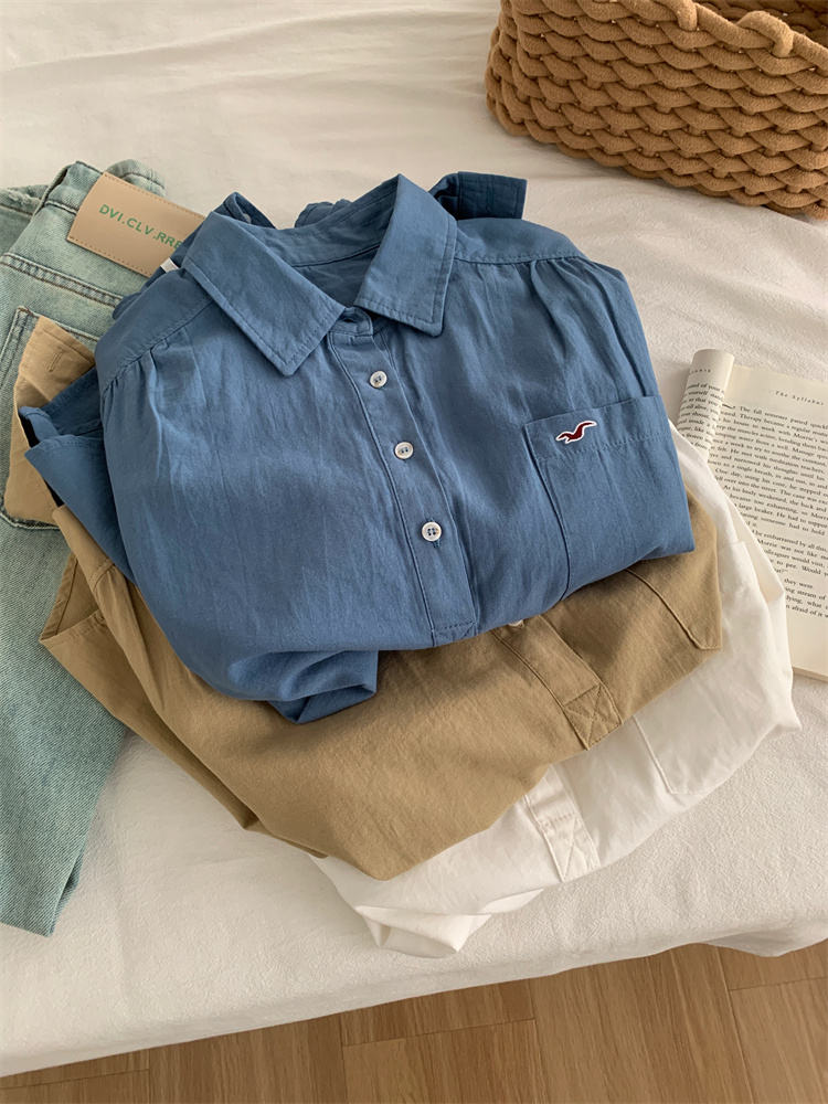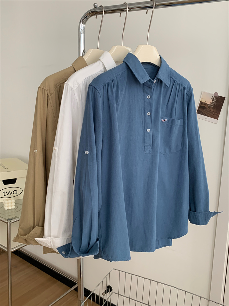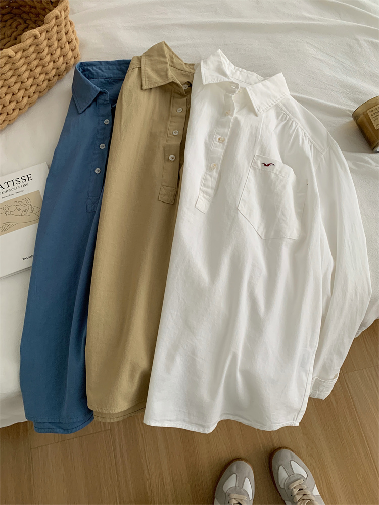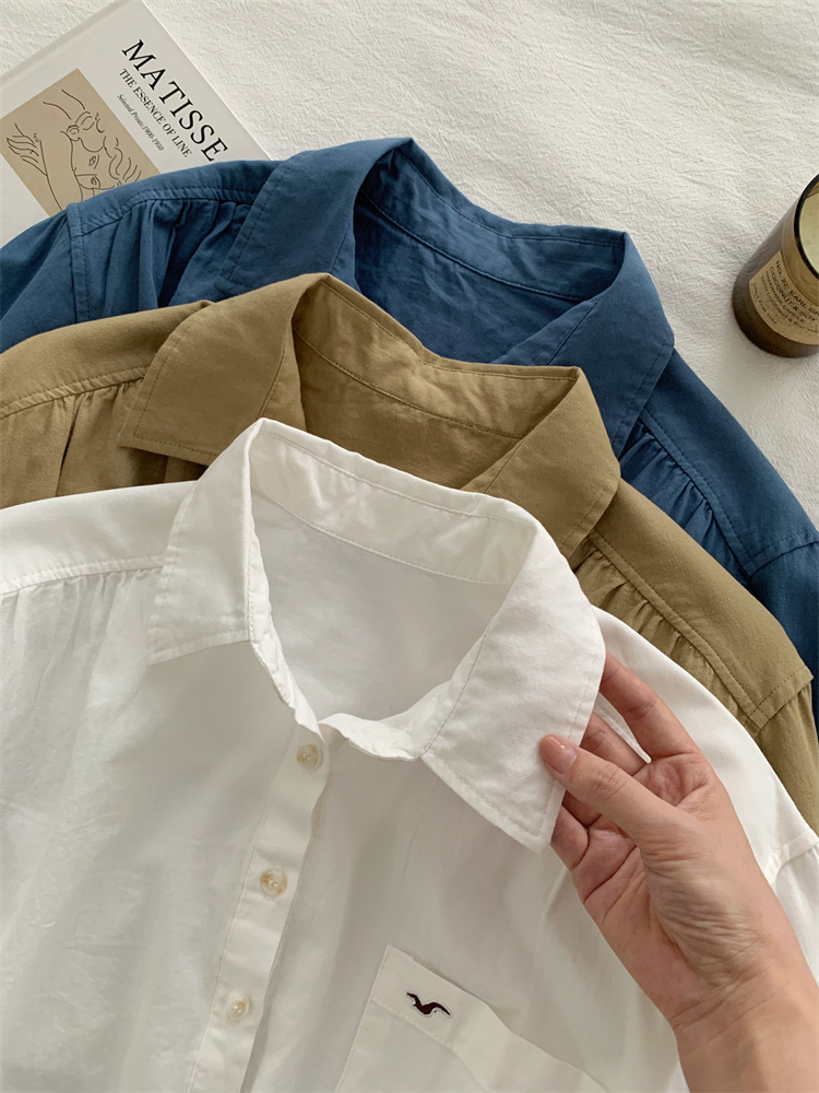 여성용 프렌치 하이엔드 버드 자수 디자인 풀오버 셔츠, 하프 플래킷, 2025 가을 스타일, 워싱 코튼 풀오버 셔츠스토어 가기