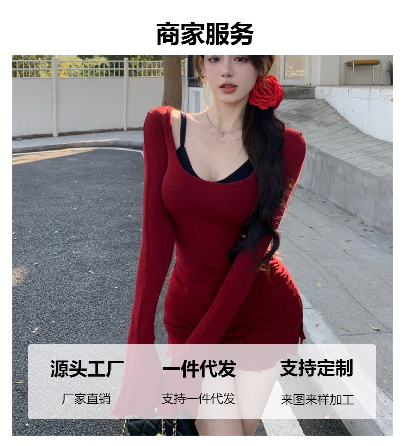 순수한 욕망 스파이스 소녀 트럼펫 소매 가슴-섹시한 원피스 투피스 세트 여성의 가을과 겨울 타이트 허리 슬리밍 스커트스토어 가기