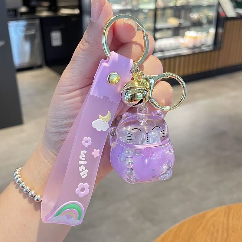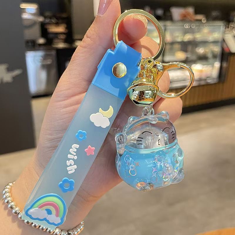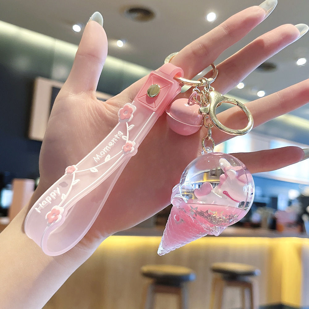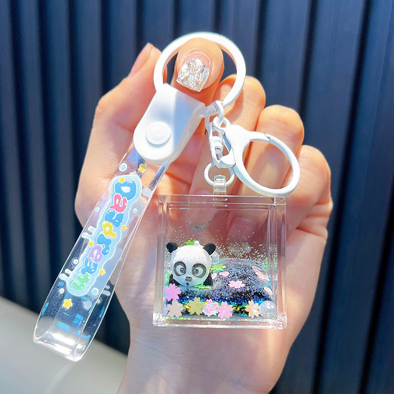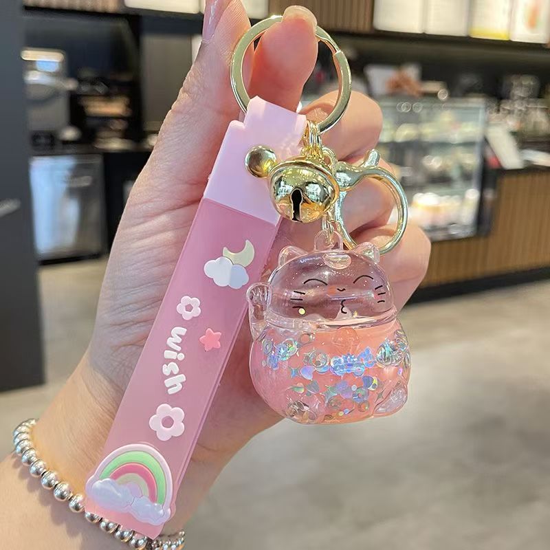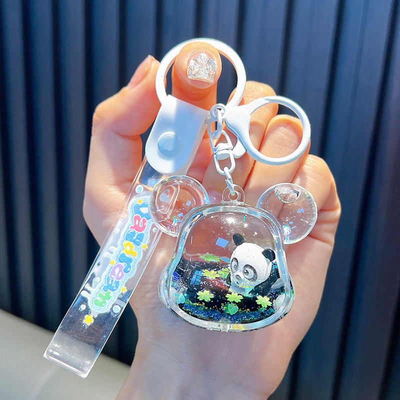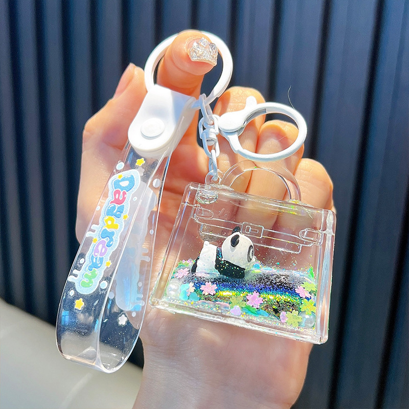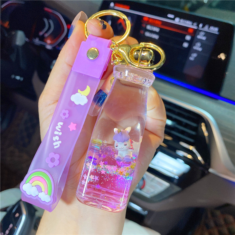 오일로 채워진 버블 티 키 체인 떠 다니는 작은 우유 곰 액체 퀵 샌드 병 펜던트 커플 선물 가방 여성용 장식품
