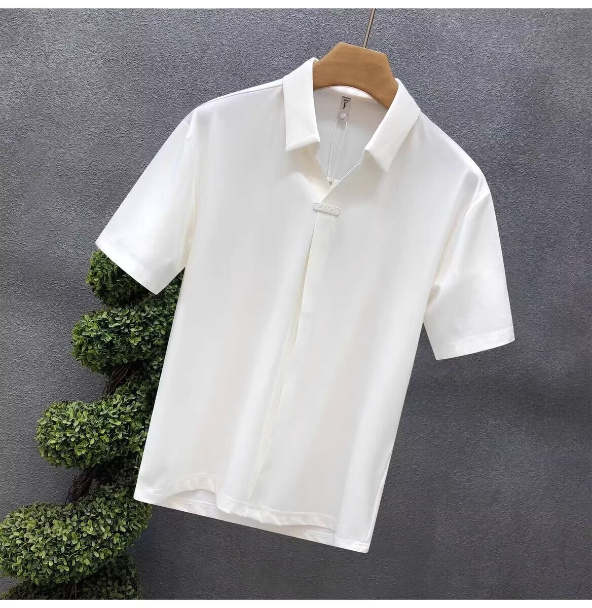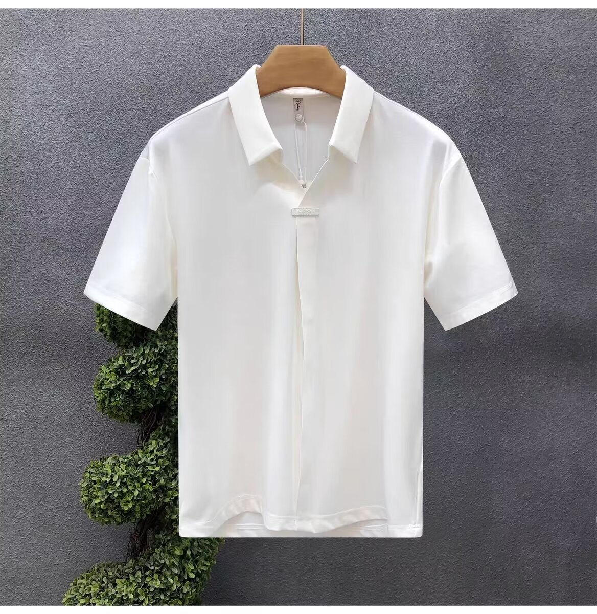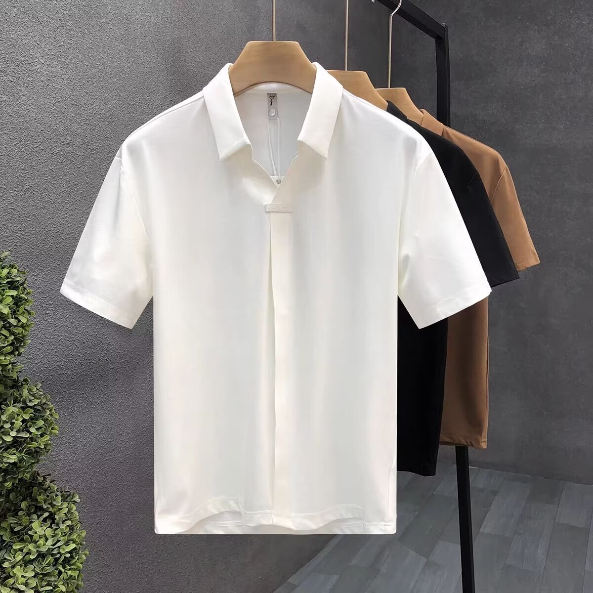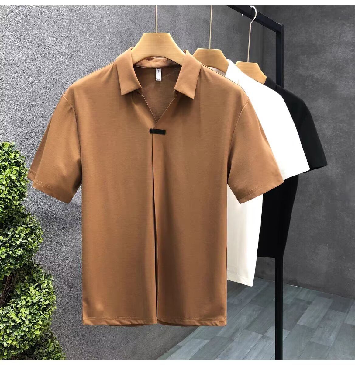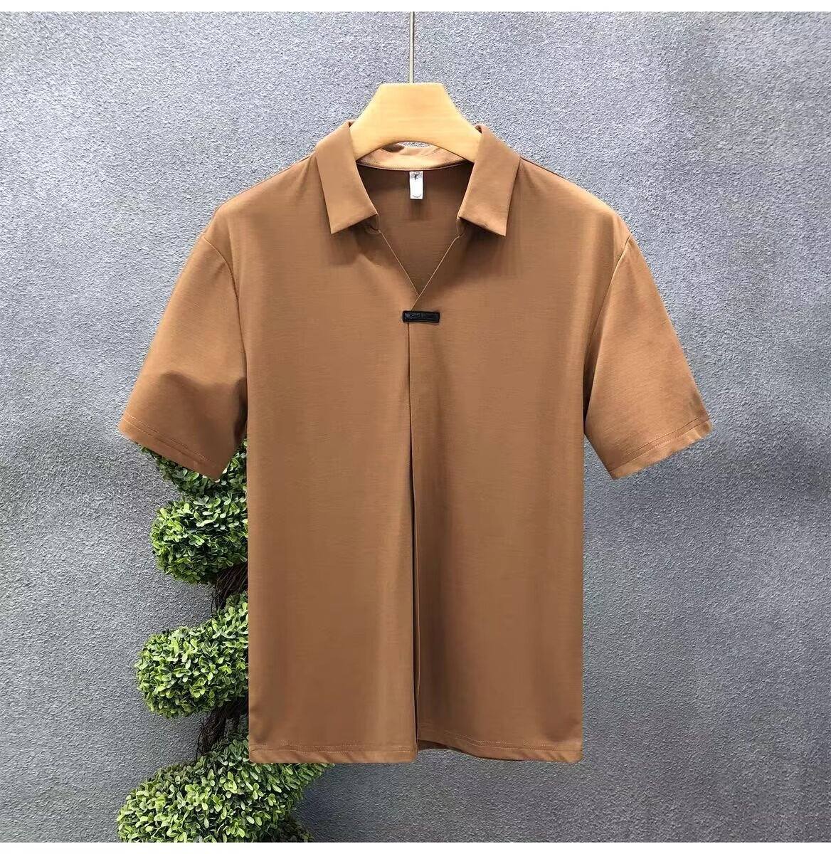 유럽의 새로운 남성 유행 반팔 폴로 셔츠 유행 브랜드 슬림 핏 V 넥 쿨 느낌 아이스 실크 티셔츠 여름 반소매 탑