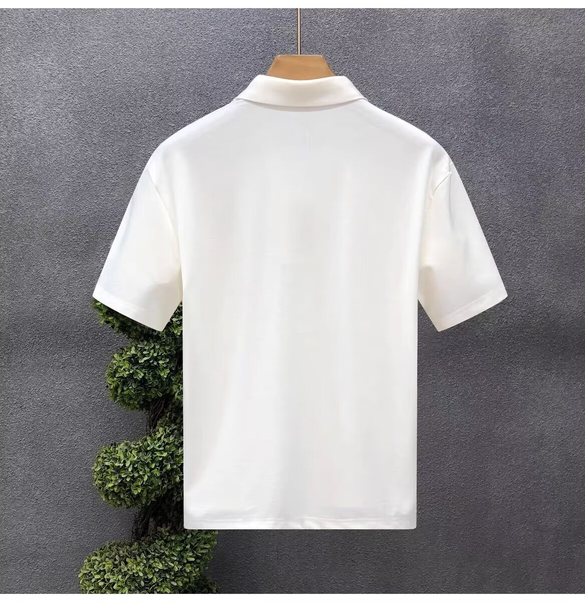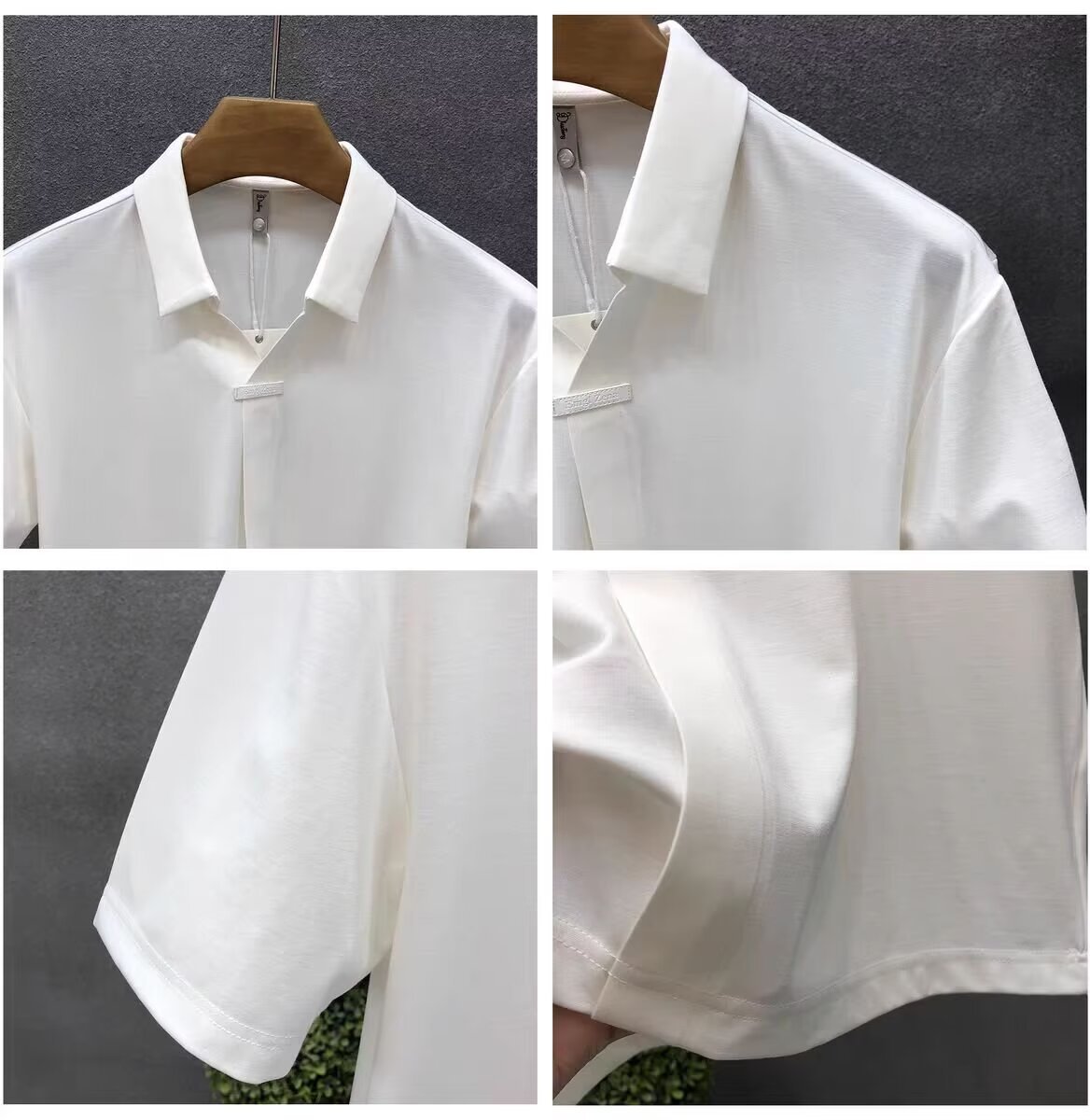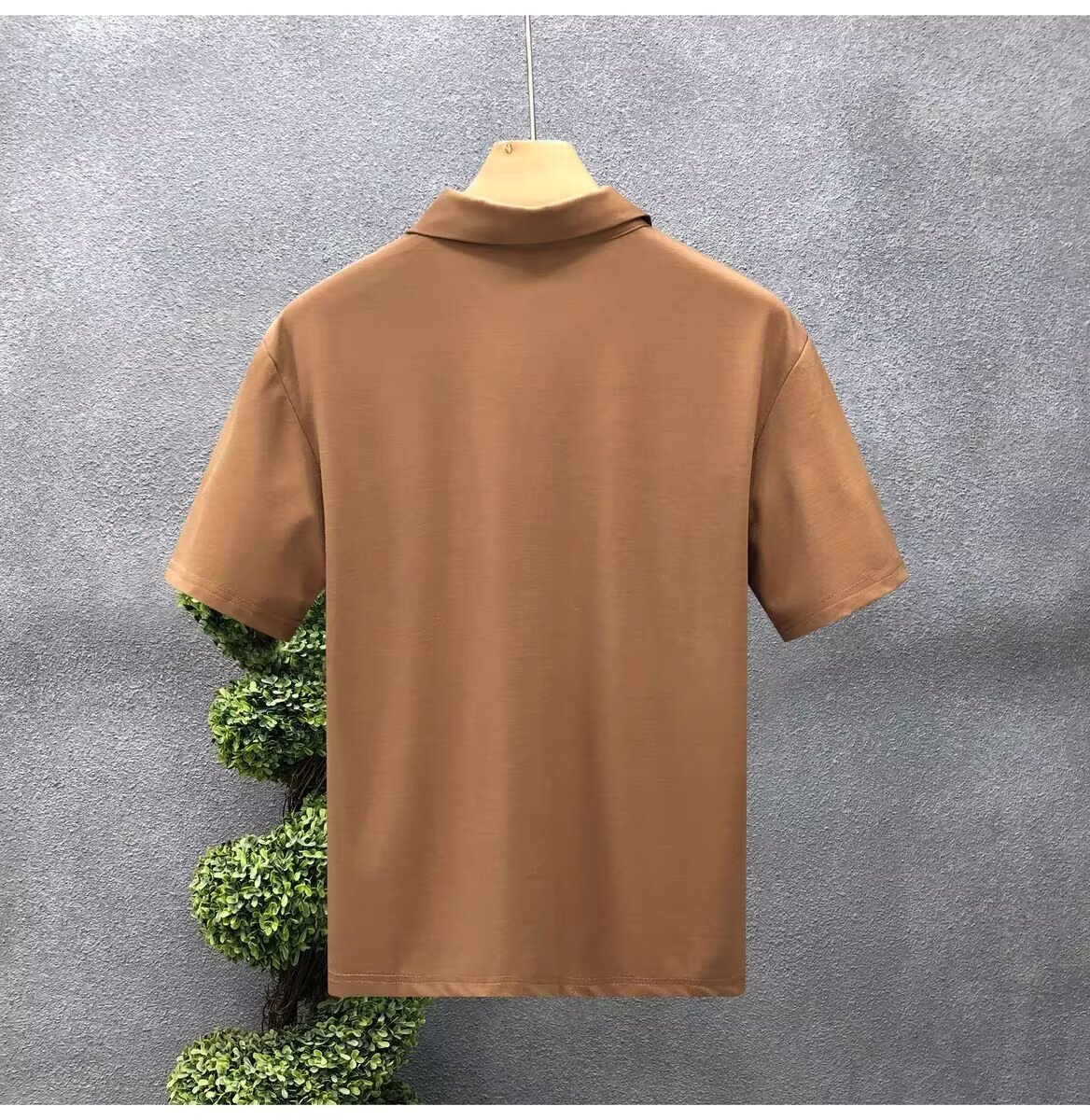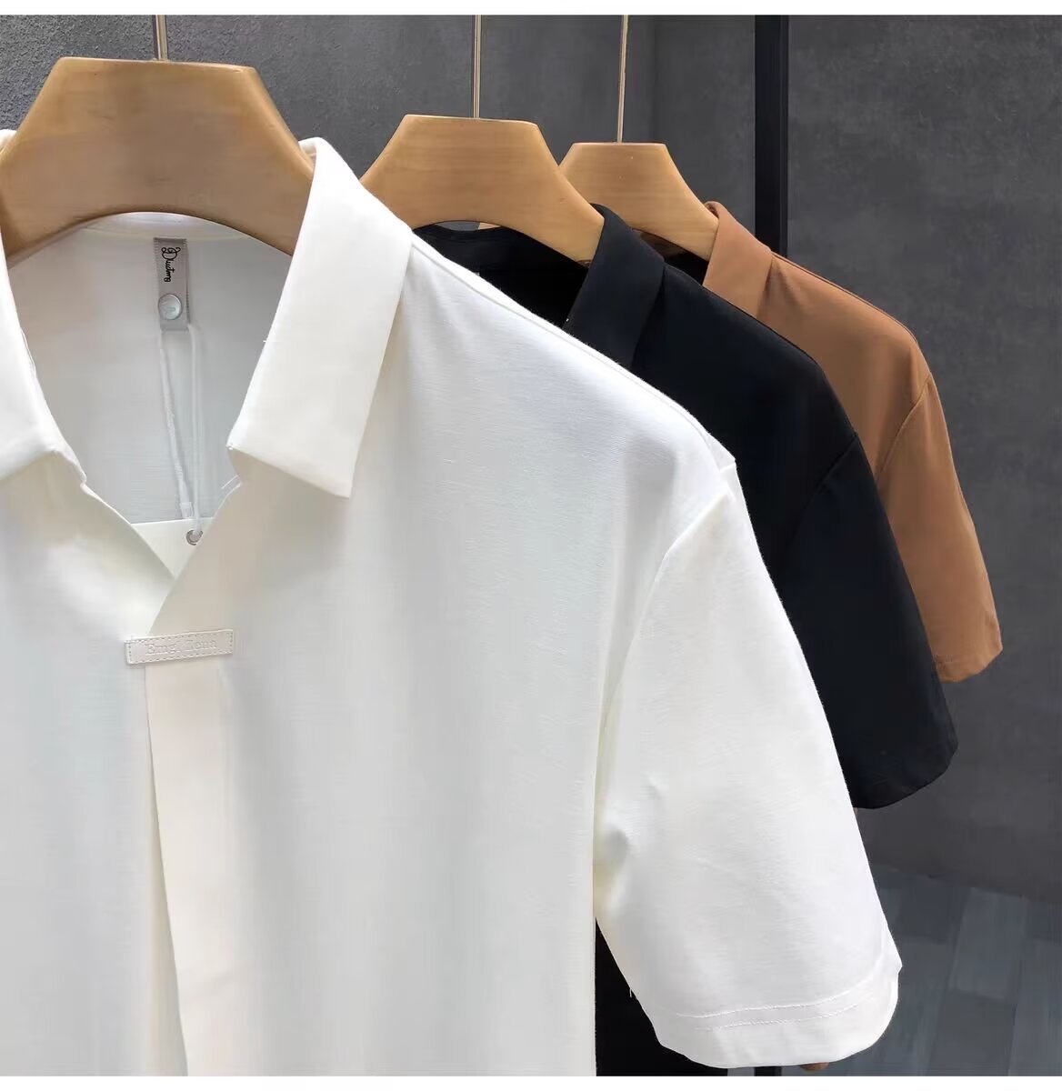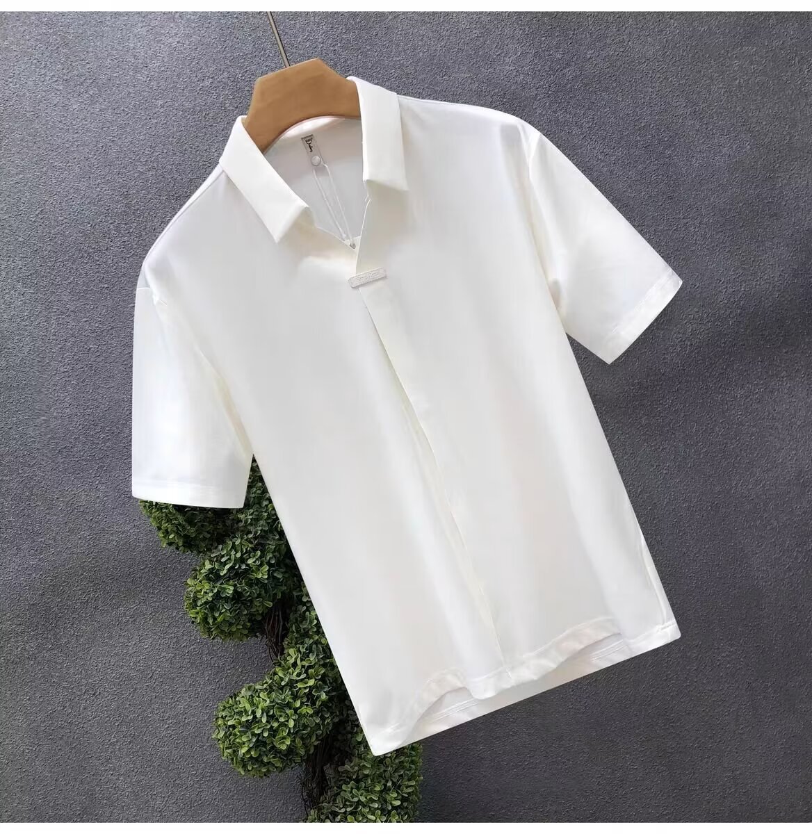 유럽의 새로운 남성 유행 반팔 폴로 셔츠 유행 브랜드 슬림 핏 V 넥 쿨 느낌 아이스 실크 티셔츠 여름 반소매 탑