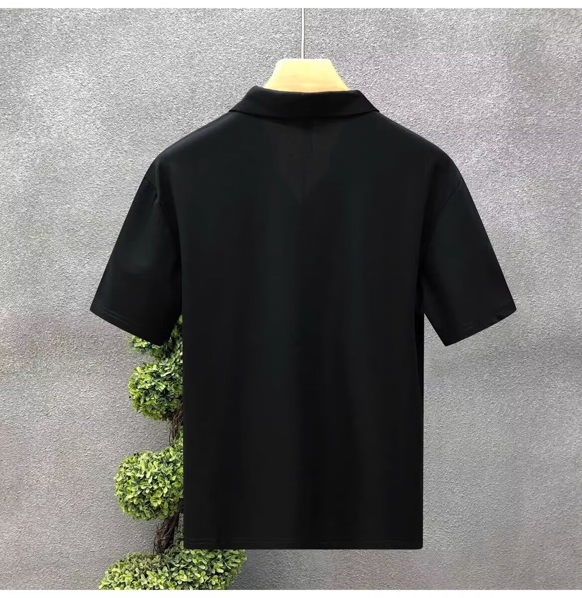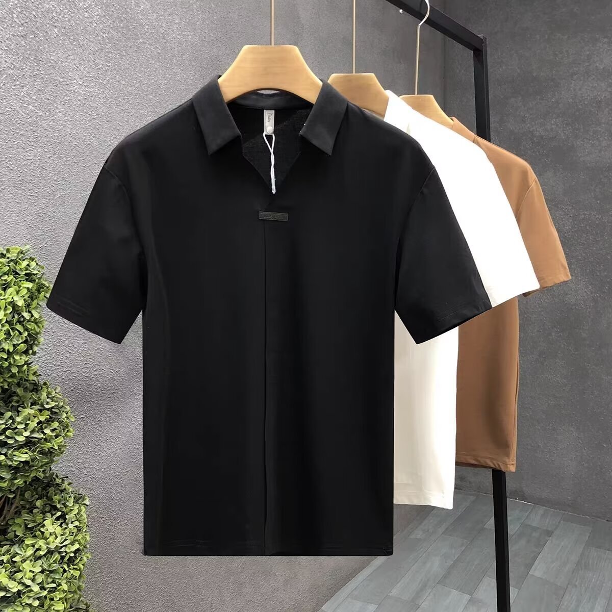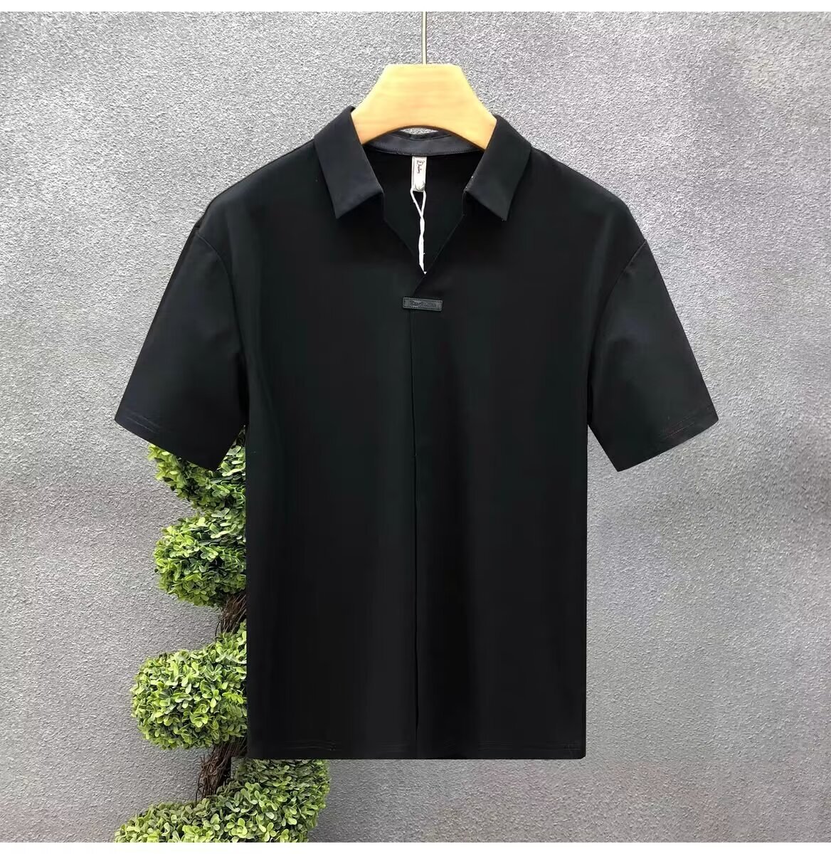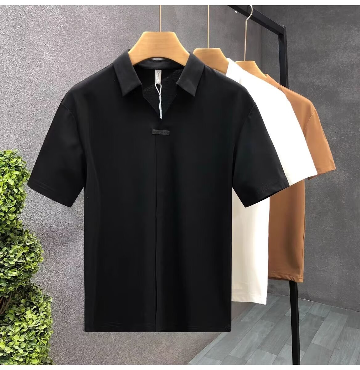 유럽의 새로운 남성 유행 반팔 폴로 셔츠 유행 브랜드 슬림 핏 V 넥 쿨 느낌 아이스 실크 티셔츠 여름 반소매 탑스토어 가기